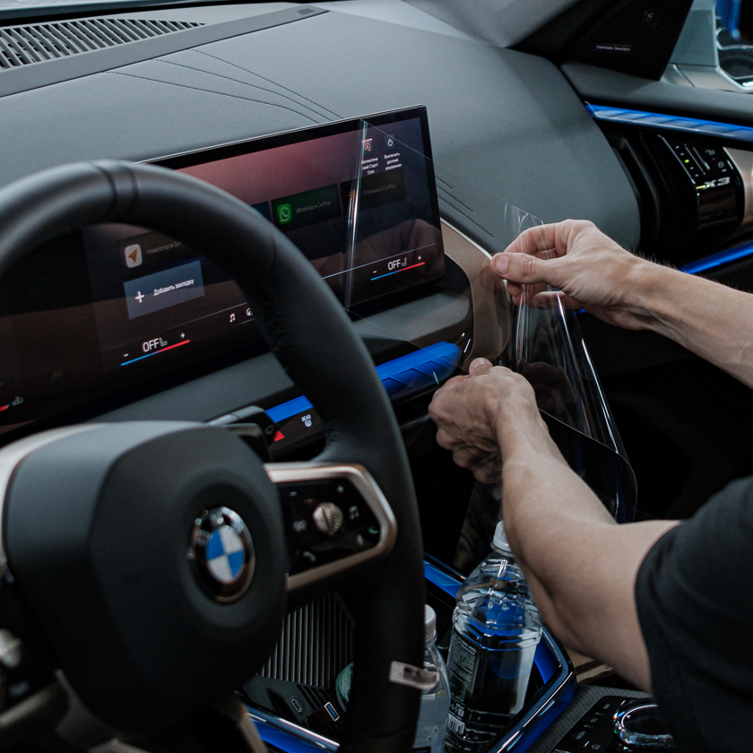 Нанесение защитного стекла на дисплей BMW X3 G45/G48 в нашем автотехцентре имеет ряд преимуществ: