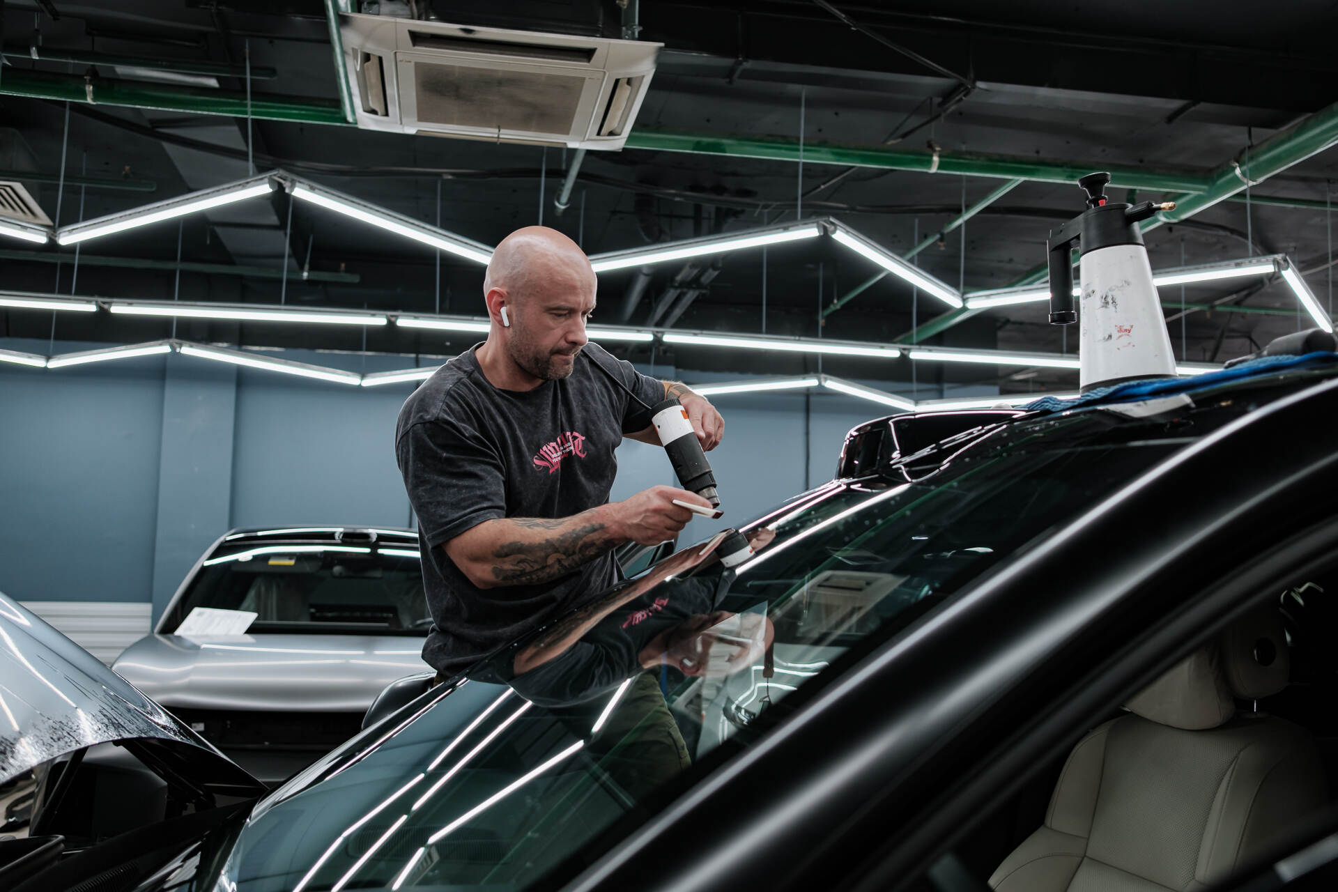 Одной из самых популярных услуг в нашей автостудии является бронирование лобового стекла специальной защитной плёнкой. Собственно, Владелец китайского внедорожника Lixiang L6 попросил нас защитить лобовое стекло от абразивного износа, сколов и царапин, возникающих от воздействия пескоструя, щебня и других механических факторов. В данном проекте мы использовали плёнку Never Scratch — оптимальное решение для долговременного сохранения целостности стеклянных поверхностей. Эта южнокорейская пленка премиум-класса демонстрирует исключительные защитные характеристики, что подтверждает ее статус одного из лучших продуктов в своей категории.