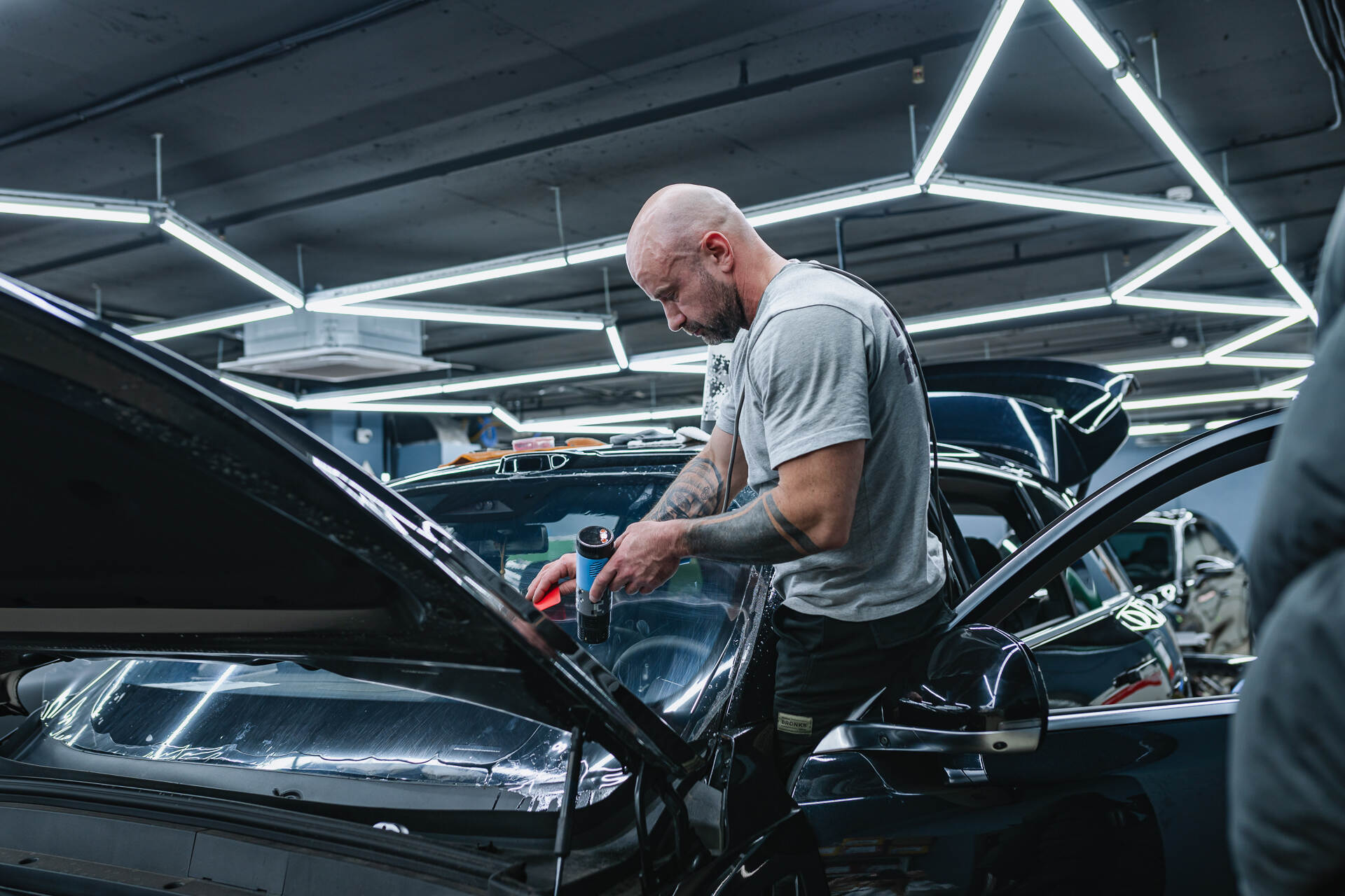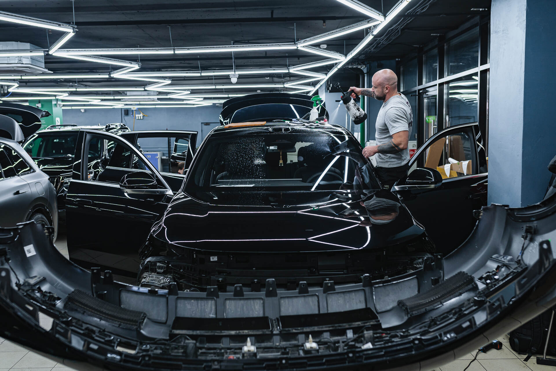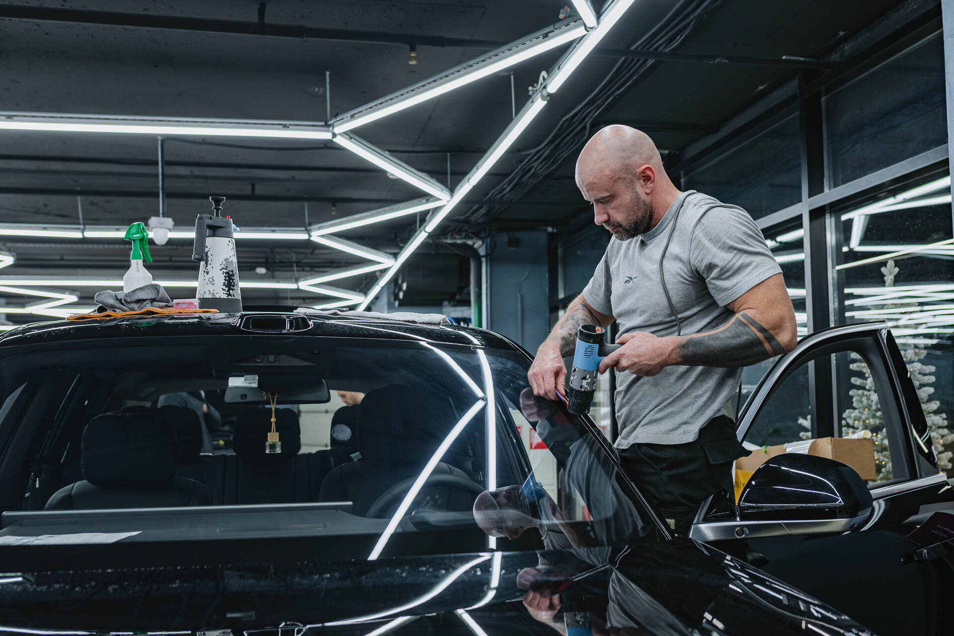 Моем лобовое стекло перед бронированием.