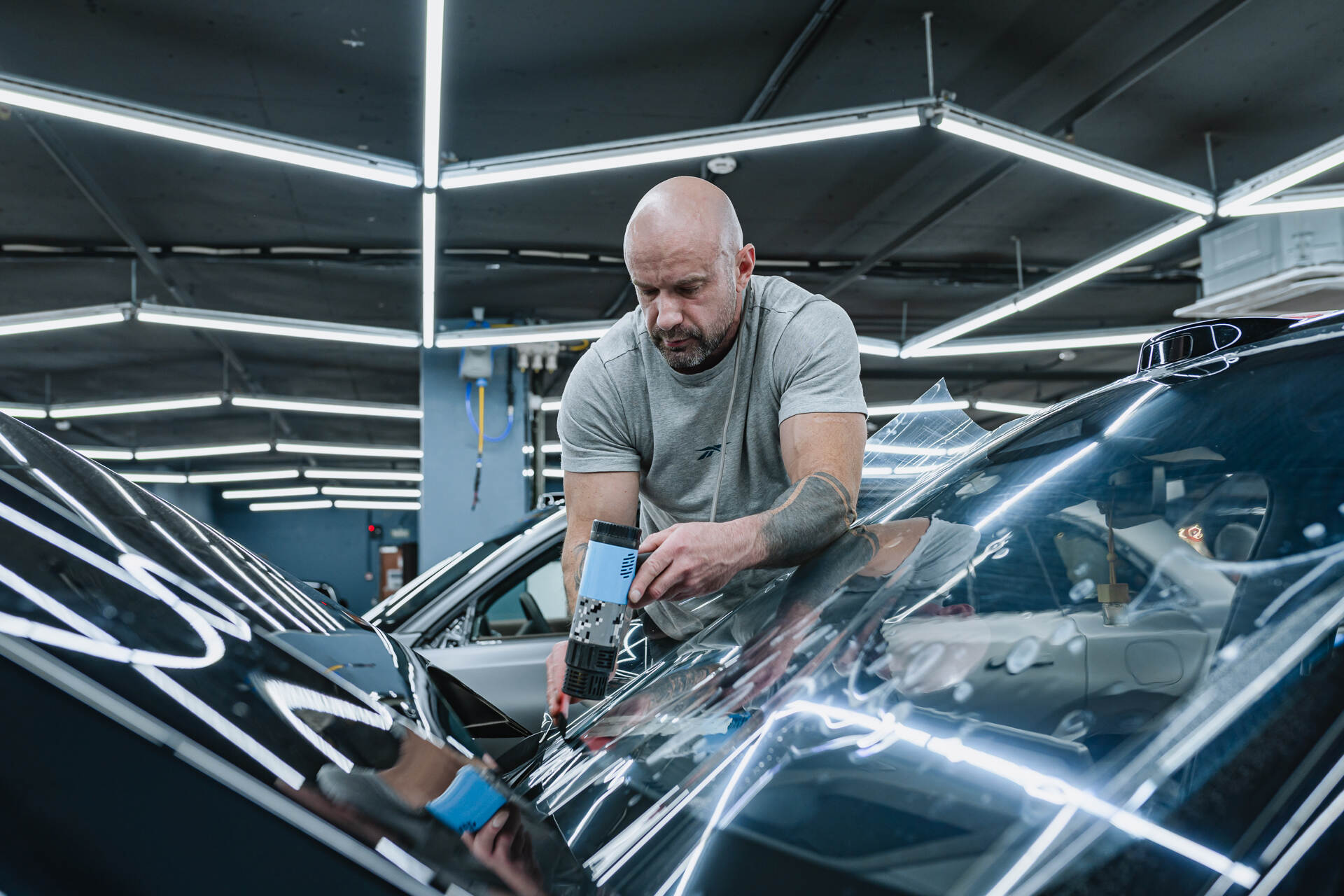 Процесс защиты лобового стекла Lixiang L7 2025 Рестайлинг начинается с тщательного очищения и обезжиривания внешней поверхности. Подготовленный фрагмент пленки Spectroll Windshield обрабатывают мыльным раствором для придания материалу необходимой эластичности. Затем покрытие аккуратно распределяют по стеклу, используя ракель для удаления влаги и разглаживания неровностей. Благодаря абсолютной прозрачности и отсутствию цвета, броня остается невидимой и никак не ограничивает обзор водителю. Завершив нанесение плёнки, мастера корректируют края покрытия лезвием, а финальным штрихом становится прогрев стекла промышленным феном для идеальной фиксации материала. После этого обновленный Lixiang L7 2025 Рестайлинг готов к выдаче владельцу. Защитный слой Spectroll Windshield остается абсолютно невидимым невооруженным глазом, при этом он надежно оберегает триплекс от агрессивного воздействия пескоструя и надолго сохраняет его заводской вид.