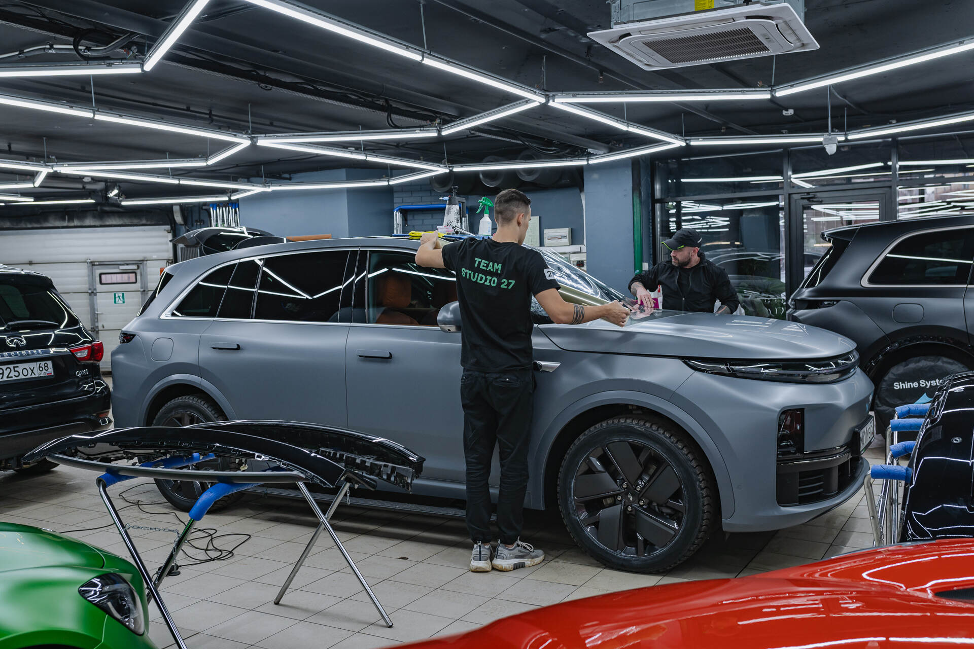 После монтажа пленки лобовое стекло Lixiang L7 Рестайлинг 2025 прогревается промышленным феном для окончательной фиксации и активации защитных свойств. Материал Spectroll Windshield отличается безупречной прозрачностью, поэтому плёнка совершенно не искажает видимость и не меняет цветопередачу в течение всего срока службы. Уникальной особенностью данного полиуретана является способность к самовосстановлению: благодаря эластичной структуре состава, большинство мелких царапин и микротрещин затягиваются самостоятельно. В итоге владелец получает надежную невидимую броню на лобовом стекле, которая сохраняет целостность поверхности и обеспечивает комфортный обзор в любых дорожных условиях и при любой погоде.