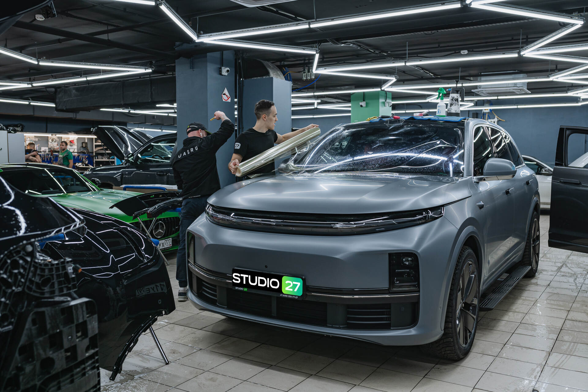 Услуга бронирования лобового стекла пользуется высоким спросом в нашей автостудии, так как владельцы премиальных моделей авто ценят безупречный вид и стремятся избежать лишних трат на замену дорогостоящих элементов транспортного средства. В данном случае мы защитили лобовое стекло автомобиля Lixiang L7 Рестайлинг 2025 специализированной плёнкой Spectroll Windshield, созданной именно для стеклянных поверхностей. Материал надежно оберегает лобовое стекло от пескоструя и сколов от щебня, при этом важно использовать только профильные пленки, так как обычные кузовные варианты для этой цели не подходят. При активной езде защитное покрытие эффективно работает около года, а при бережной эксплуатации — до двух лет, после чего защиту рекомендуется обновить.