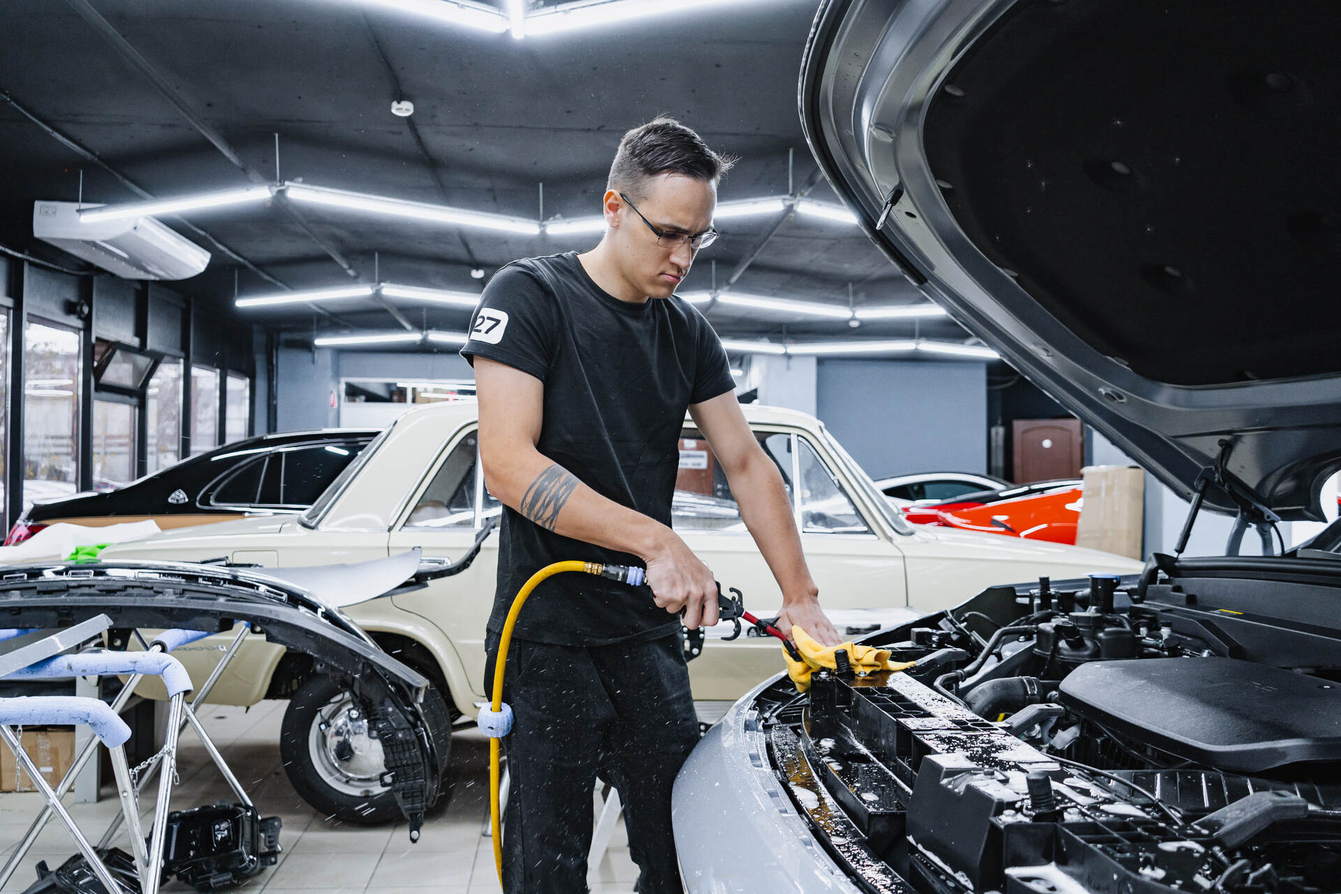 Моем и чистим автомобиль и отдельные демонтированные части кузова.