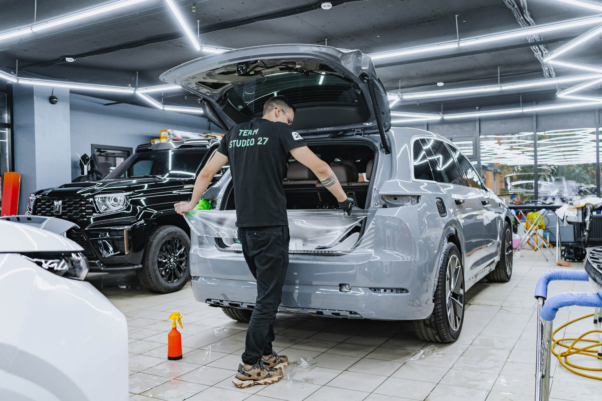 Для бронирования кузова автомобиля Lixiang L7 Рестайлинг 2025 полиуретановой плёнкой требуется приблизительно три полных дня – это значительное время необходимо не только на непосредственное нанесение плёнки, но и на тщательную подготовку поверхностей: их необходимо полностью очистить, обезжирить и, в некоторых местах, даже отполировать до идеального блеска. Кроме того, мы выполним частичную разборку автомобиля, поскольку для обеспечения большей надежности и долговечности мы будем аккуратно загибать края плёнки вовнутрь.