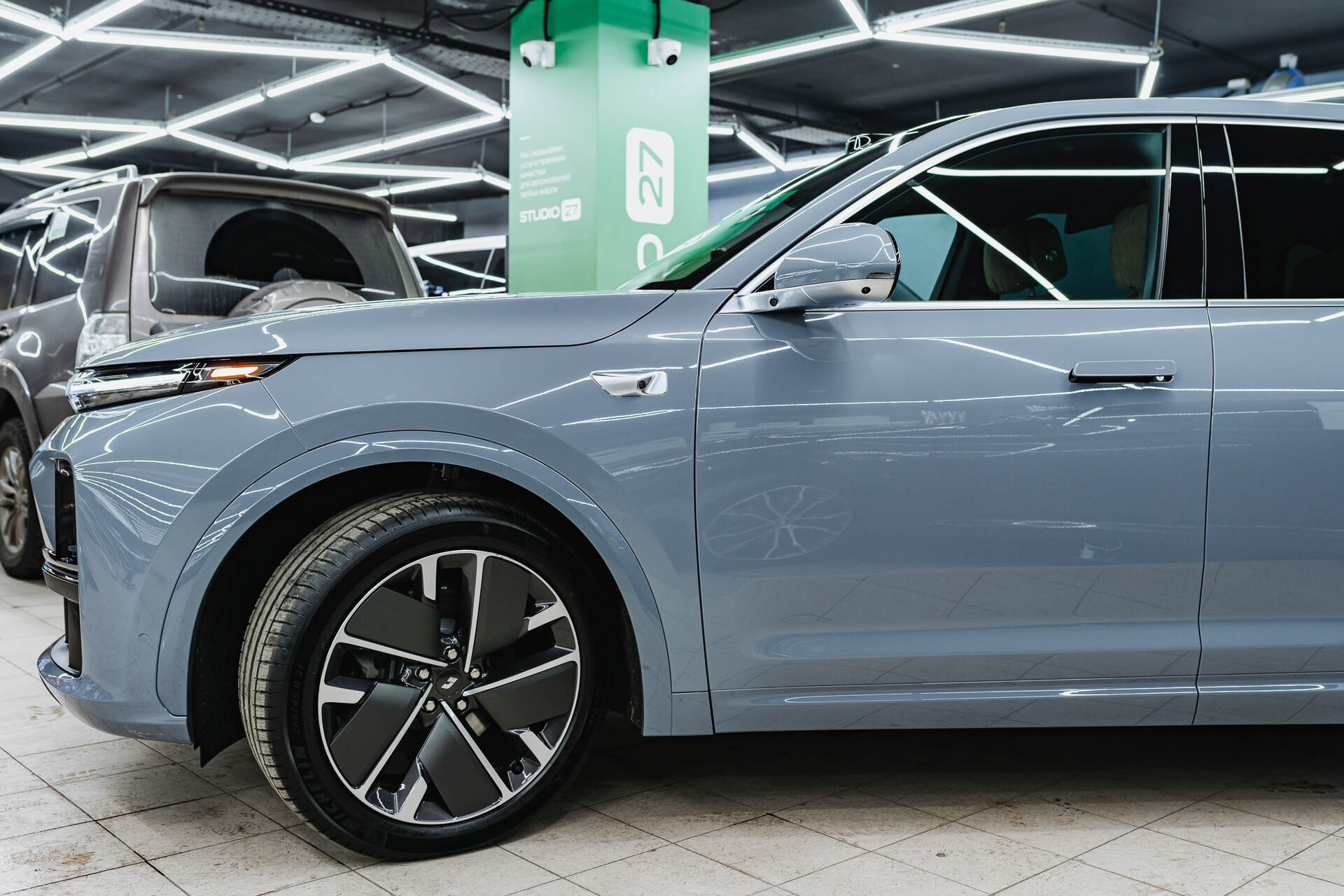 В нашу автостудию приехал владелец новейшего и премиального внедорожника Lixiang L7 Рестайлинг 2025, окрашенного в красивый сине-серый цвет. Клиент выразил желание полностью затянуть автомобиль защитной плёнкой, чтобы предотвратить появление царапин и потёртостей, возникающих от ударов камней и пескоструя, вылетающих из-под колес других участников дорожного потока. Со временем на поверхности кузова неизбежно могут появиться царапины, что ухудшает внешний вид машины, а это совершенно недопустимо, особенно когда речь идет о столь дорогом автомобиле.