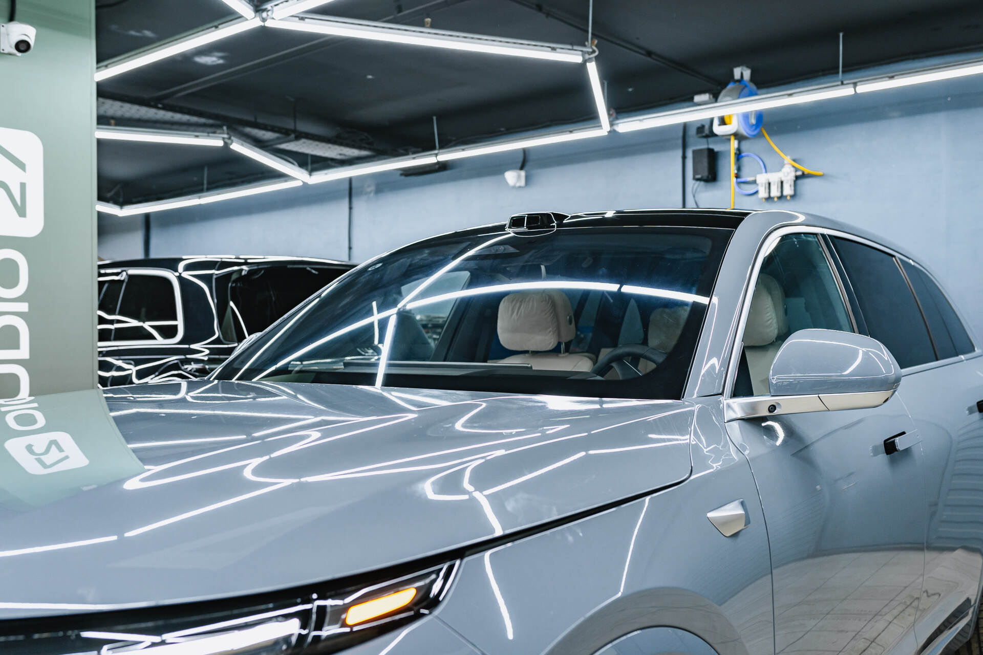 В нашей автостудии представлен широкий спектр полезных и востребованных услуг, среди которых особой популярностью пользуется бронирование автомобилей защитной плёнкой. Именно эту услугу заказал владелец Lixiang L7 2025 Рестайлинг, которому требовалось защитить лобовое стекло от царапин, потертостей и сколов, возникающих из-за воздействия пескоструя, мелких камней и другого дорожного мусора, вылетающего из-под колес впередиидущих автомобилей. В данном случае мы работали с плёнкой Never Scratch, которая по праву считается одним из лучших решений для долговременной сохранности стёкол – данная плёнка производится в Южной Корее и относится к премиальному сегменту защитных материалов, поэтому в её высочайшем качестве можно не сомневаться.
