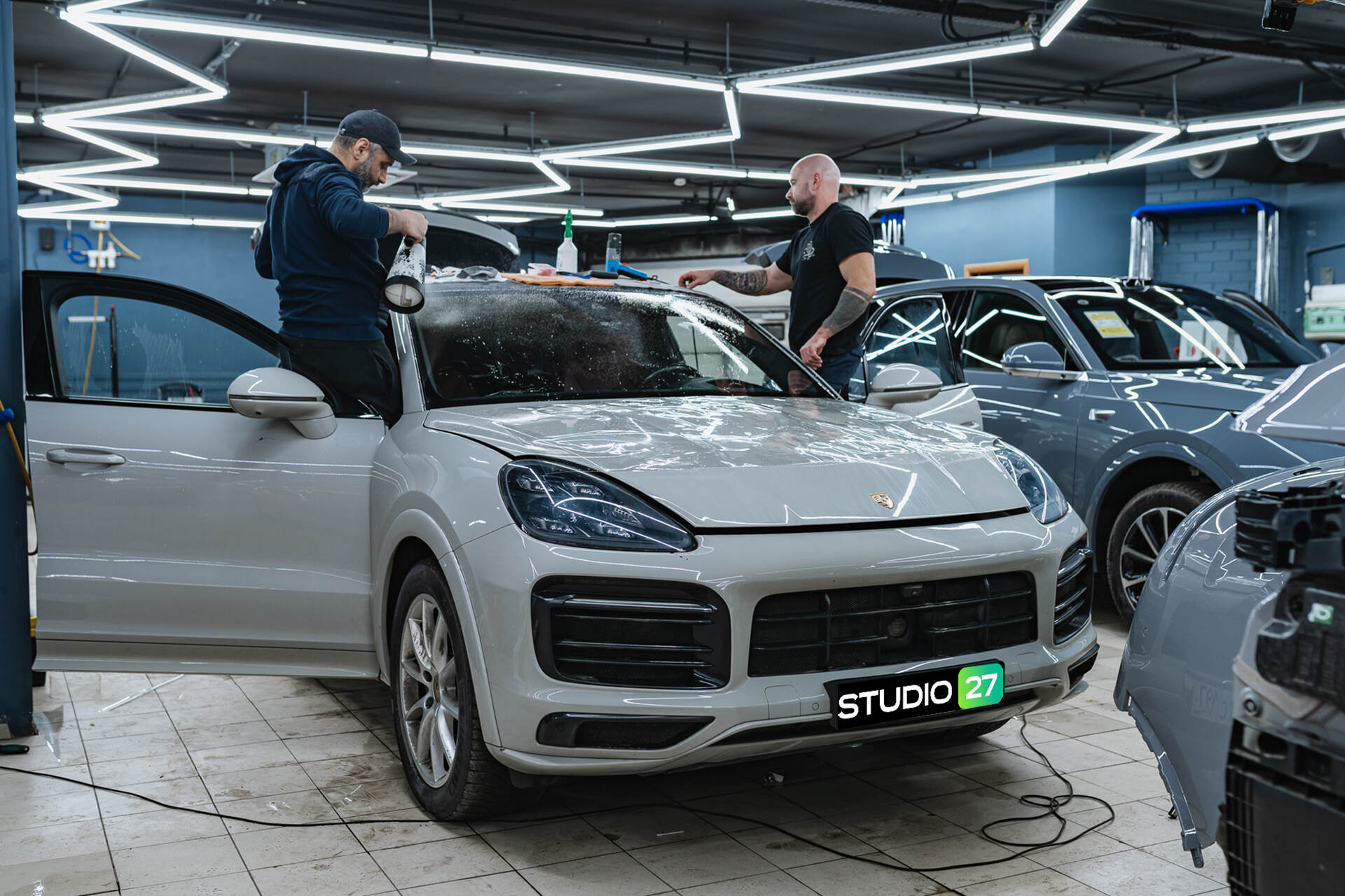 Бронирование лобового стекла — востребованная услуга нашей автостудии, позволяющая избежать распространенной проблемы появления трещин от вылетающего на скорости мелкого мусора. Для владельцев премиального Porsche Cayenne это решение особенно актуально, так как замена оригинального остекления обойдется в существенную сумму из-за высокой стоимости комплектующих. Здравый смысл подтверждает, что гораздо выгоднее и практичнее заранее позаботиться о защите, чем впоследствии сталкиваться с дорогостоящей и трудоемкой заменой поврежденного стекла.