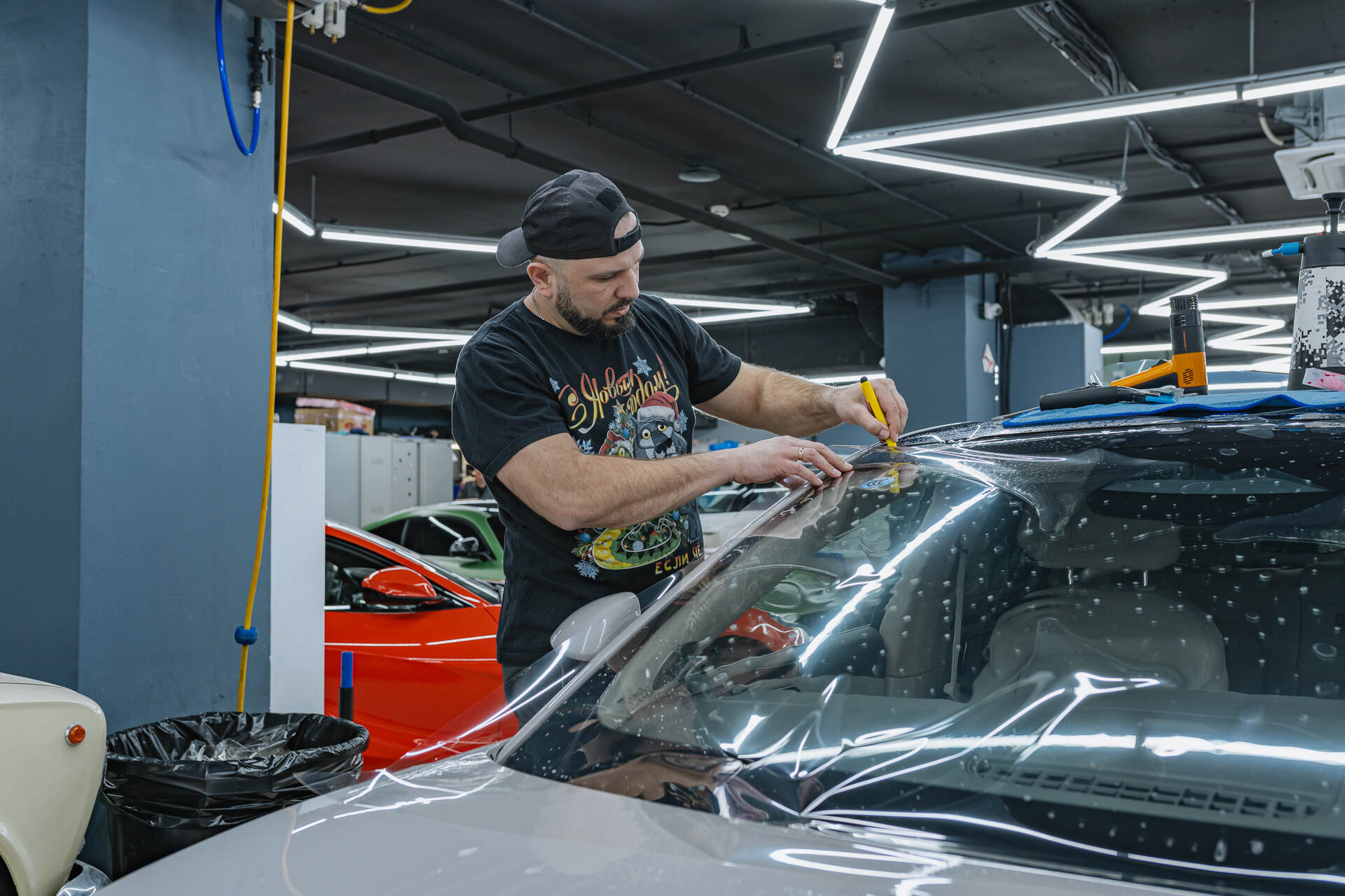 На финальном этапе мастер формирует точные контуры плёнки лезвием и прогревает защитный слой промышленным феном для безупречной фиксации на лобовом стекле. Полная прозрачность материала гарантирует отсутствие оптических искажений и сохраняет привычный обзор для водителя. Данное решение на практике доказывает свою высокую эффективность, надежно оберегая лобовое стекло от помутнения из-за пескоструя и предотвращая появление трещин от щебня. Благодаря такой броне поверхность остается идеально гладкой, что значительно продлевает срок службы оригинального стекла.