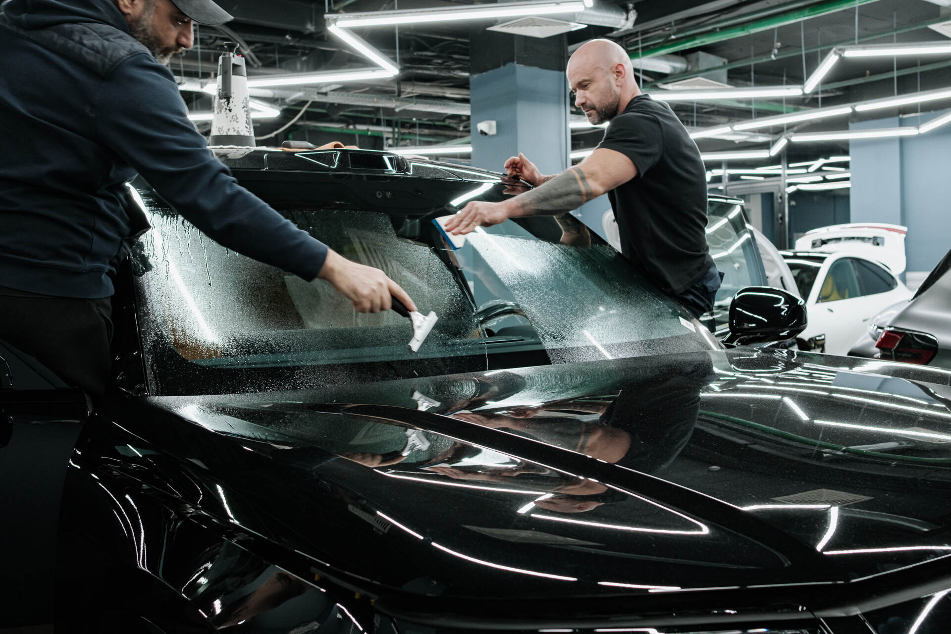 Для защиты лобовых стекол мы применяем специализированную пленку RAYNO, созданную для противодействия образованию сколов, царапин и потертостей от пескоструя. Бронирование стекол — востребованная услуга в нашей автостудии, поскольку обладатели новых премиальных автомобилей, как например китайский внедорожник Zeekr 9X Ultra, осознают важность сохранения ТС в первозданном виде. Важно учитывать, что для лобовых стекол подходят только узкоспециализированные материалы, а не любая плёнка. В условиях активной езды покрытие надежно служит около года, однако при умеренной эксплуатации этот срок может увеличиться. Тем не менее, в среднем через полтора или два года пленку рекомендуется обновить для поддержания идеальной видимости и защитных характеристик.