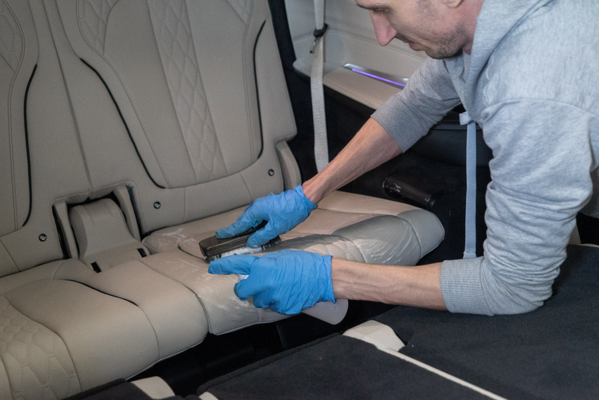 На этой странице мы разберем процесс комплексной химчистки интерьера BMW X7 G07. Хотя автомобиль поступил в работу без критических загрязнений, проведение глубокой очистки было обязательным условием перед нанесением защитной керамики на обивку. Светлое исполнение салона мгновенно проявляет любую грязь, и даже при визуальной чистоте мы уделили внимание каждому участку поверхности салона. Поскольку нашей основной задачей была подготовка базы под керамическое защитное покрытие, мы провели полную химчистку салона БМВ Х7 Г07.
