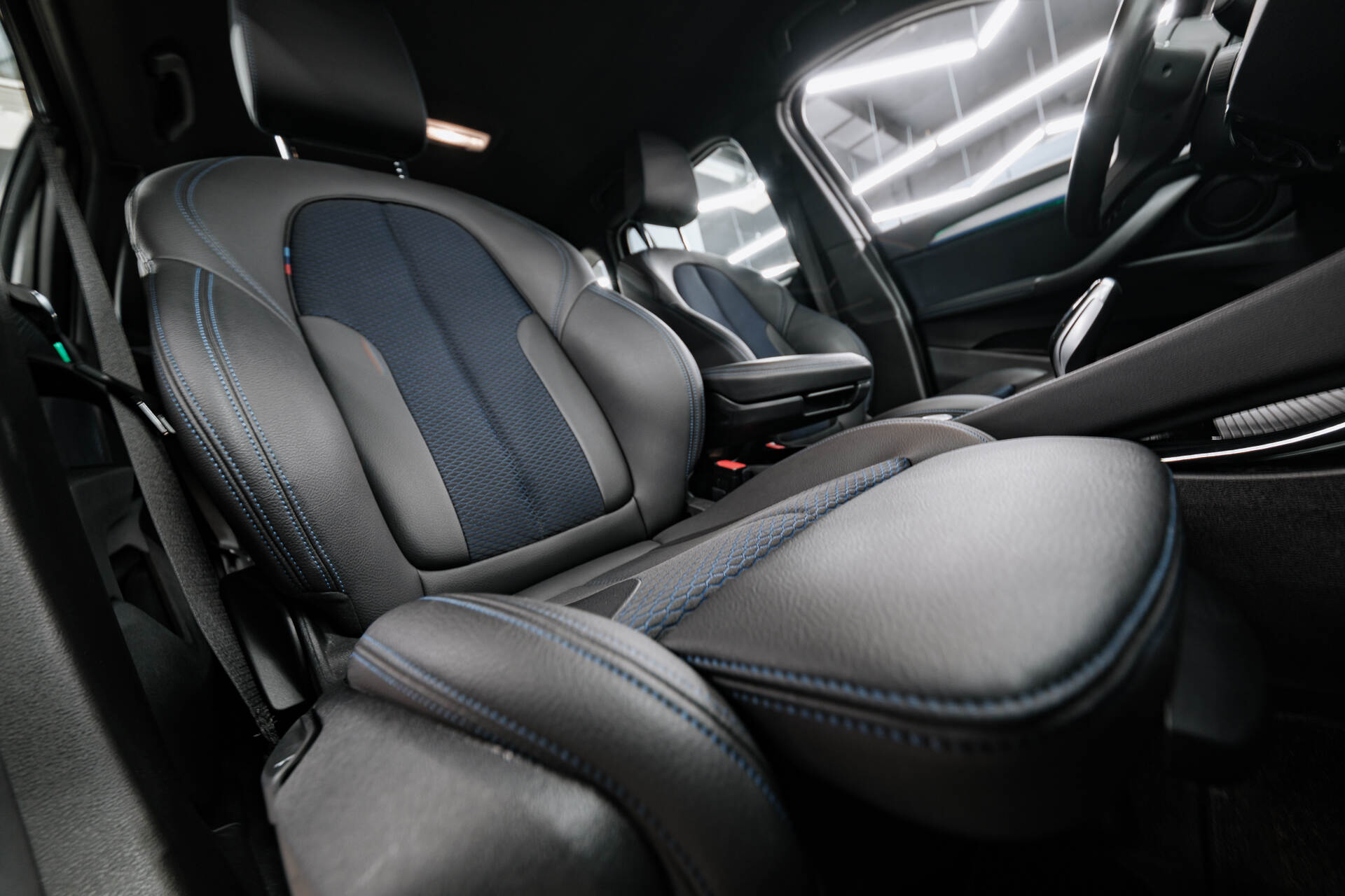Химчистка салона BMW X1 проводится с применением профессиональных методик, гарантирующих безупречную чистоту всех поверхностей. Для каждого типа материалов — будь то кожаные элементы, велюровые вставки, пластиковые детали или резиновые компоненты — мы используем узкоспециализированные составы. Эти средства абсолютно безопасны как для отделочных материалов автомобиля, так и для его пассажиров, включая домашних животных. После проведения химчистки мы предлагаем дополнительную услугу — нанесение керамического покрытия на кожаные поверхности салона. Эта опция позволяет закрепить достигнутый результат: керамика создает эффективный гидрофобный барьер, отталкивающий влагу и препятствующий въеданию загрязнений.