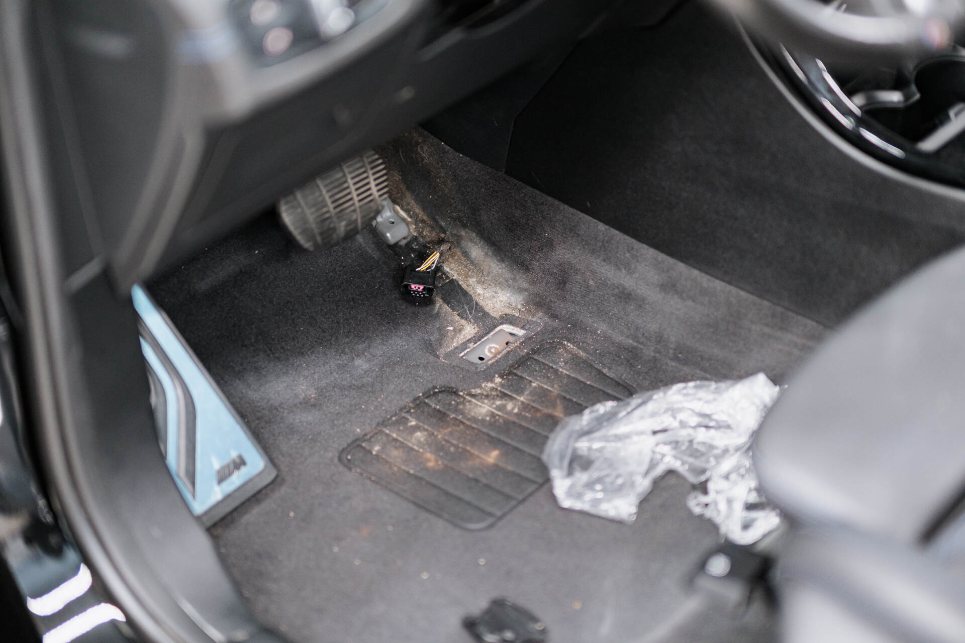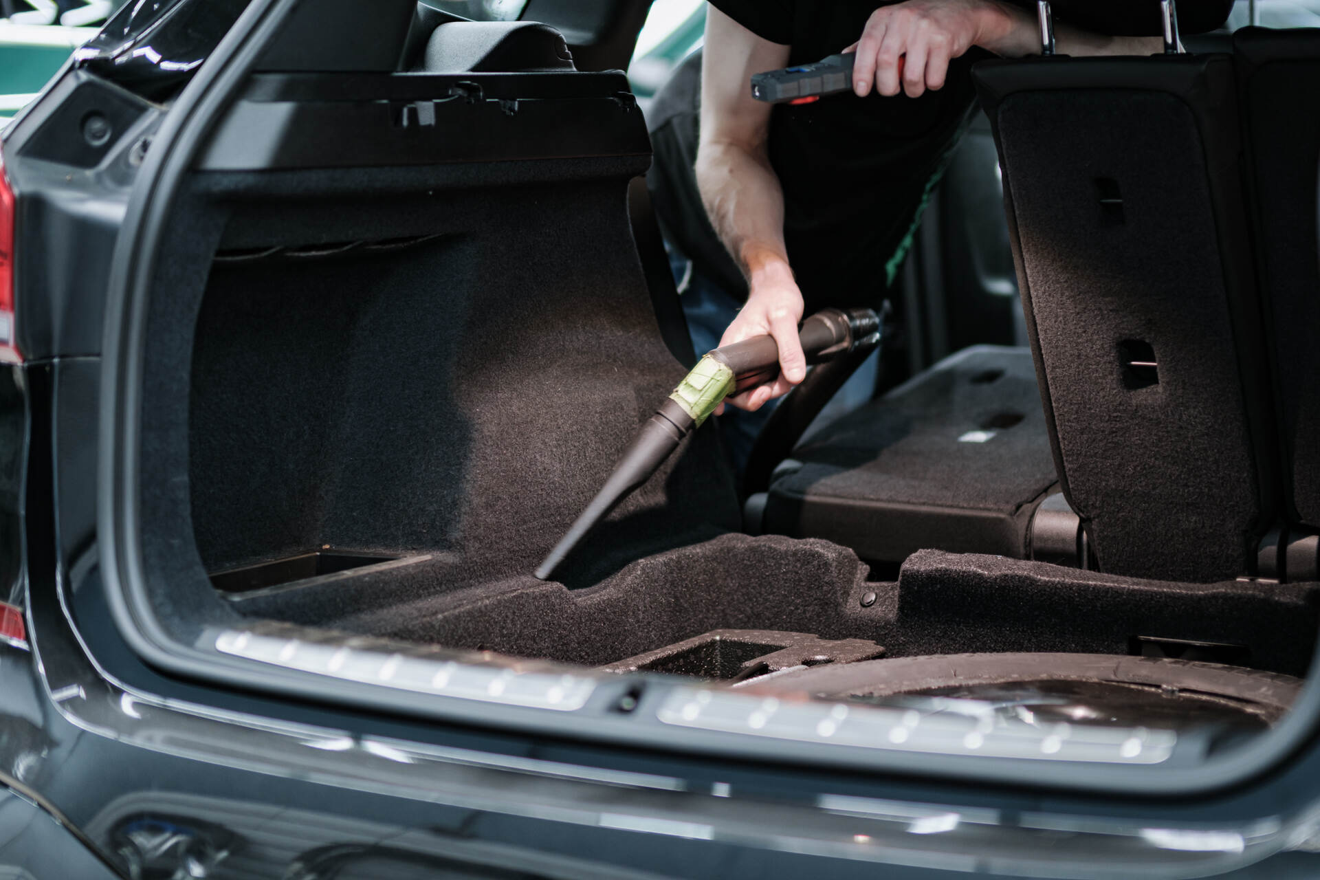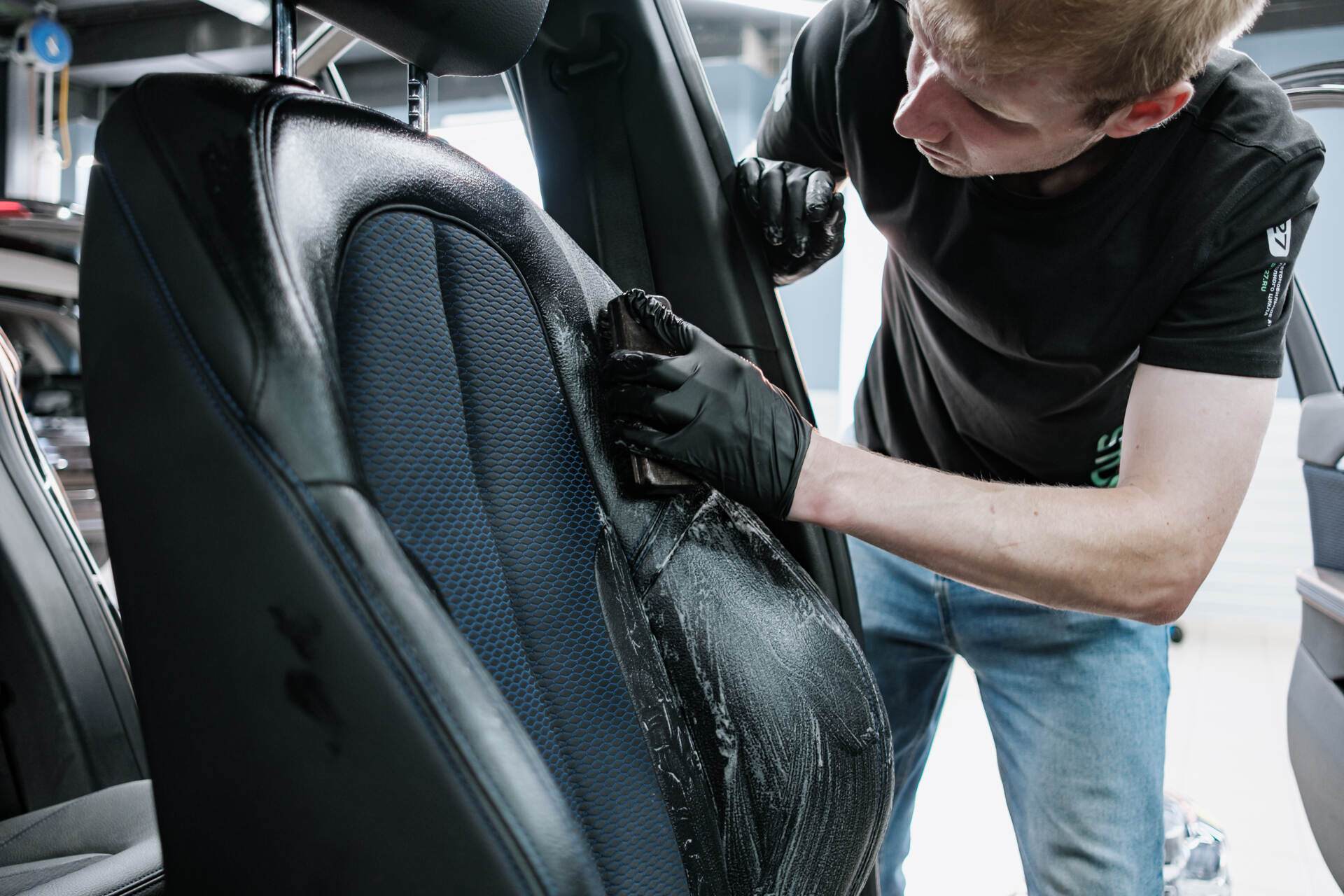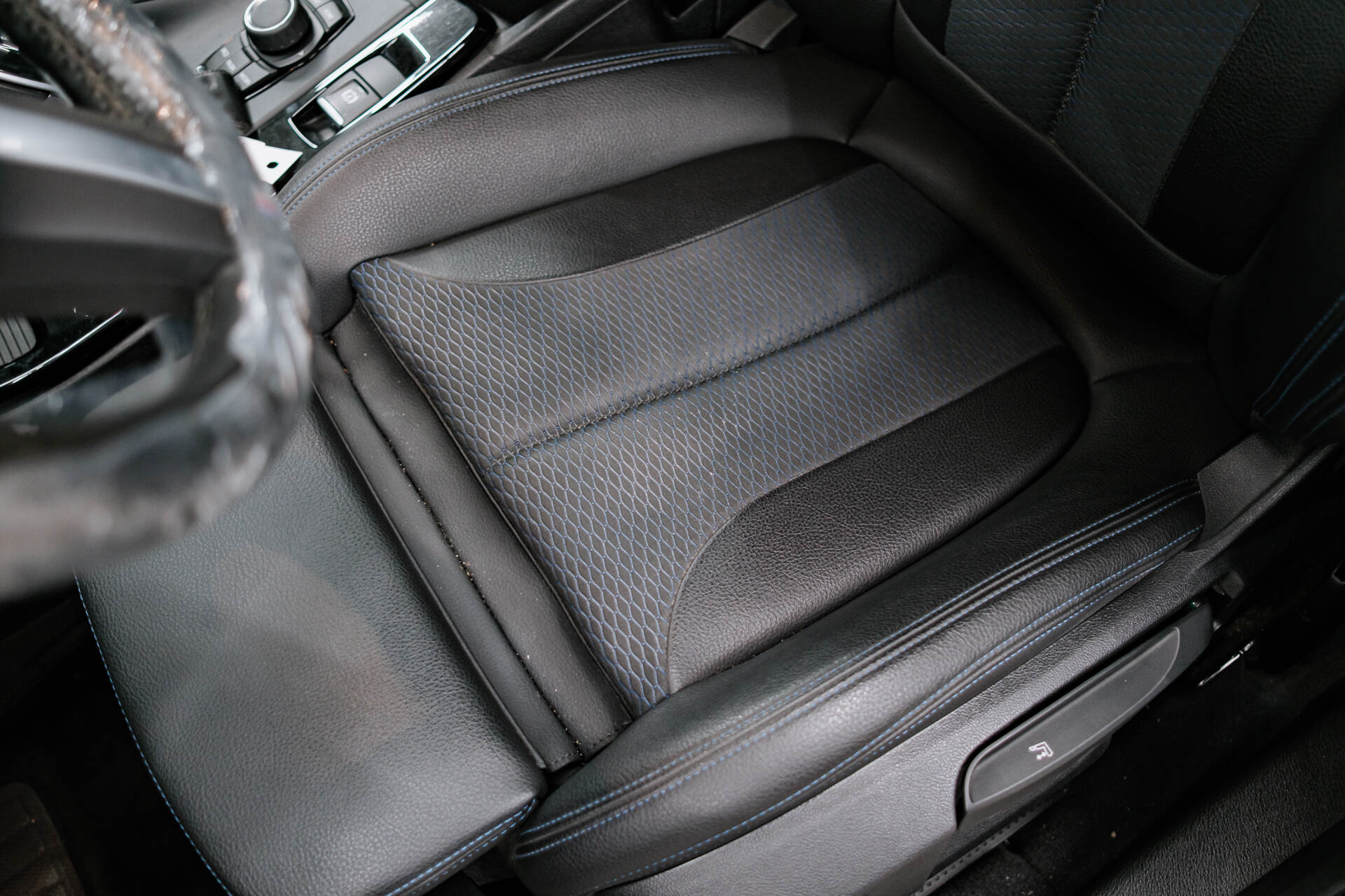 Процесс химчистки салона BMW X1 начинается с того, что мы тщательно пылесосим все зоны, включая труднодоступные участки и багажное отделение. Специализированные составы затем равномерно распределяются по сиденьям, дверным картам и панелям, обеспечивая глубокую очистку без разводов. Завершающим этапом становится сушка с использованием сжатого воздуха. В работе мы применяем исключительно премиальные средства брендов Koch и LeTech, признанные эталонными в профессиональном детейлинге – эти составы гарантируют бережное очищение при сохранении целостности всех материалов отделки.