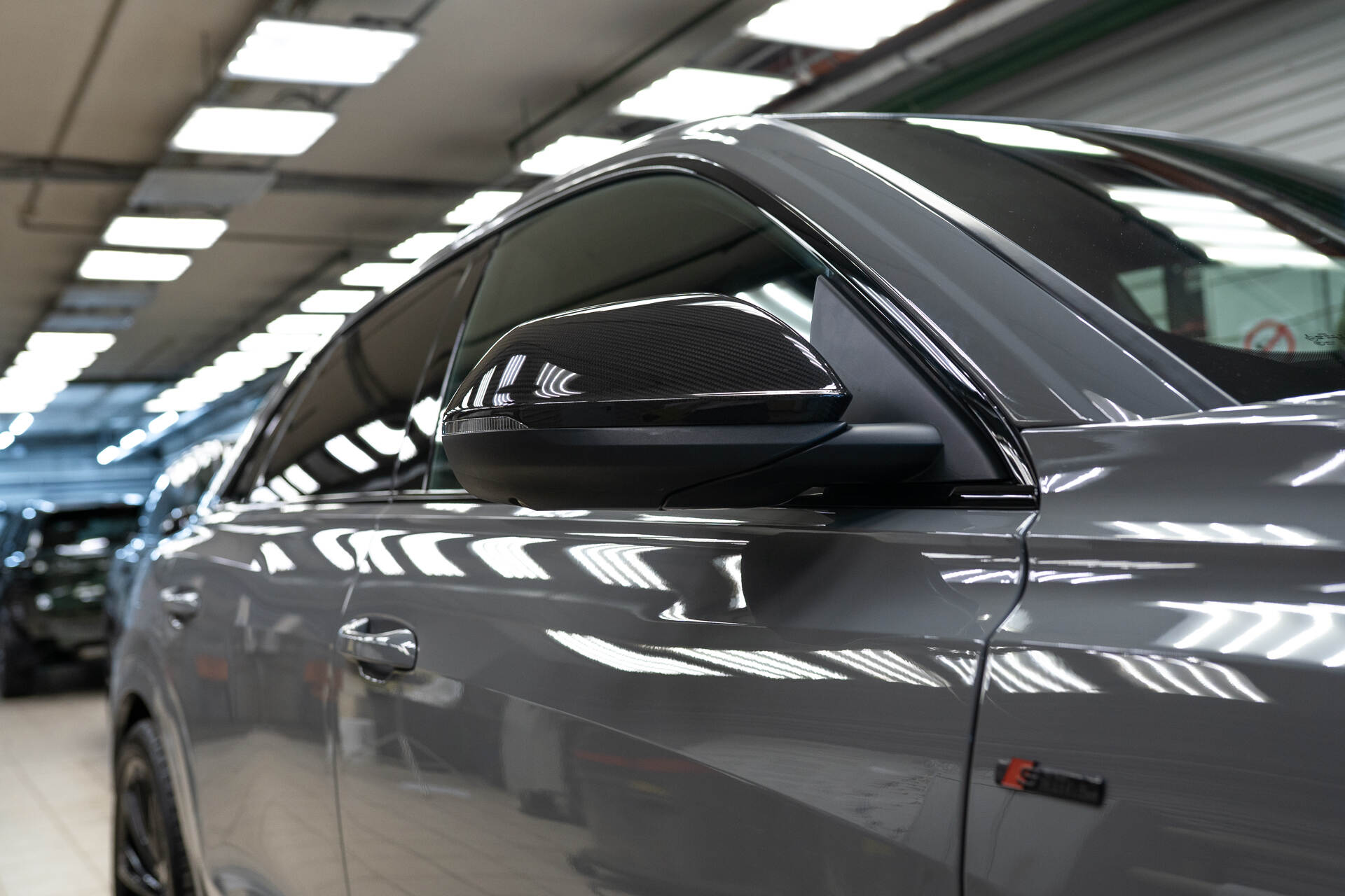 На текущей странице мы продемонстрируем, как нанесли полиуретановую защиту на кузов нового премиального кроссовера Audi Q8, владелец которого выбрал полную оклейку для сохранения лакокрасочного покрытия. Серый цвет кузова делает любые царапины и сколы от гравия или пескоструя особенно заметными, что быстро портит эстетику автомобиля. Профессиональное бронирование пленкой создает надежный барьер против дорожного абразива, предотвращая преждевременный износ ЛКП: такой подход гарантирует сохранение заводского вида авто даже при интенсивной эксплуатации, избавляя владельца от необходимости частых восстановительных полировок и подкрашиваний.