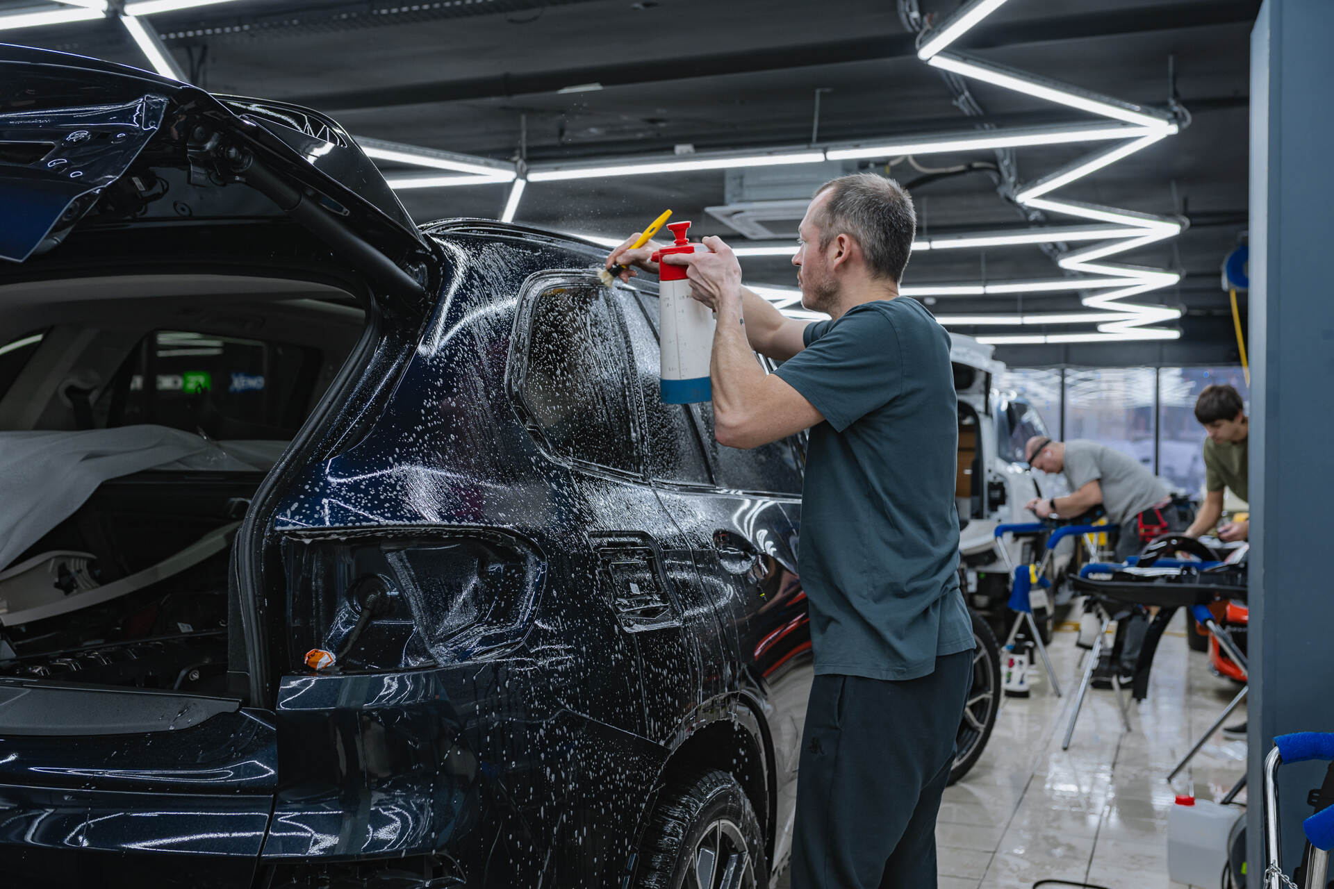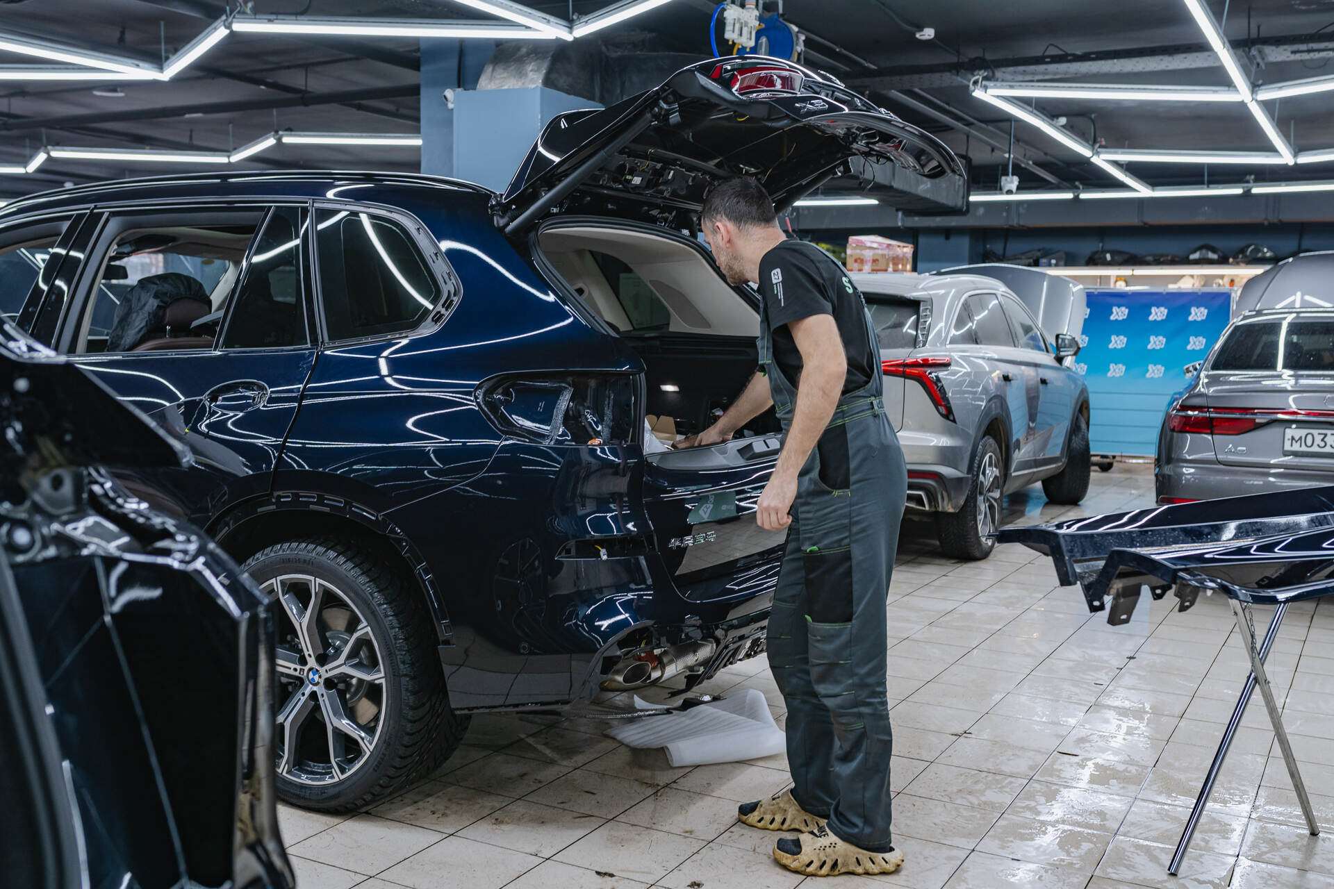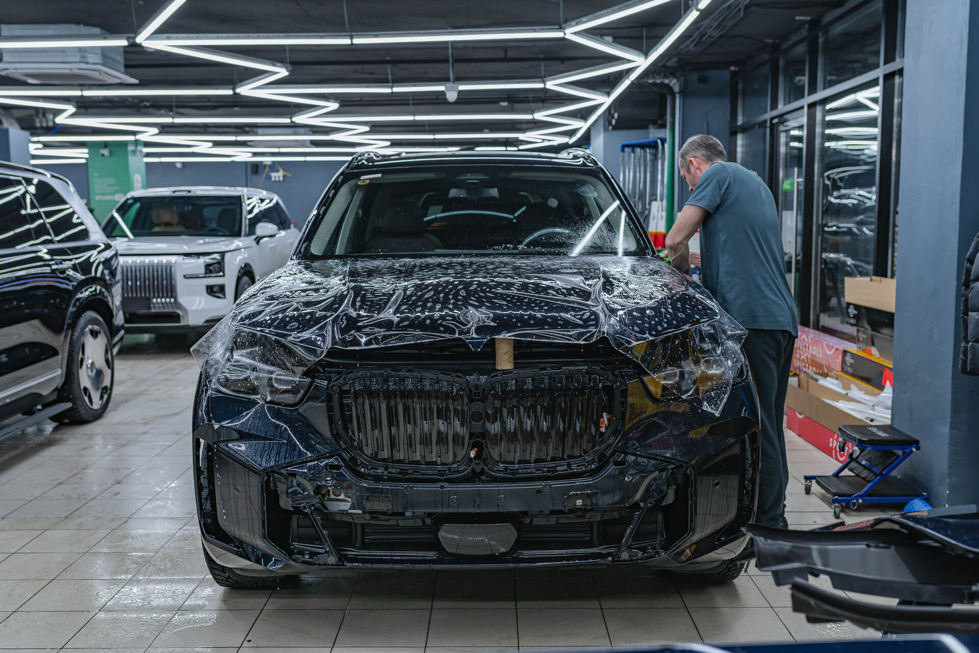 Профессиональное бронирование кузова BMW X5 G18 требует предельной точности: мастера равномерно натягивают полиуретан Spectroll Premium, тщательно удаляя ракелем остатки влаги и воздуха. Излишки материала аккуратно подрезаются лезвием, а многолетний опыт наших специалистов гарантирует абсолютную сохранность заводского лака. Завершающая термическая обработка промышленным феном надежно фиксирует покрытие и активирует его защитные свойства. В итоге автомобиль обретает мощный барьер против сколов и царапин, сохраняя первозданный вид кузова на долгие годы.