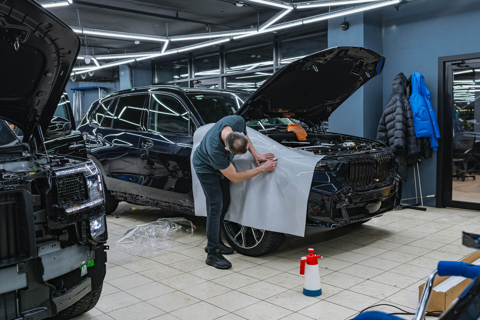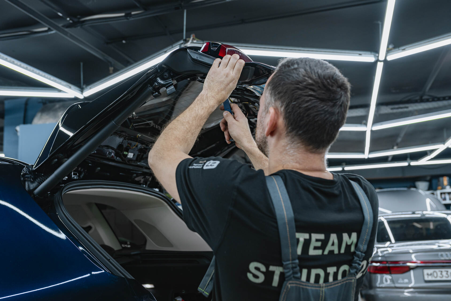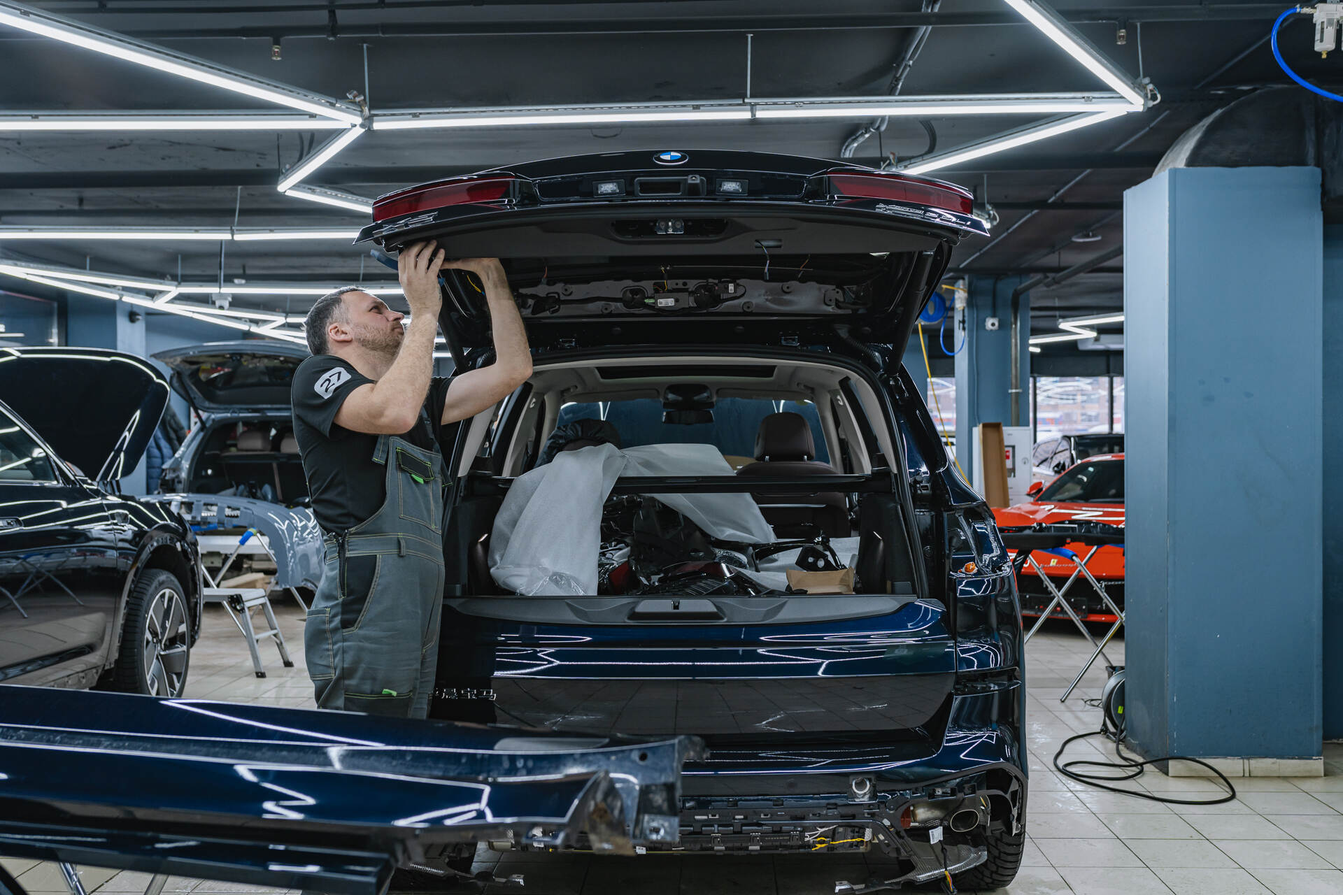 Профессиональное бронирование кузова BMW X5 G18 требует предельной точности: мастера равномерно натягивают полиуретан Spectroll Premium, тщательно удаляя ракелем остатки влаги и воздуха. Излишки материала аккуратно подрезаются лезвием, а многолетний опыт наших специалистов гарантирует абсолютную сохранность заводского лака. Завершающая термическая обработка промышленным феном надежно фиксирует покрытие и активирует его защитные свойства. В итоге автомобиль обретает мощный барьер против сколов и царапин, сохраняя первозданный вид кузова на долгие годы.