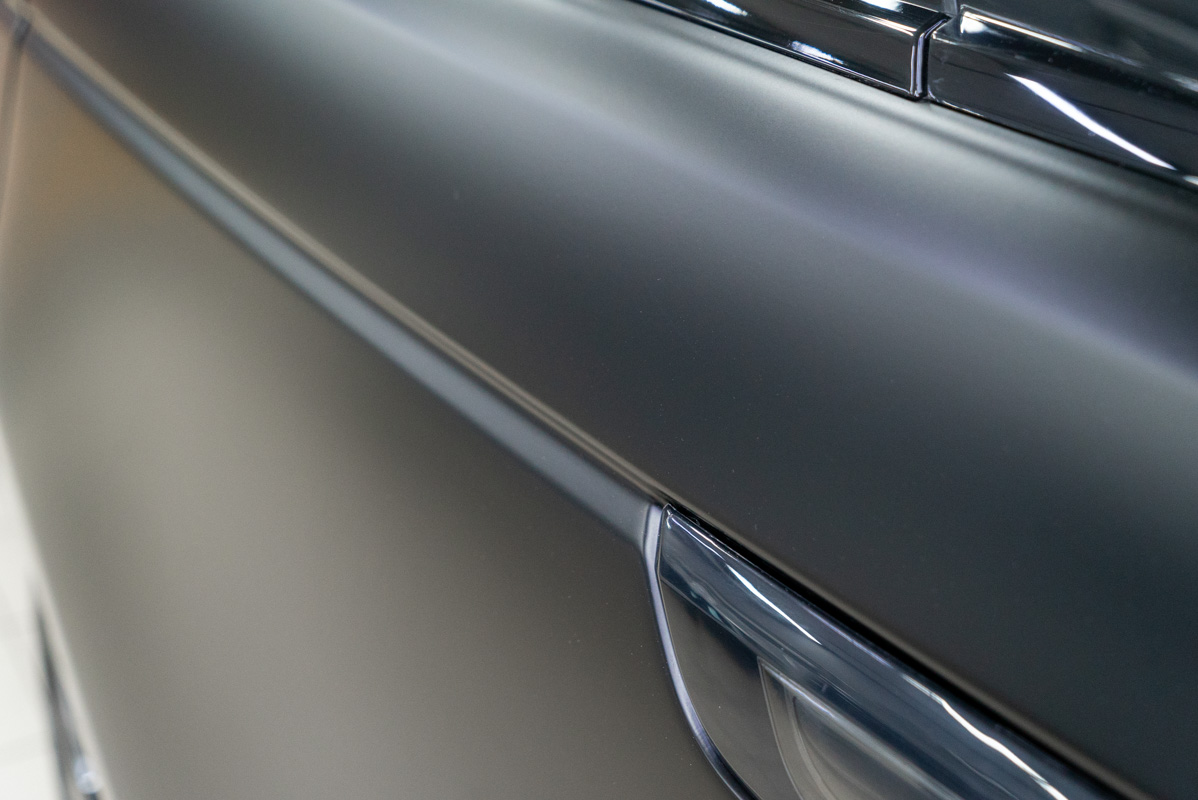 Матовую защиту кузова стоит расценивать в роли инвестиции для сохранения внешнего вида и высокого статуса автомобиля, благодаря чему он выглядит безупречно даже после внушительного пробега. Для Land Rover Range Rover мы будем использовать матовый чёрный полиуретан Wematec толщиной ~200 микрон, который формирует мощный барьер против сколов и гравия. Плотная структура материала не только эффективно амортизирует механические воздействия, но и допускает периодическую полировку для поддержания идеального вида. Такое покрытие обеспечивает эталонный уровень протекции в любых дорожных условиях, оберегая кузов от царапин и подчеркивая его эстетическую привлекательность.