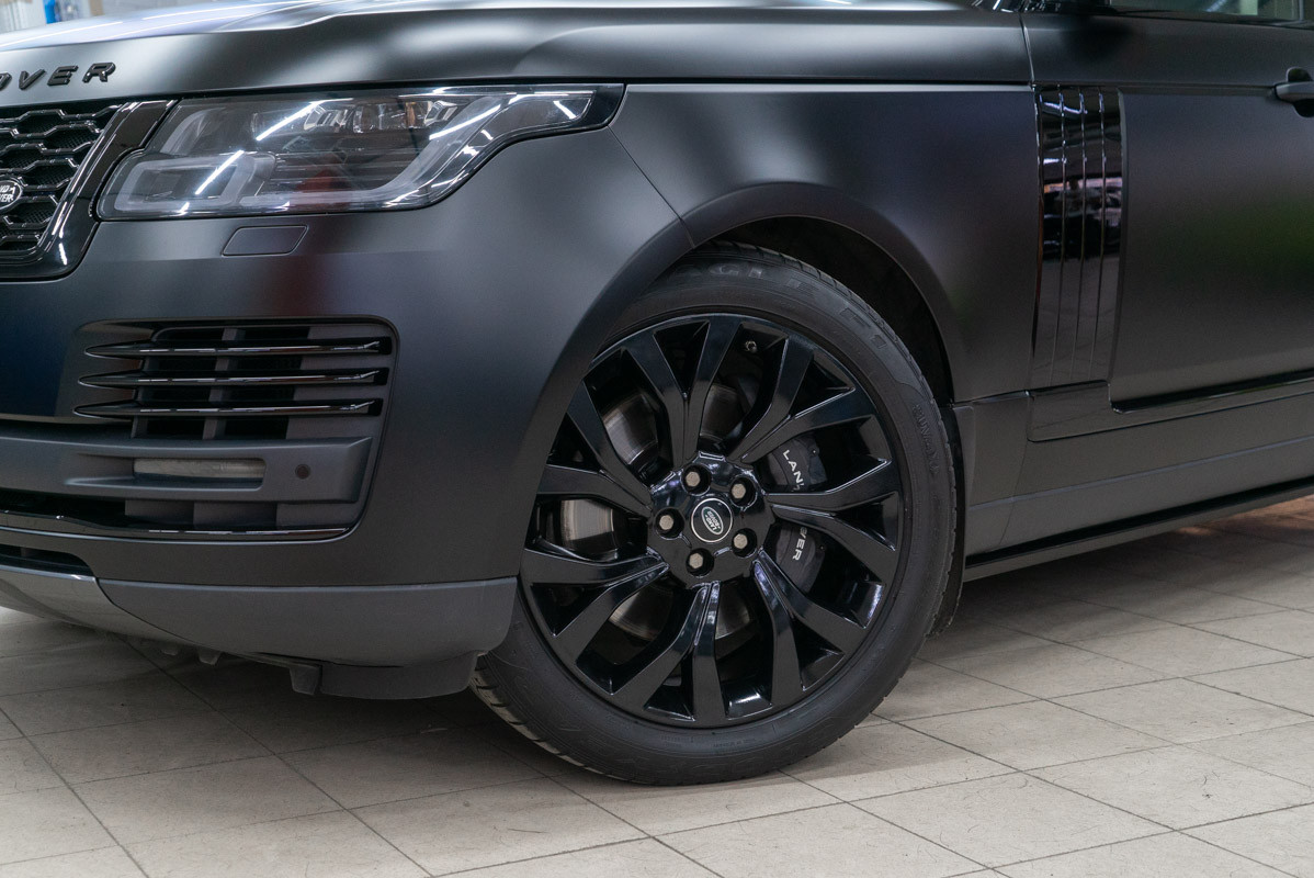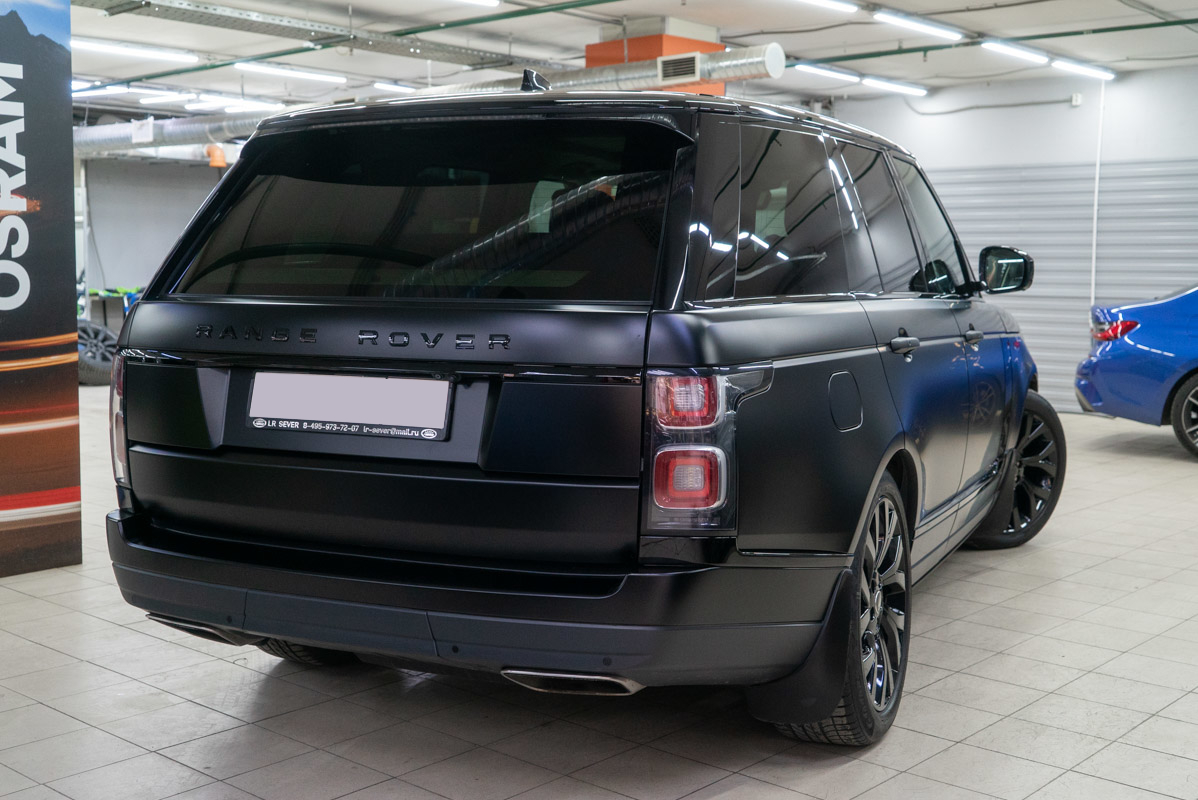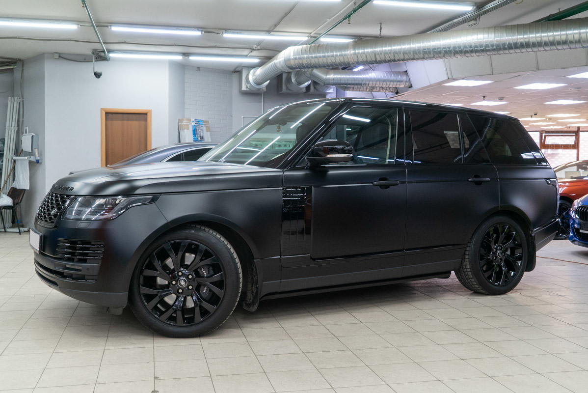 Оклейка Рендж Ровер чёрным матовым полиуретаном.