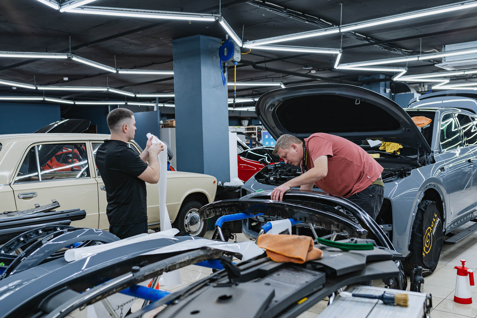 В отличие от бюджетных аналогов, склонных к пожелтению, американская пленка Spectroll Premium сохраняет безупречную прозрачность на протяжении нескольких лет. Материал устойчив к температурным перепадам, не пузырится и остается практически невидимым, надежно защищая кузов без изменения заводского цвета. Мы настоятельно рекомендуем избегать сомнительных автомастерских, где вместо оригинального покрытия Spectroll часто используют дешевые подделки без официальной гарантии от производителя. Качественный результат возможен только при сочетании сертифицированных материалов и профессионализма мастеров, что является стандартом работы нашей автостудии.