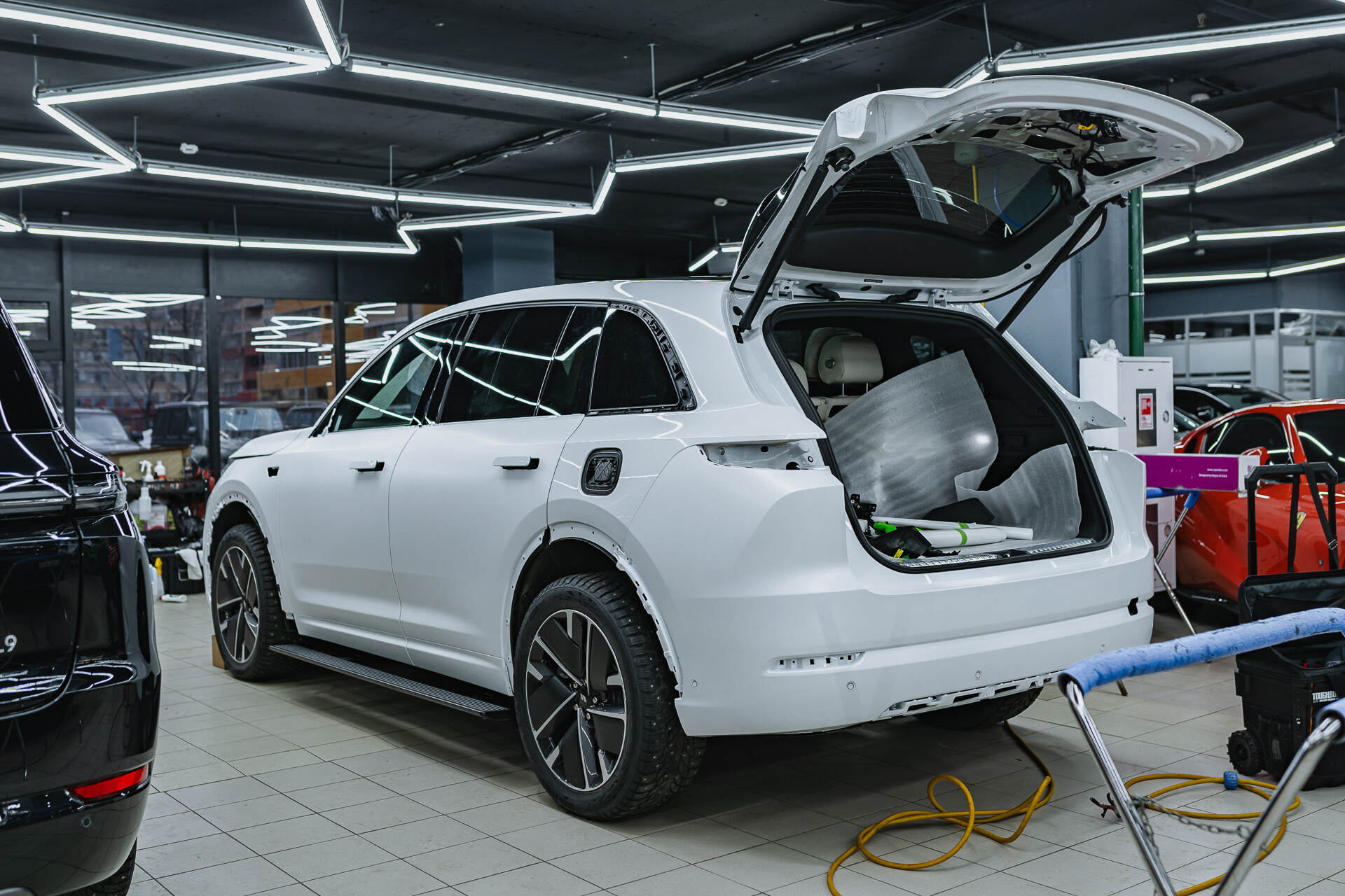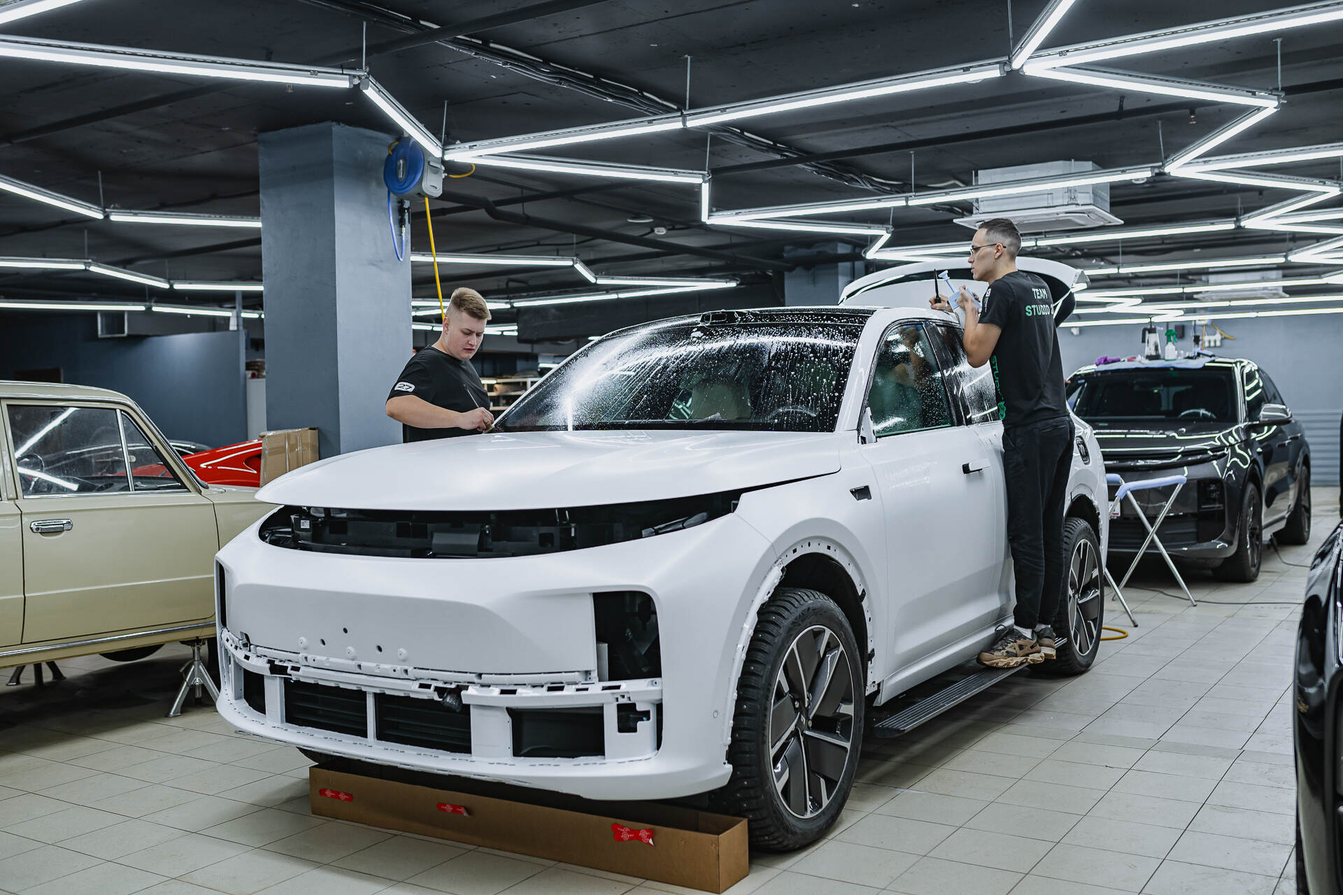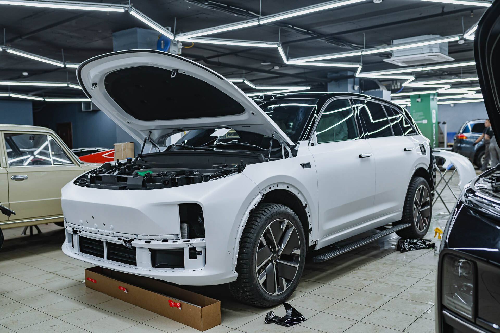 Оклейка кузова Lixiang L7 2025 Рестайлинг в черный глянец в прозрачную матовую плёнку