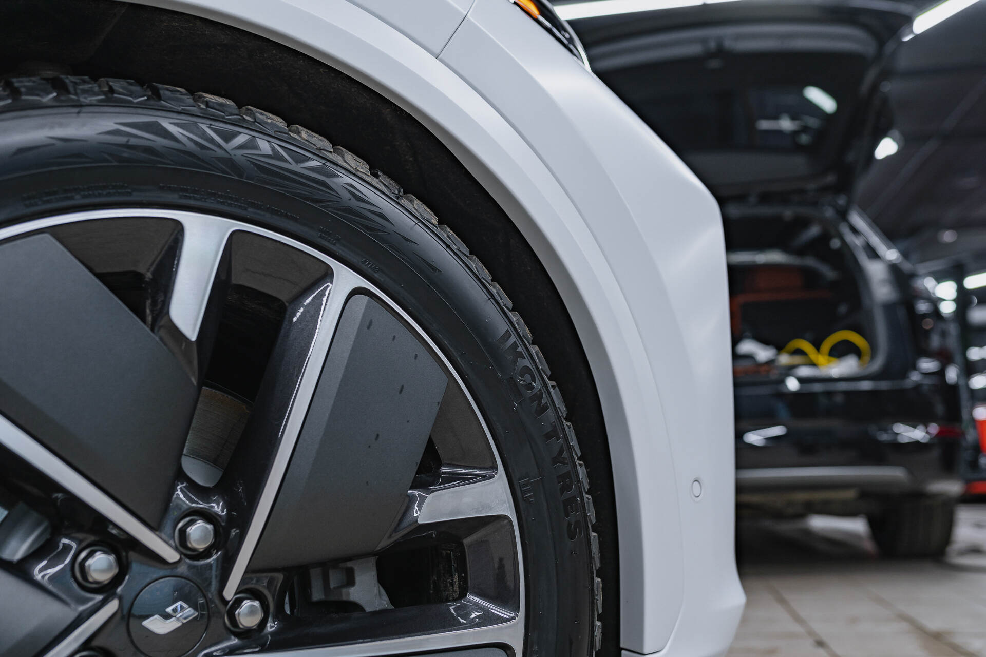 Для владельцев новых автомобилей мы рекомендуем превентивную защиту кузова с помощью проверенной матовой полиуретановой пленки Spectroll Premium Matte, которая отлично противостоит пескострую и мелкому щебню, сохраняя поверхность кузова от помутнения и царапин. В дорожных условиях передняя часть машины — бампер, капот и фары — постоянно принимает на себя удары вылетающего из-под колес мелкого мусора. Именно эти зоны являются наиболее уязвимыми, поэтому их бронирование в первую очередь позволяет надолго сохранить первозданный вид и целостность лакокрасочного покрытия. В данном материале мы покажем, как полностью оклеили кузов электромобиля Lixiang L7 2025 Рестайлинг матовой плёнкой, плюс сверху затянули в чёрный глянец для контраста.