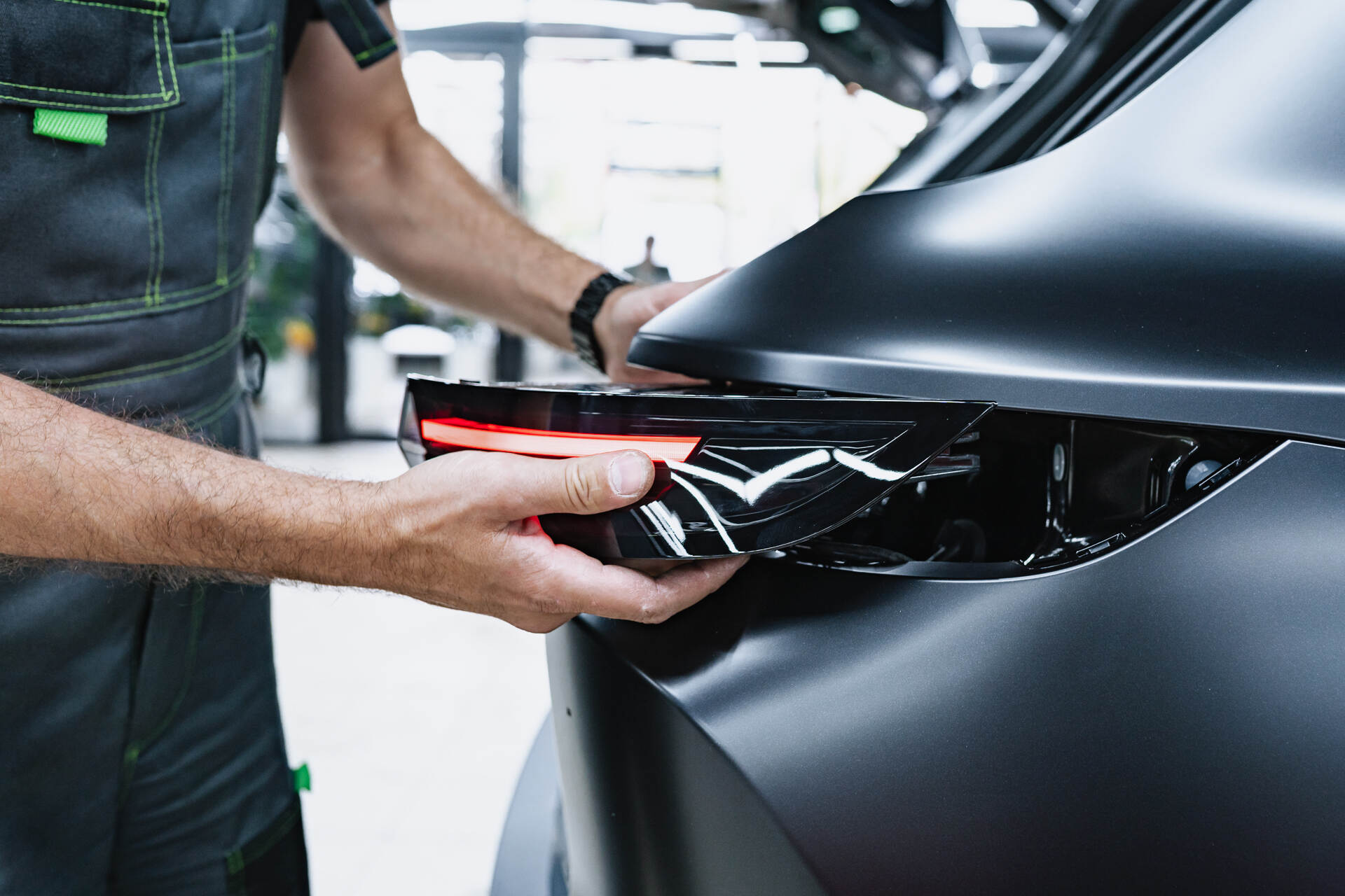 Матовая пленка станет оптимальным решением: она не только скрывает существующие микроповреждения, но и формирует надежный барьер против новых. Фактически речь идет про инвестицию в безупречный внешний вид и сохранение статуса автомобиля, который даже после значительного пробега будет выглядеть, как только что приобретенный в салоне. Для Lixiang L7 мы предложили матовую полиуретановую пленку Spectroll Premium Matte толщиной 210 микрон. Данный материал превосходно защищает кузов от мелких механических повреждений: царапин, сколов от щебня и гравия. Безусловно, он не спасет от серьезных ударов, но для повседневной эксплуатации обеспечивает идеальную защиту.