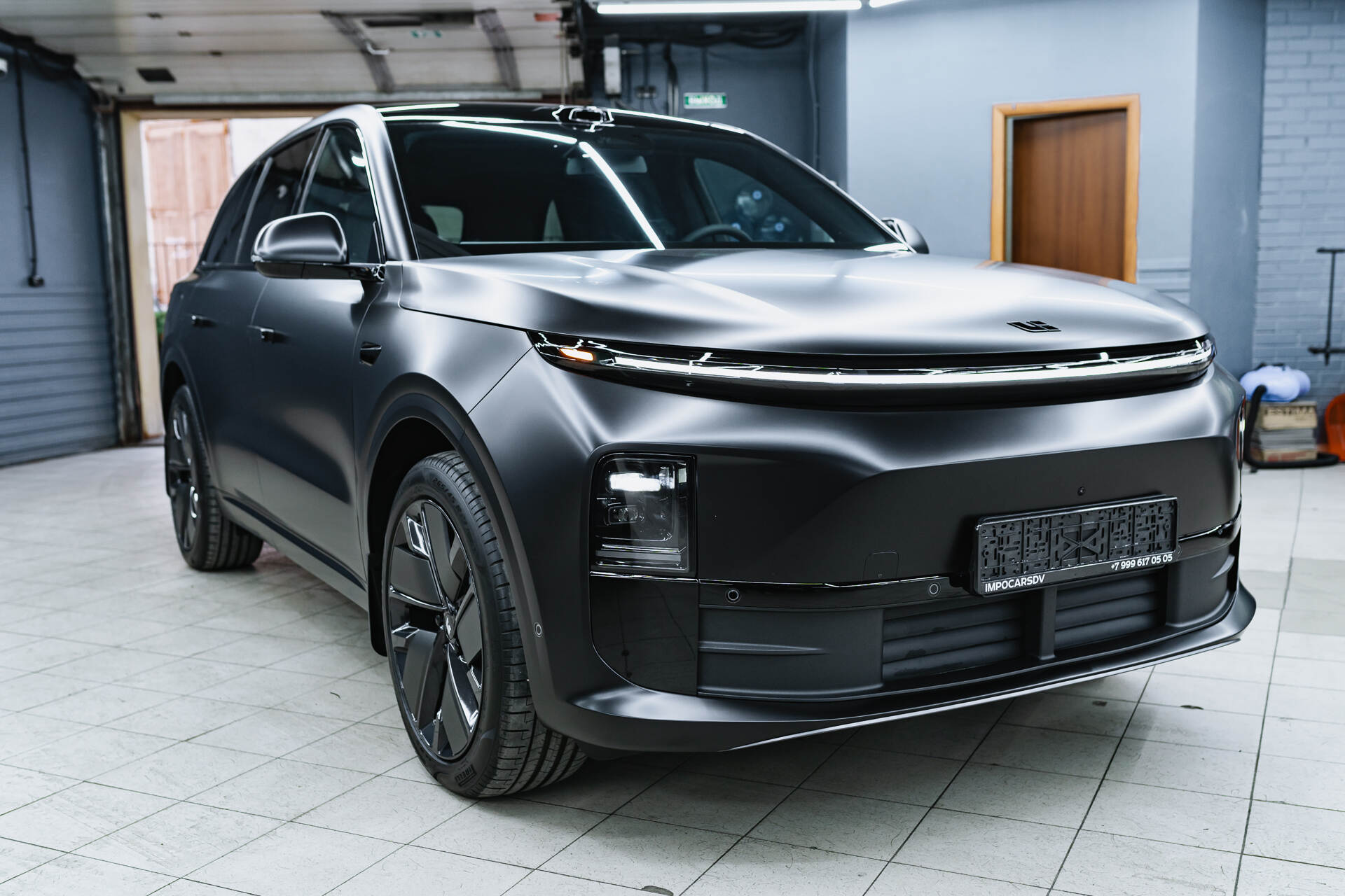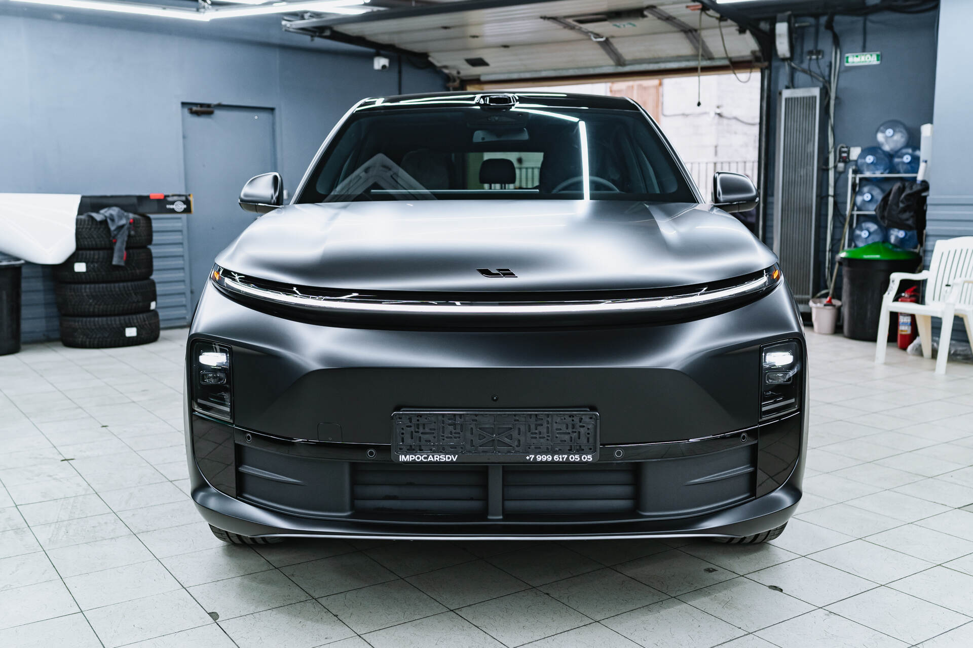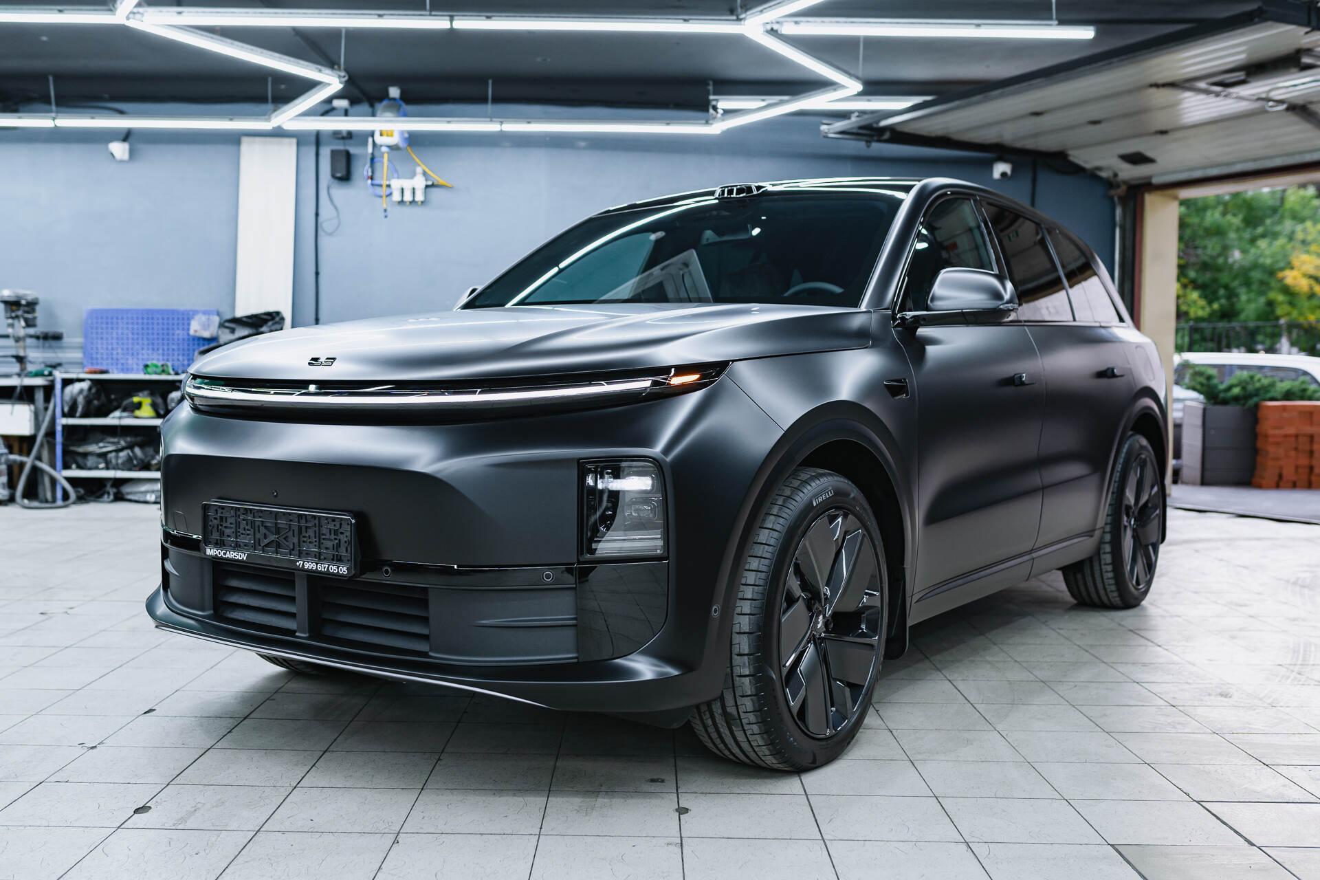 Красота и защита кузова – это про матовую полиуретановую пленку, которая коренным образом меняет восприятие транспортного средства. Вот и в этот раз в нашу автостудию обратился владелец черного Lixiang L7 с целью полной оклейки кузова матовой защитной пленкой. Эта процедура надежно защитит лакокрасочное покрытие от абразивного воздействия пескоструя, гравия и мелких камней. Со временем, особенно на наиболее уязвимых участках — бампере, капоте и крыльях — появляются потертости, сколы и царапины. Как известно, для автомобиля это становится эстетической проблемой: каждый дефект контрастирует с глянцевой поверхностью, снижая не только визуальную привлекательность, но и рыночную стоимость при возможной будущей продаже.
