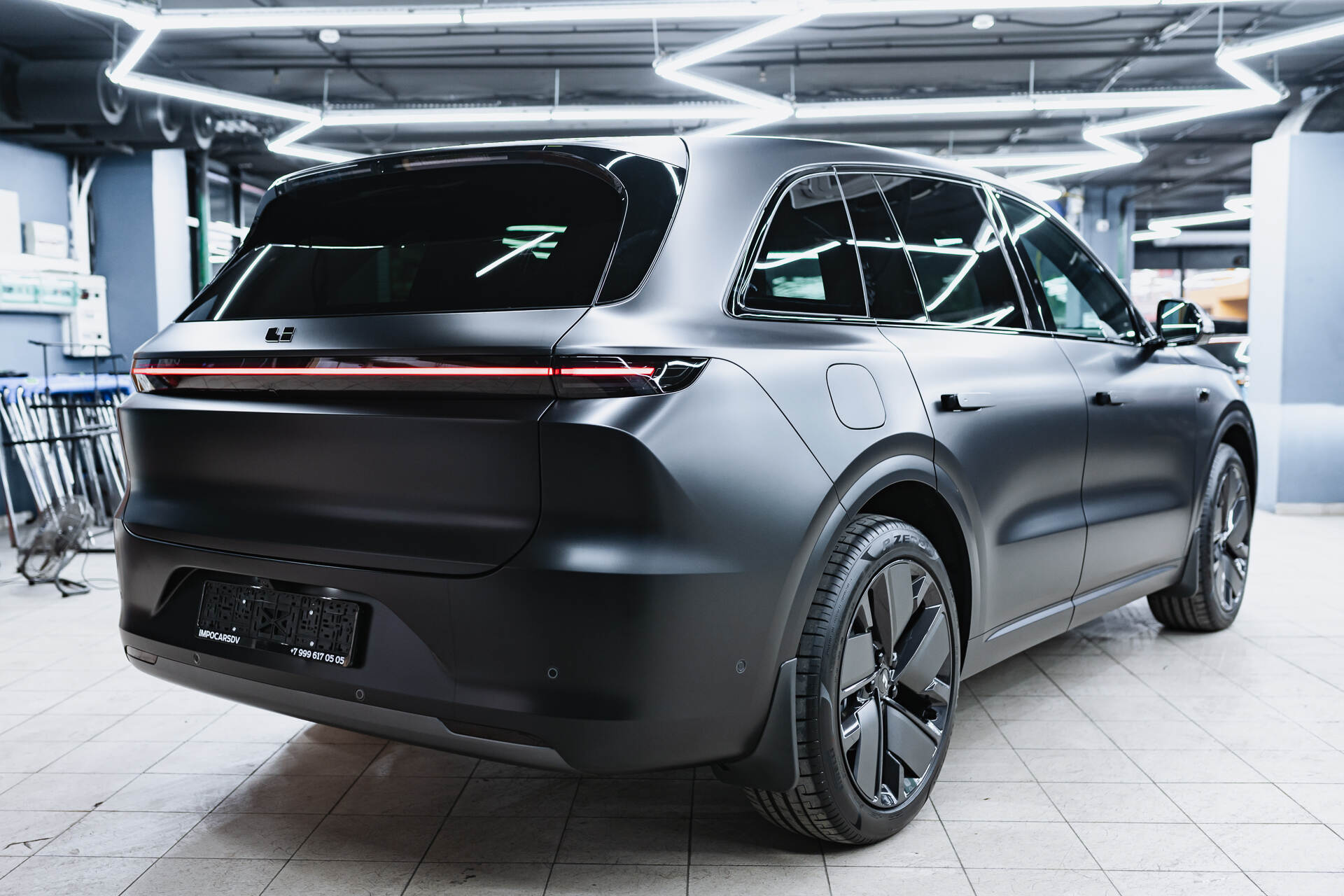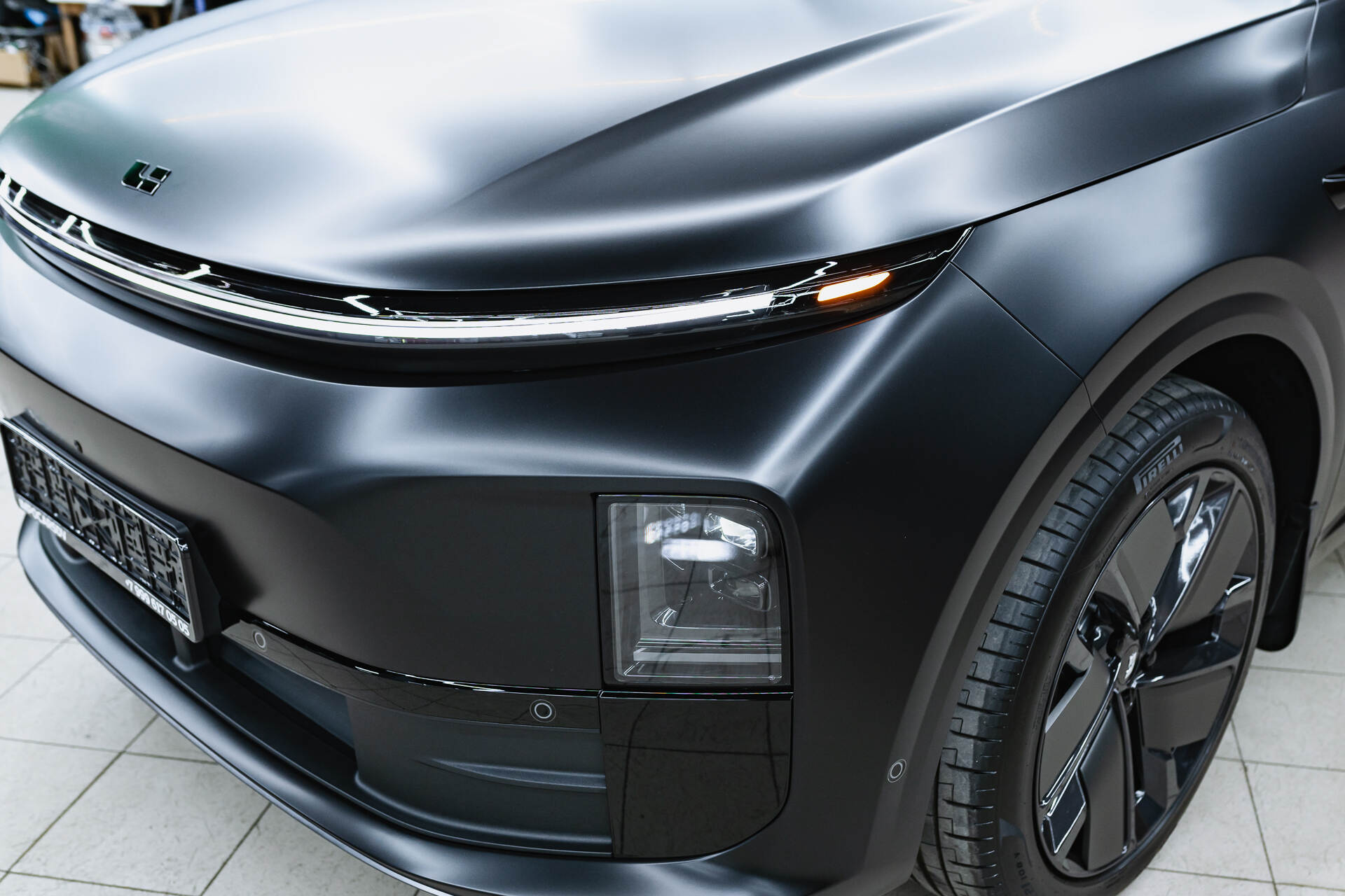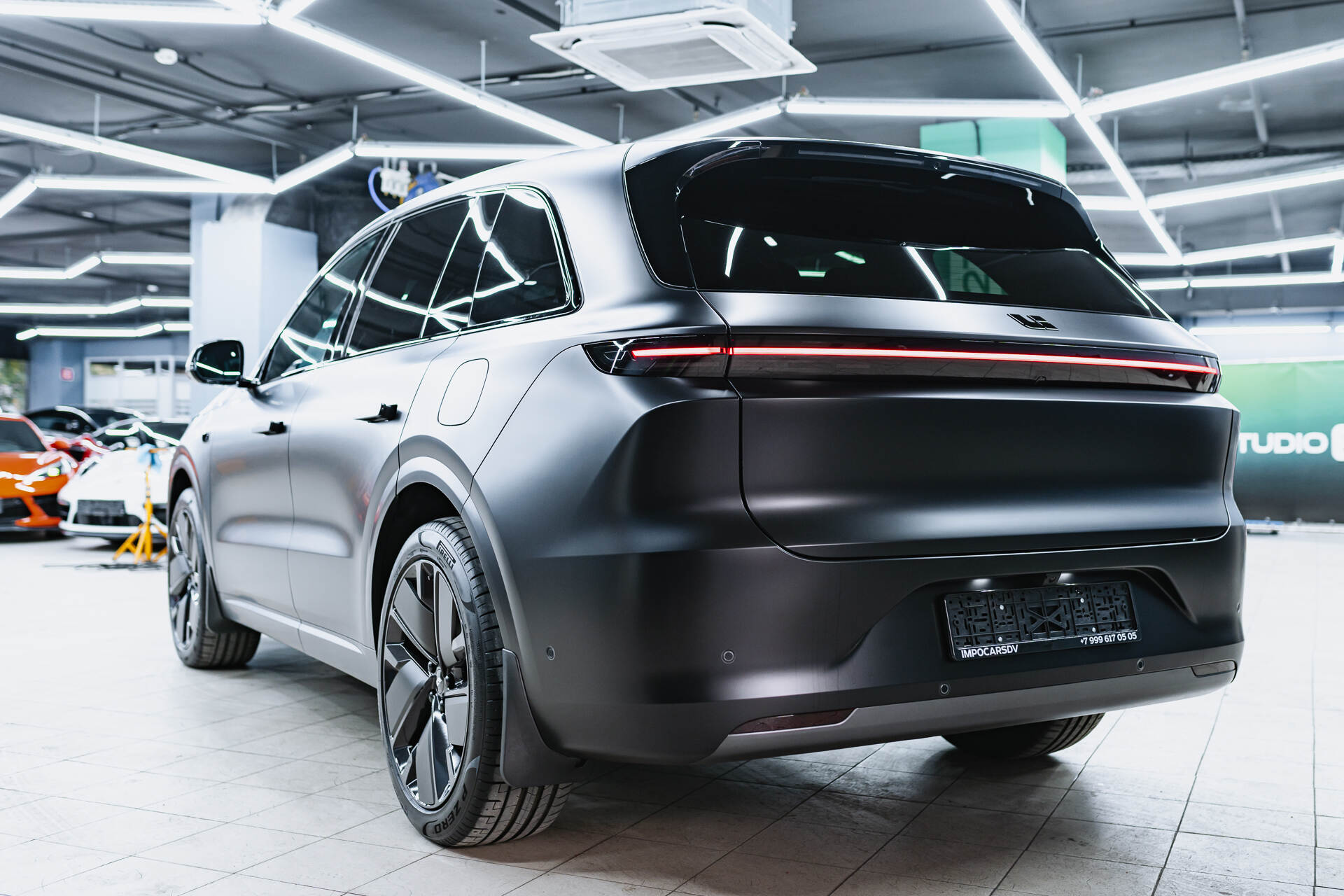 Красота и защита кузова – это про матовую полиуретановую пленку, которая коренным образом меняет восприятие транспортного средства. Вот и в этот раз в нашу автостудию обратился владелец черного Lixiang L7 с целью полной оклейки кузова матовой защитной пленкой. Эта процедура надежно защитит лакокрасочное покрытие от абразивного воздействия пескоструя, гравия и мелких камней. Со временем, особенно на наиболее уязвимых участках — бампере, капоте и крыльях — появляются потертости, сколы и царапины. Как известно, для автомобиля это становится эстетической проблемой: каждый дефект контрастирует с глянцевой поверхностью, снижая не только визуальную привлекательность, но и рыночную стоимость при возможной будущей продаже.