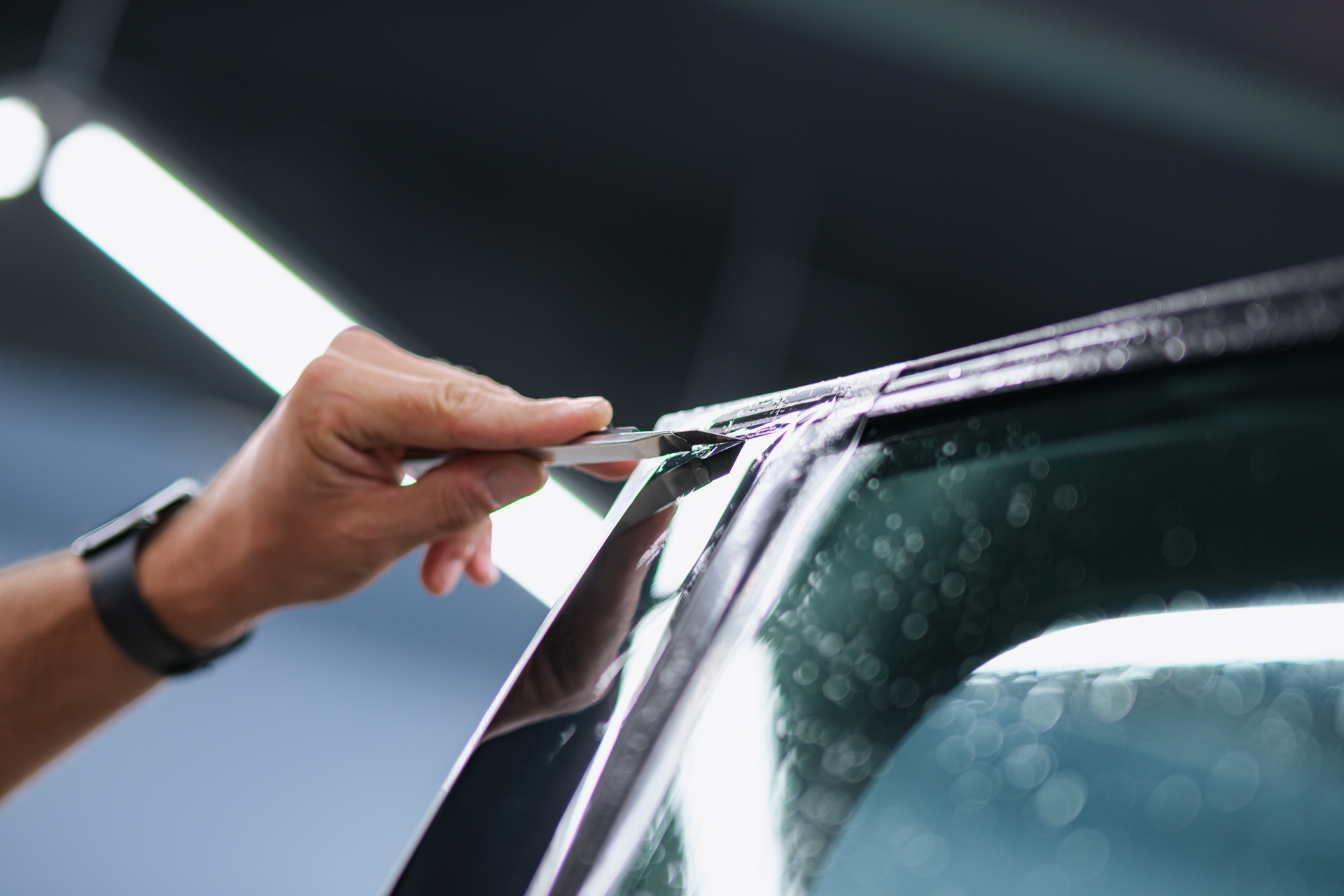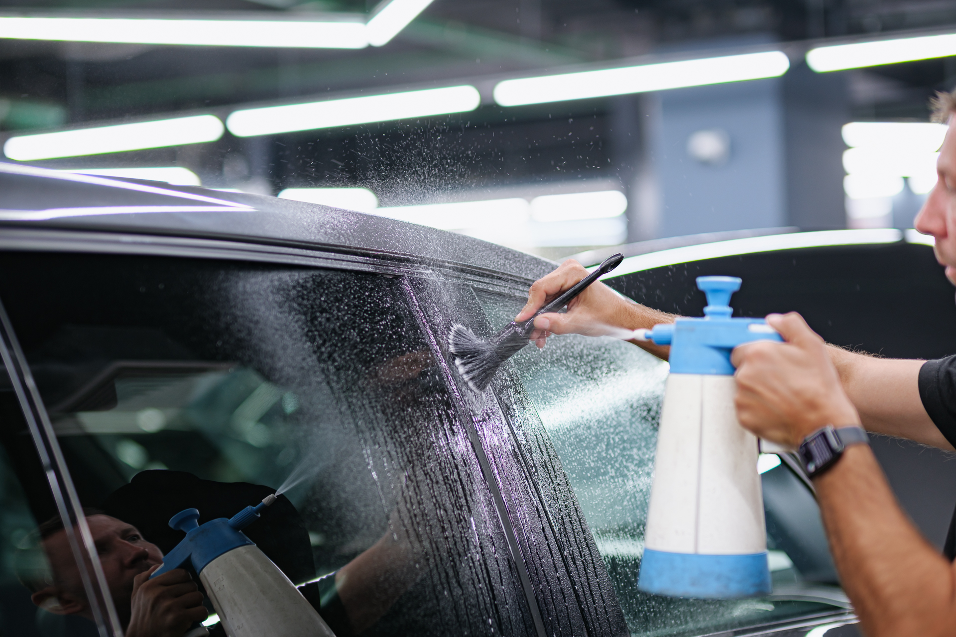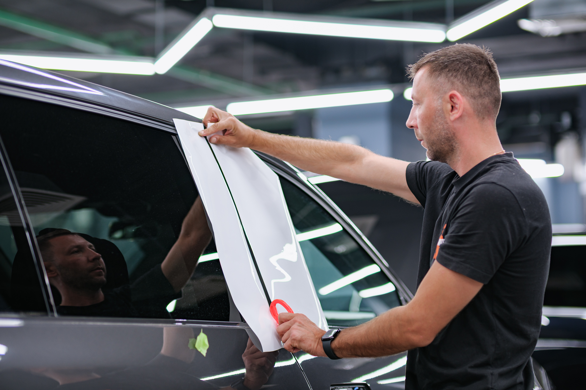 Частично разбираем автомобиль, тщательно чистим кузов и готовим плёнку к поклейке.