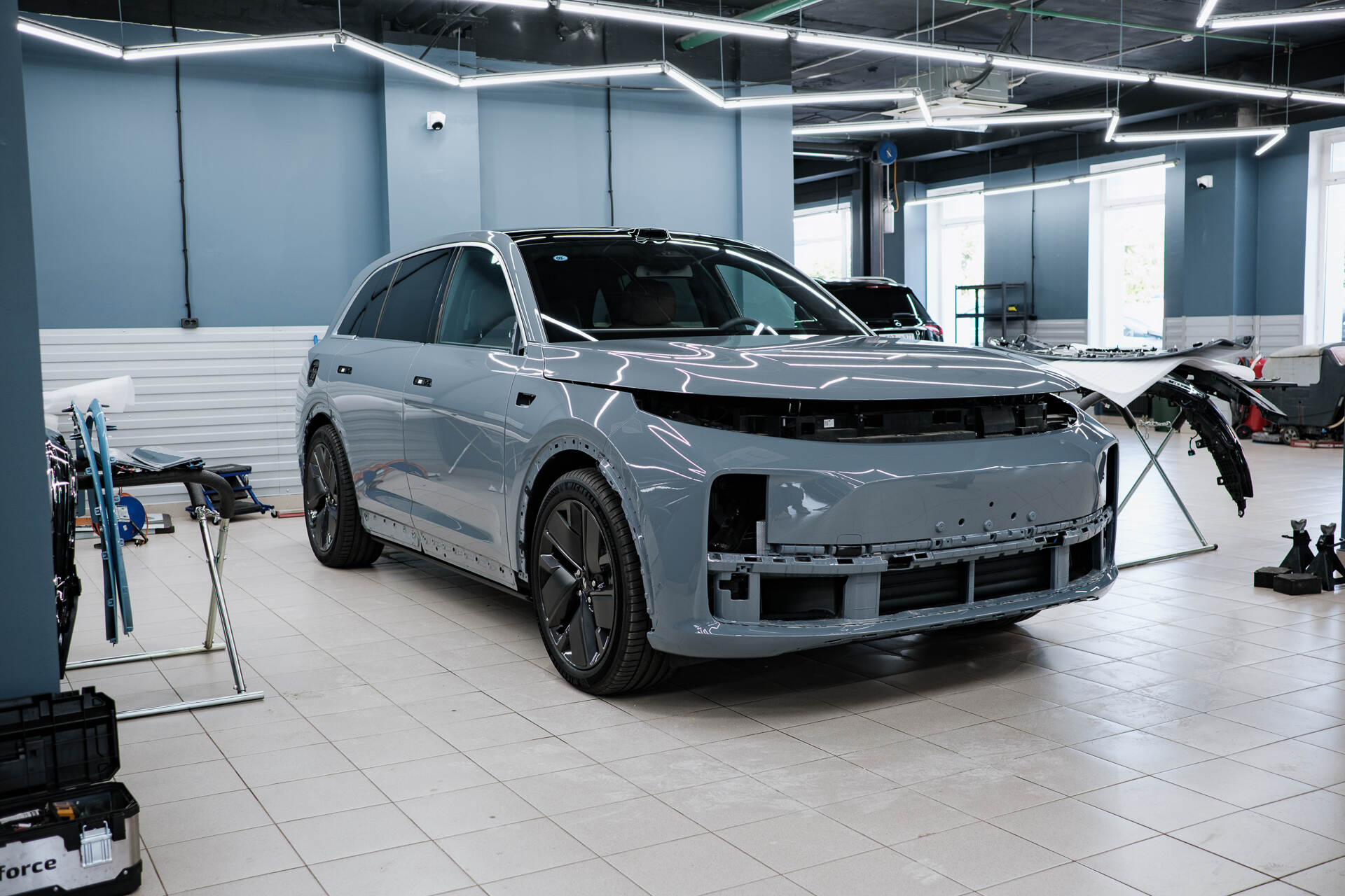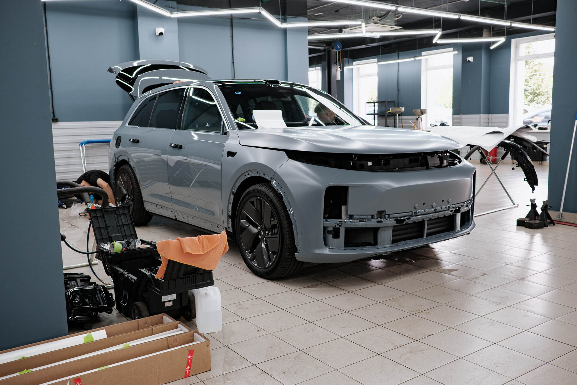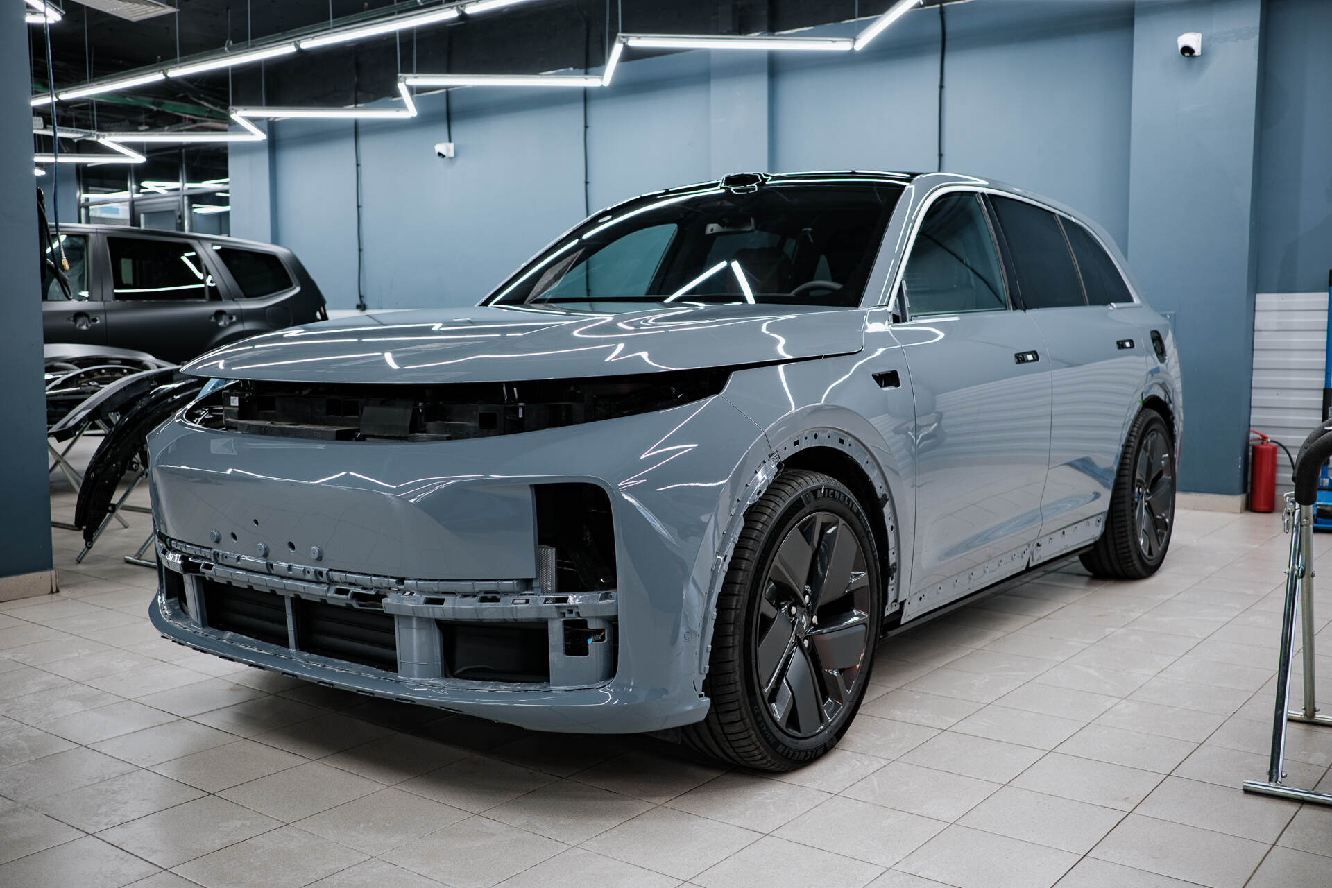 Владелец премиального китайского внедорожника Lixiang L7 Blue Grey обратился в нашу студию для полной оклейки кузова бронирующей пленкой, чтобы на долгое время сохранить его безупречный облик. Такая защита критически важна для зон, наиболее подверженных пескострую и ударам камней: капота, бампера и передних крыльев. Постепенное накопление мелких дефектов не только портит эстетику дорогого автомобиля, но и существенно снижает его остаточную стоимость при перепродаже. Мы убеждены, что автомобиль такого класса обязан выглядеть идеально, поэтому предложили клиенту профессиональное решение по консервации заводского состояния ЛКП плёнкой – процедура бронирования гарантирует защиту от дорожного мусора и образования царапин.
