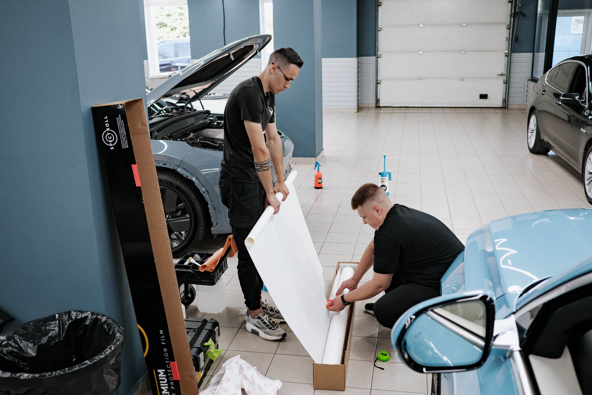 Бронирование кузова Lixiang L7 Blue Grey — это кропотливый процесс, занимающий от двух до трех суток и требующий безупречной подготовки. Прежде чем наносить покрытие, мастера проводят глубокую очистку, обезжиривание и полировку всех элементов для устранения мелких дефектов и придания поверхности зеркального блеска, также для удобства работы мы частично разбираем автомобиль. Сама технология оклейки начинается с выкраивания фрагментов пленки, далее каждый кусок плёнки обрабатывается специальным мыльным раствором для идеального позиционирования, после чего наносится на кузов во влажном состоянии. С помощью жесткого ракеля мастера тщательно разравнивают материал, вытесняя остатки влаги и устраняя малейшие складки. Такой системный подход гарантирует монолитное прилегание защиты и исключительную эстетику готового результата.
