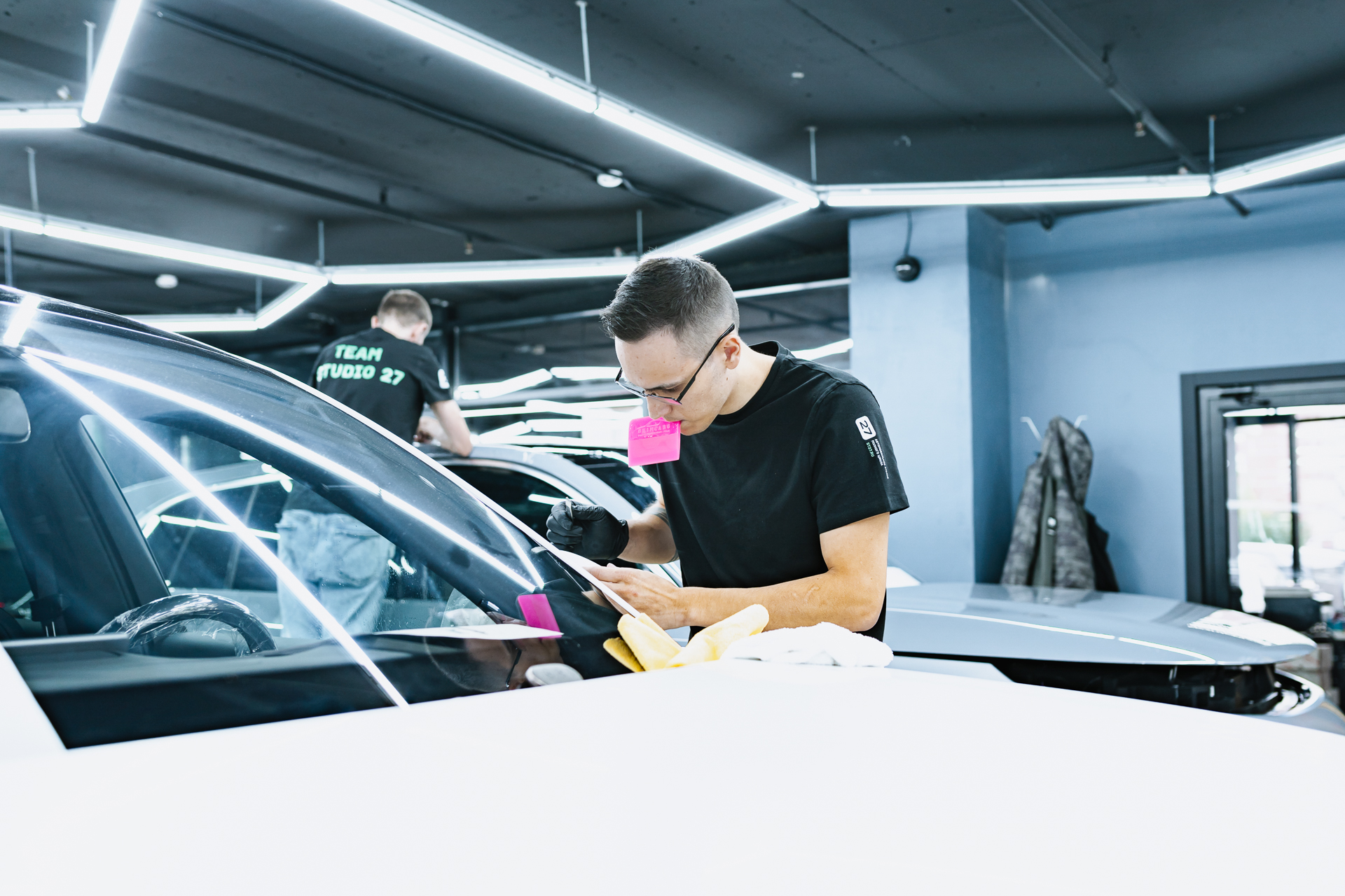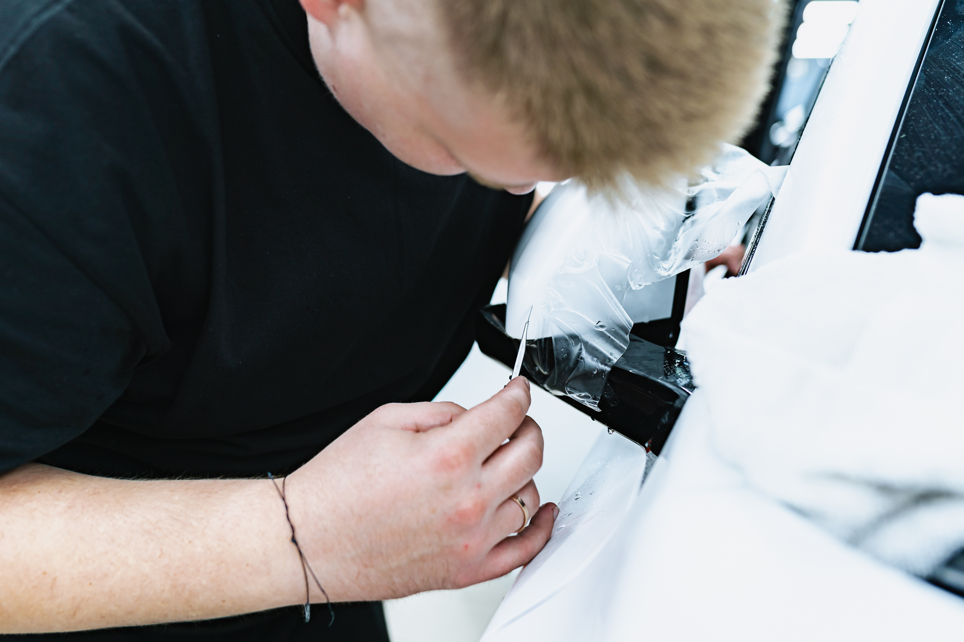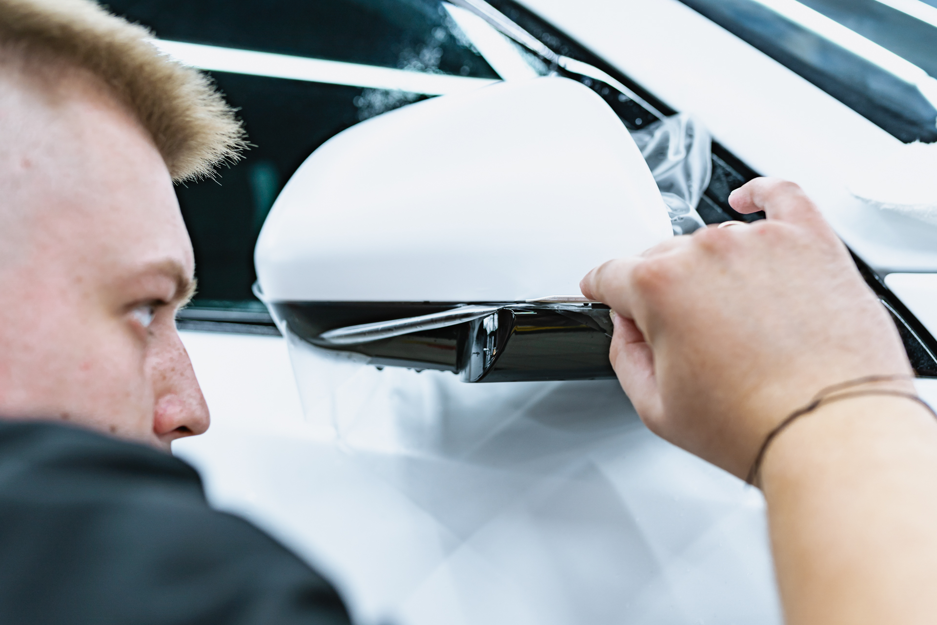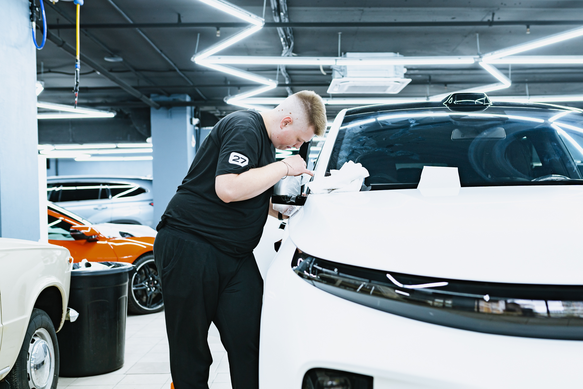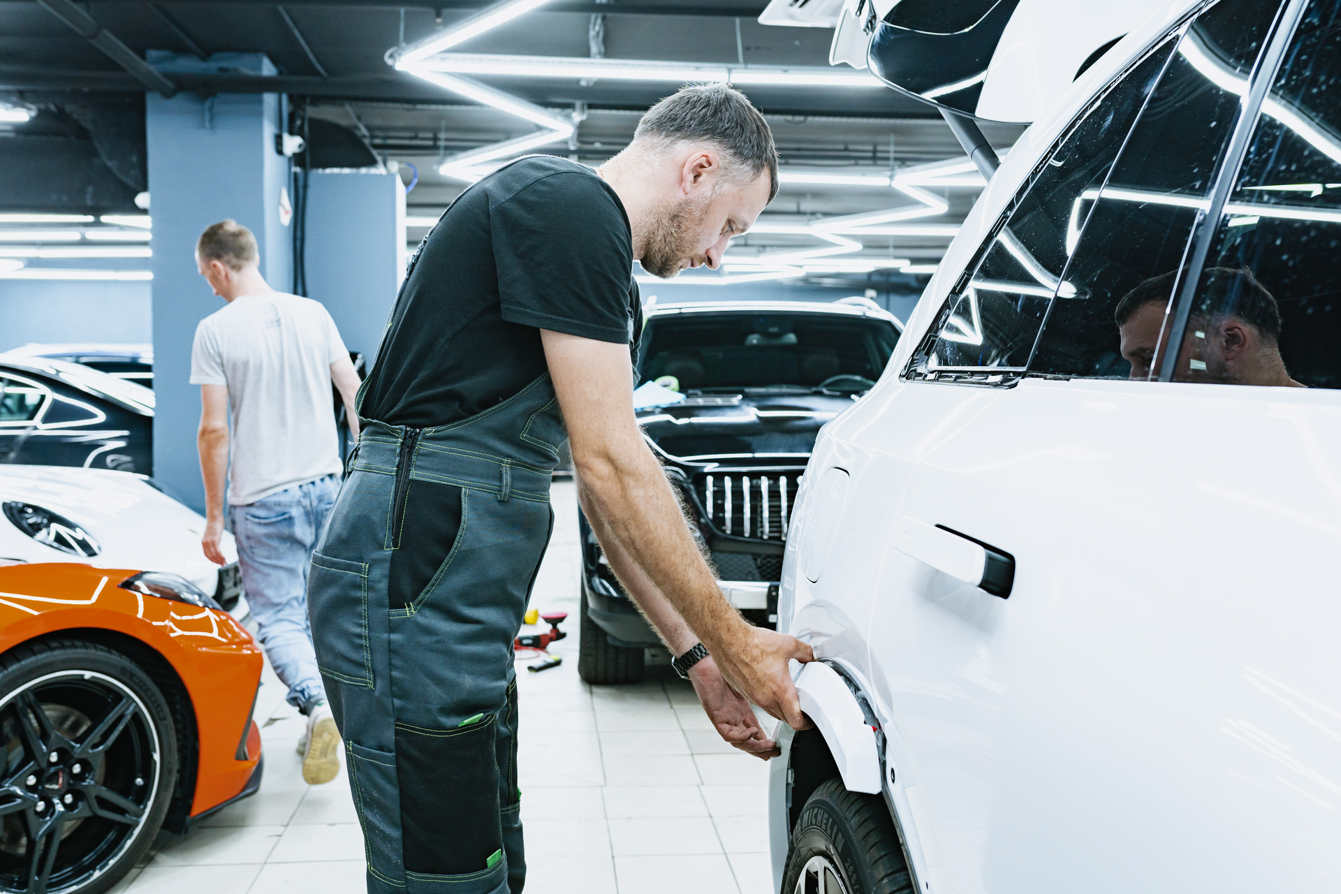 Полная оклейка Lixiang L7 матовым полиуретаном начинается с тщательной чистки и обезжиривания каждой детали кузова для идеальной адгезии. Мастер наносит на раскроенные фрагменты пленки мыльный раствор, после чего аккуратно растягивает материал по поверхности автомобиля, планомерно вытесняя жидкость и разглаживая заломы с помощью ракеля. Такая скрупулезная техника гарантирует отсутствие дефектов и максимально плотное прилегание защитного слоя. В результате автомобиль получает не только эффектный матовый финиш, но и долговечную броню, готовую к любым дорожным испытаниям. Контроль на каждом этапе монтажа позволяет добиться безупречного эстетического результата, сохраняя заводскую целостность кузова на долгие годы.
