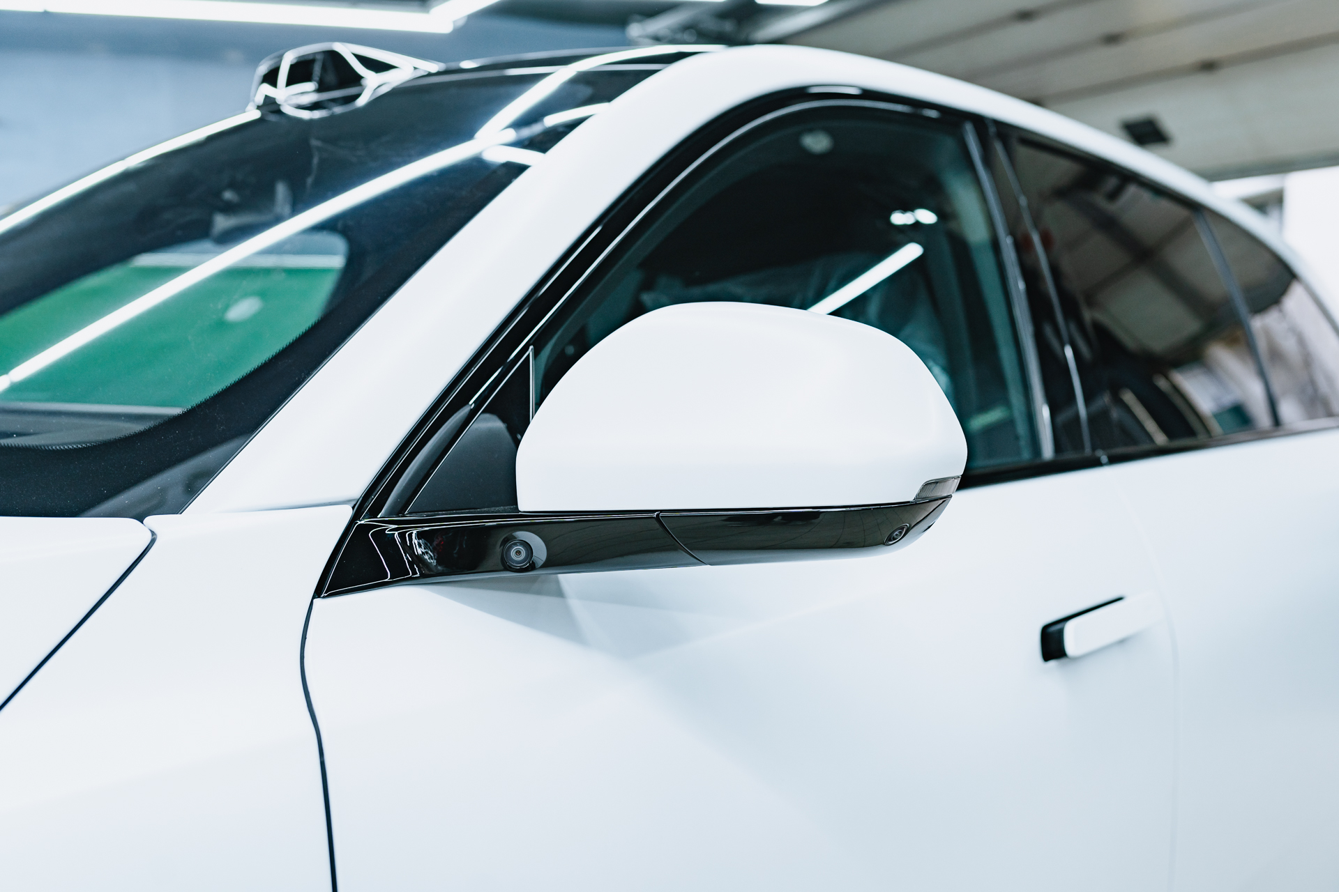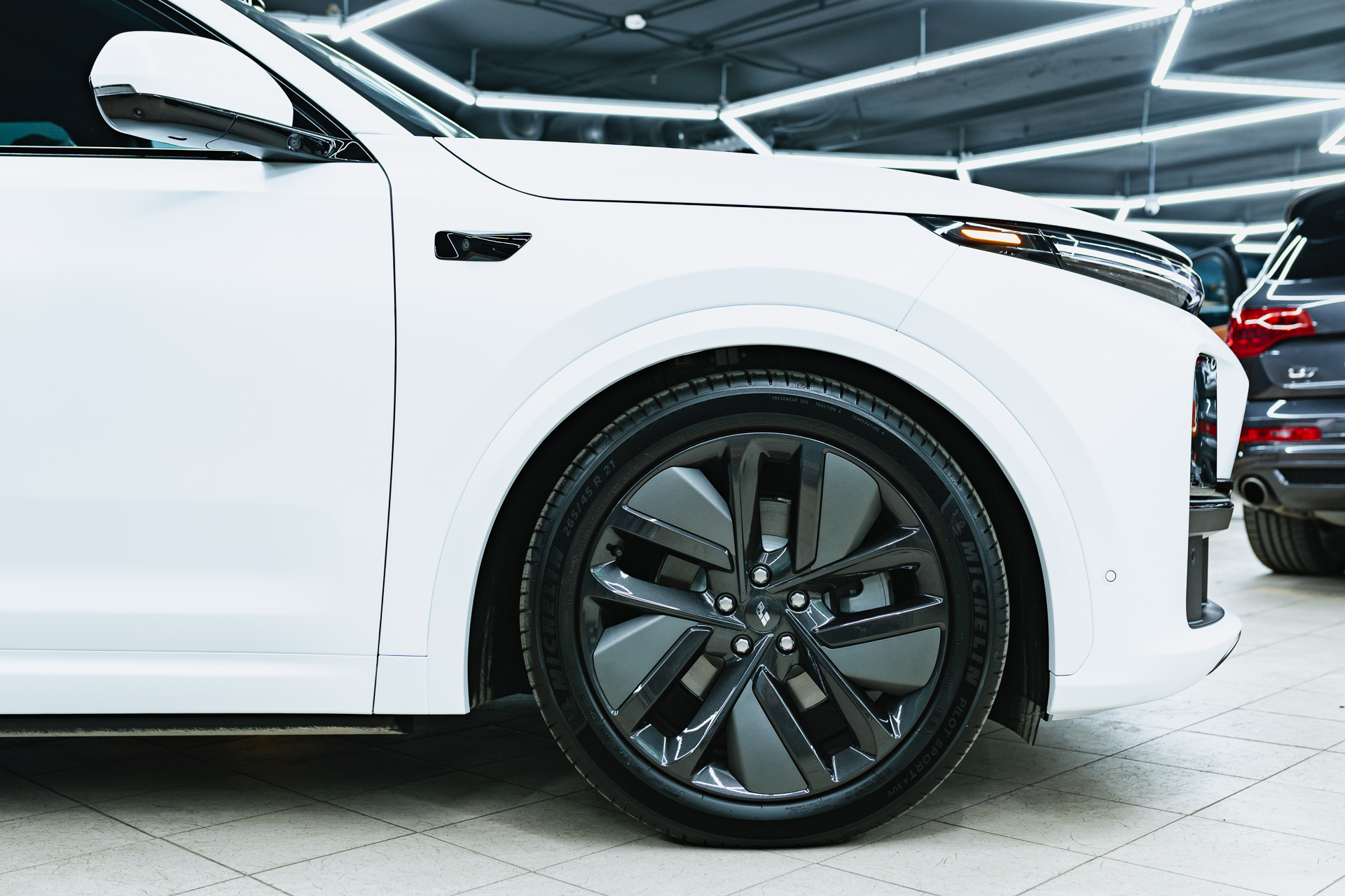 Помимо бронирования матовым полиуретаном, мы выполнили для Lixiang L7 процедуру антихрома, которая является популярным способом индивидуализации премиальных транспортных средств. Данная услуга подразумевает полное устранение хромированного напыления с молдингов, зеркал, шильдиков и других мелких деталей кузова. Хотя такая доработка не влияет на технические параметры, она превращает экстерьер в завершенное произведение искусства, придавая облику автомобиля исключительную строгость и характер. Профессиональный антихром декоративных элементов кузова в нашей студии позволяет владельцам люксовых моделей уйти от стандартных решений в сторону уникального стиля. В итоге сочетание белого кузова, матовой защиты и темных акцентов антихрома создает целостный, современный образ, подчеркивающий статус транспортного средства.