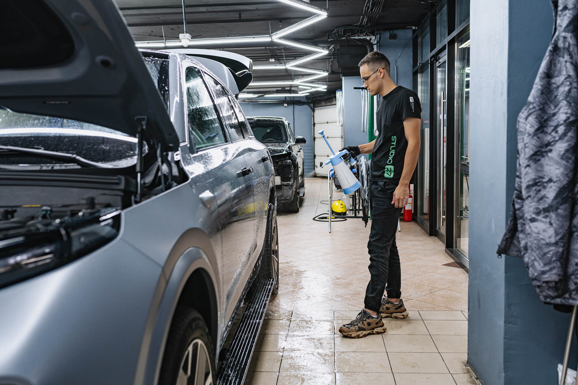 Мы уделяем большое внимание качеству предоставляемых услуг и в работе используем исключительно проверенные материалы, именно поэтому для защиты передней части кузова представленного автомобиля мы предложили нанести матовую полиуретановую плёнку Spectroll Premium Matte, толщина которой составляет около 210 микрон. Плёнка покроет весь кузов, и, безусловно, эта услуга имеет немалую стоимость, однако результат полностью оправдывает цену. Обычная китайская плёнка значительно тоньше и может привести к таким нежелательным последствиям, как пожелтение, отслаивание по краям и образование воздушных пузырей. Полиуретановая плёнка Спектролл полностью лишена этих критических недостатков; по информации от производителя, такая надежная защита способна прослужить от пяти до семи лет, при этом точный срок зависит от конкретных условий эксплуатации транспортного средства.