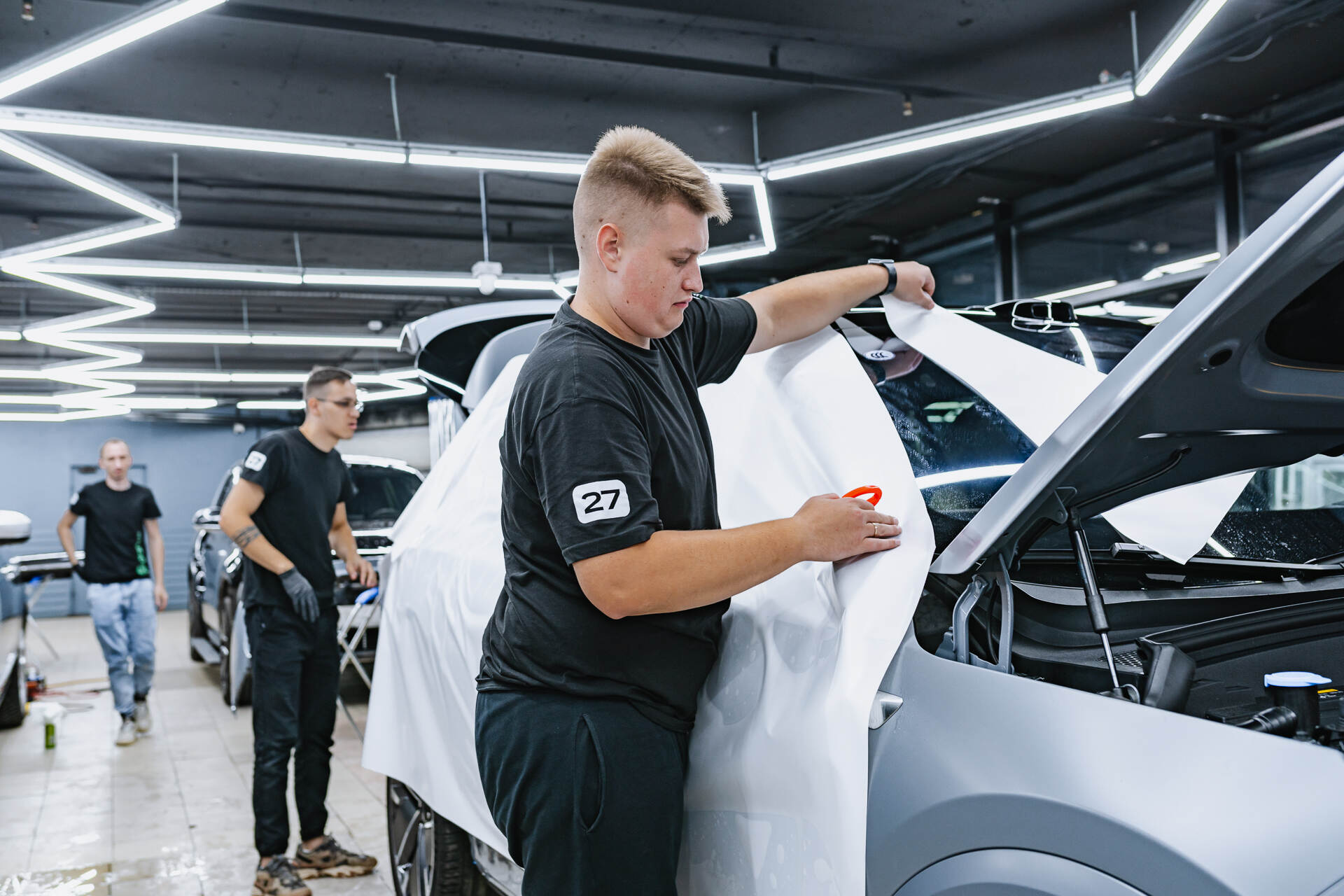 Следующим этапом проводим корректировку пленки лезвием – данная работа требует от мастера определенных навыков и большого опыта. Специалисты нашей автостудии способны быстро и, главное, качественно оклеить автомобиль, включая самые дорогие и эксклюзивные модели. Мы предоставляем полную гарантию на все выполненные работы, поэтому вы можете смело и уверенно обращаться к нам.