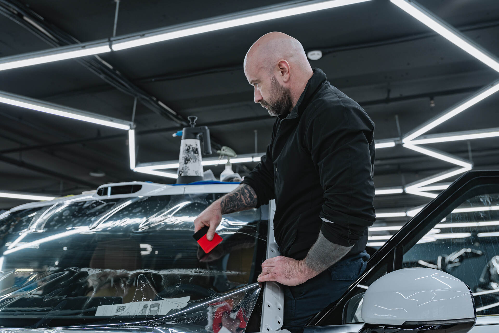На финальном этапе мастера с ювелирной точностью корректируют форму покрытия лезвием и прогревают стекло промышленным феном для окончательной фиксации материала. После завершения всех процедур обновленный Zeekr 9X полностью готов к эксплуатации. Защитный слой Spectroll Windshield остается абсолютно незаметным для невооруженного глаза, при этом он служит эффективным барьером против дорожного пескоструя и мелких сколов. Такая невидимая броня позволяет надолго сохранить безупречное состояние лобового стекла, избавляя владельца от лишних трат на дорогостоящий ремонт или замену.