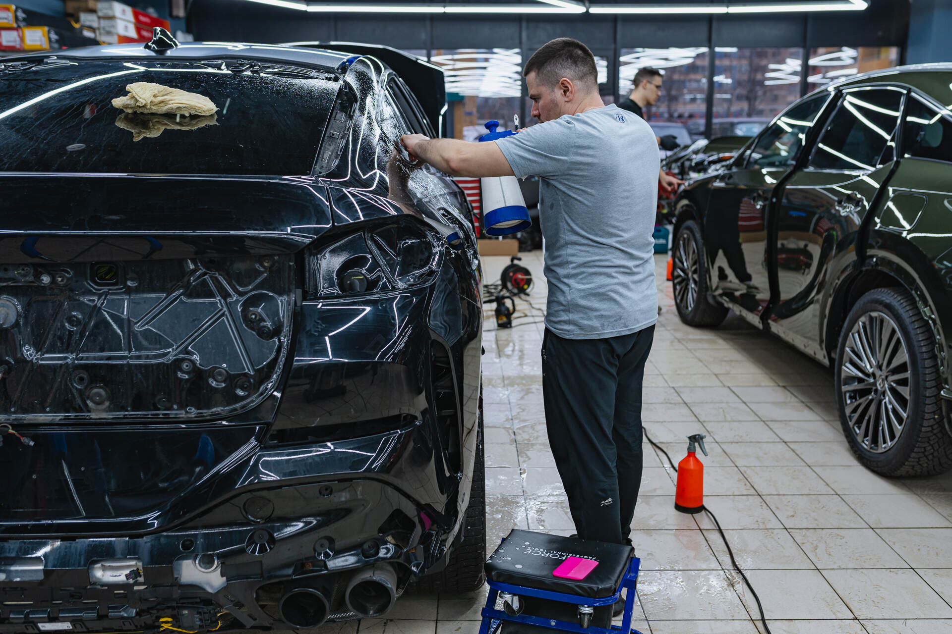Чистим и моем кузов перед бронированием пленкой.