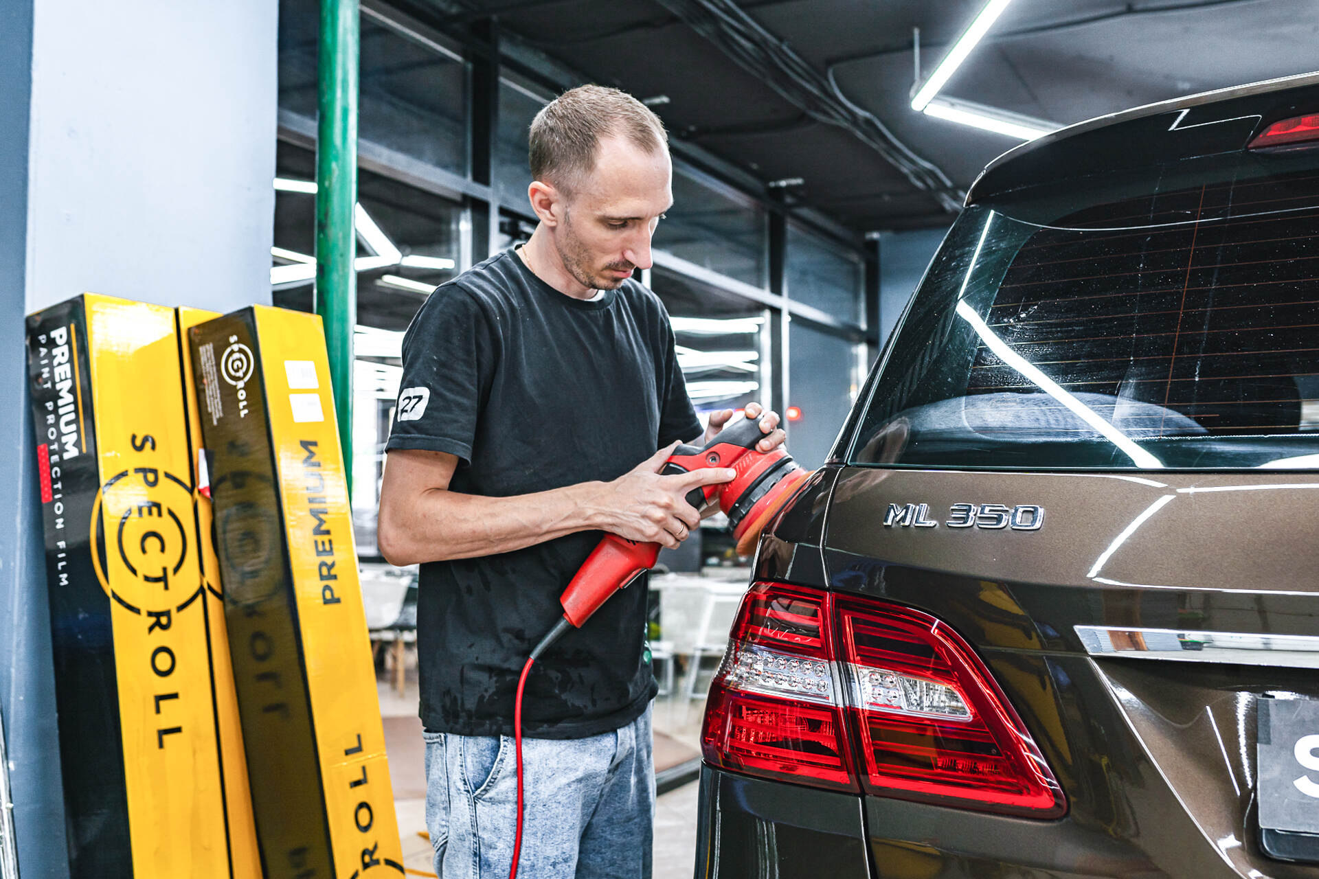 Перед началом полировочных работ Mercedes-Benz ML 166 проходит тщательную подготовку, включающую тщательную чистку и мойку. Процесс глубокого восстановления лакокрасочного покрытия занимает несколько часов — этого времени достаточно для полного устранения дефектов и возвращения кузову первоначальных характеристик. Ключевыми факторами успеха являются профессионализм исполнителей и внимание к деталям. Наши специалисты обладают огромным опытом и высокой квалификацией, что подтверждается официальными гарантийными обязательствами от нашей студии. В процессе полировки кузова мы последовательно работаем со всеми элементами — от крупных плоскостей капота и крыши до сложных деталей дверных панелей, зеркал и стоек.