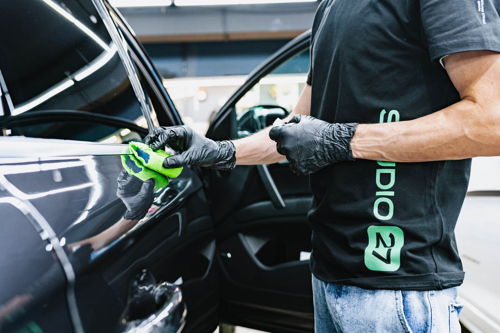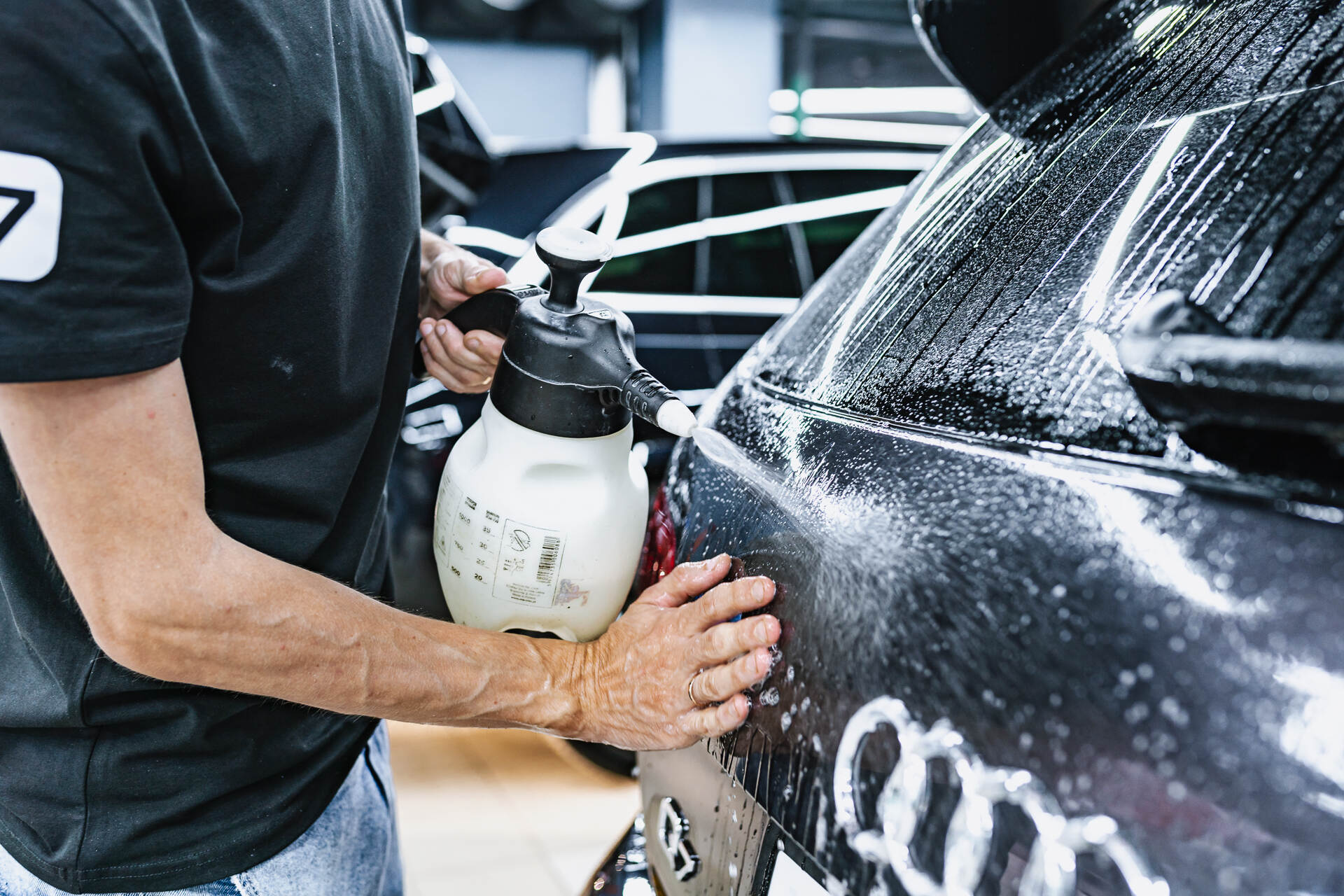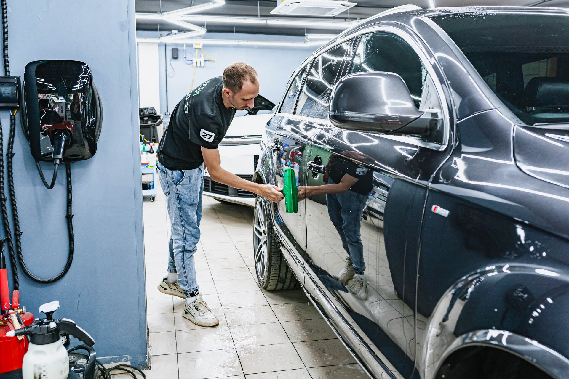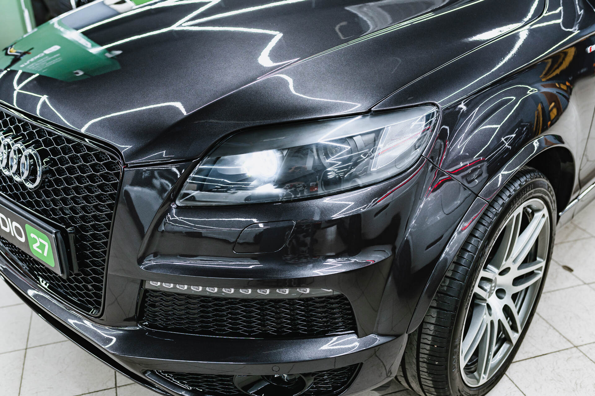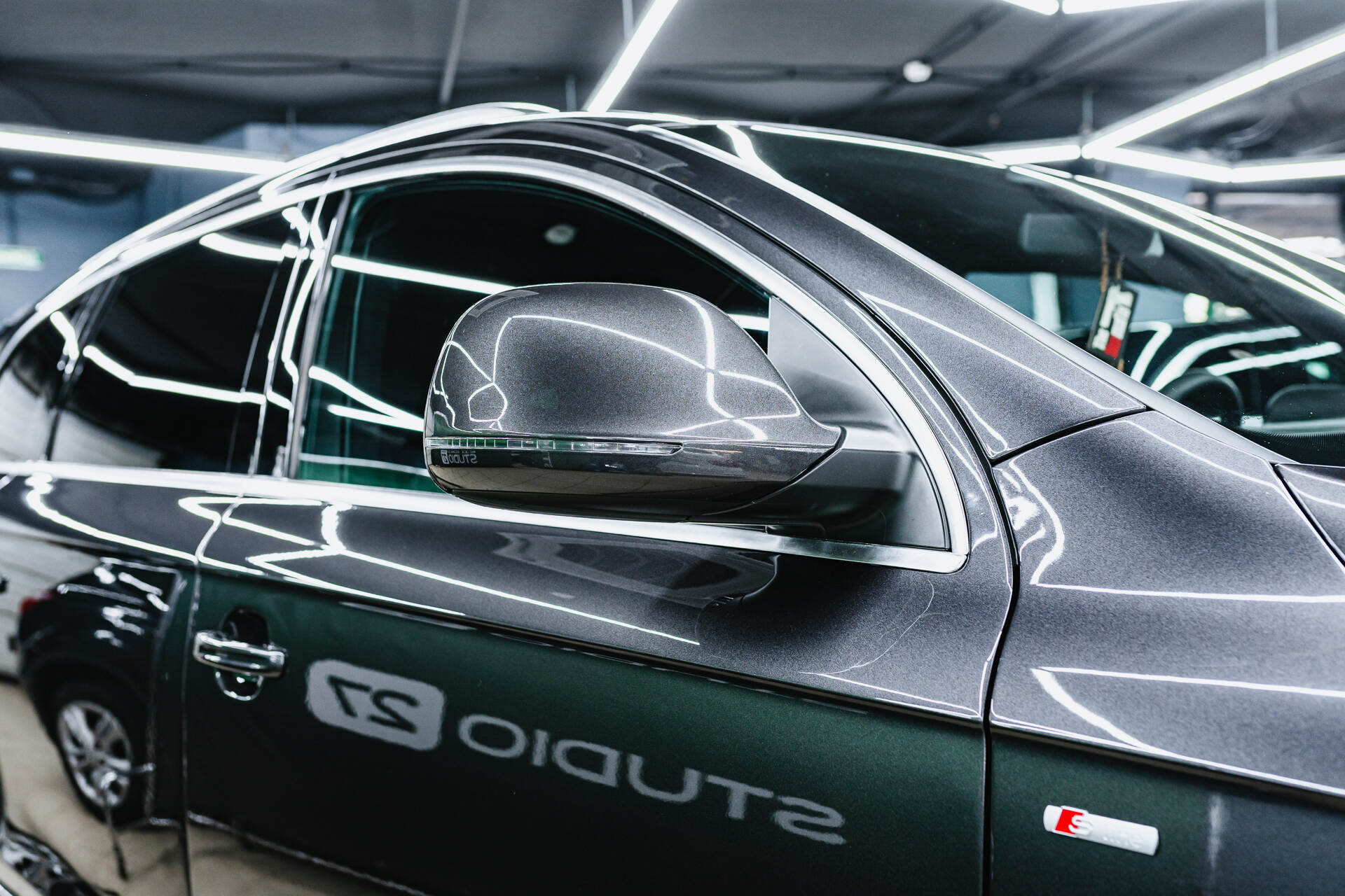 Нанесение керамического покрытия на Audi Q7 после полировки создает комплексную защиту от абразивных частиц, атмосферных осадков, дорожных реагентов, а также предотвращает выцветание краски и развитие коррозии. Практическая значимость такой обработки очевидна: после полировки кузов становится более уязвимым к воздействию песка, щебня и дорожной грязи, что неминуемо приводит к образованию микроцарапин и матовых участков. Керамическое покрытие формирует на поверхности прочный прозрачный слой, по характеристикам сопоставимый с закаленным стеклом, который надежно оберегает лакокрасочное покрытие от механических повреждений и помогает сохранить его первоначальное состояние.