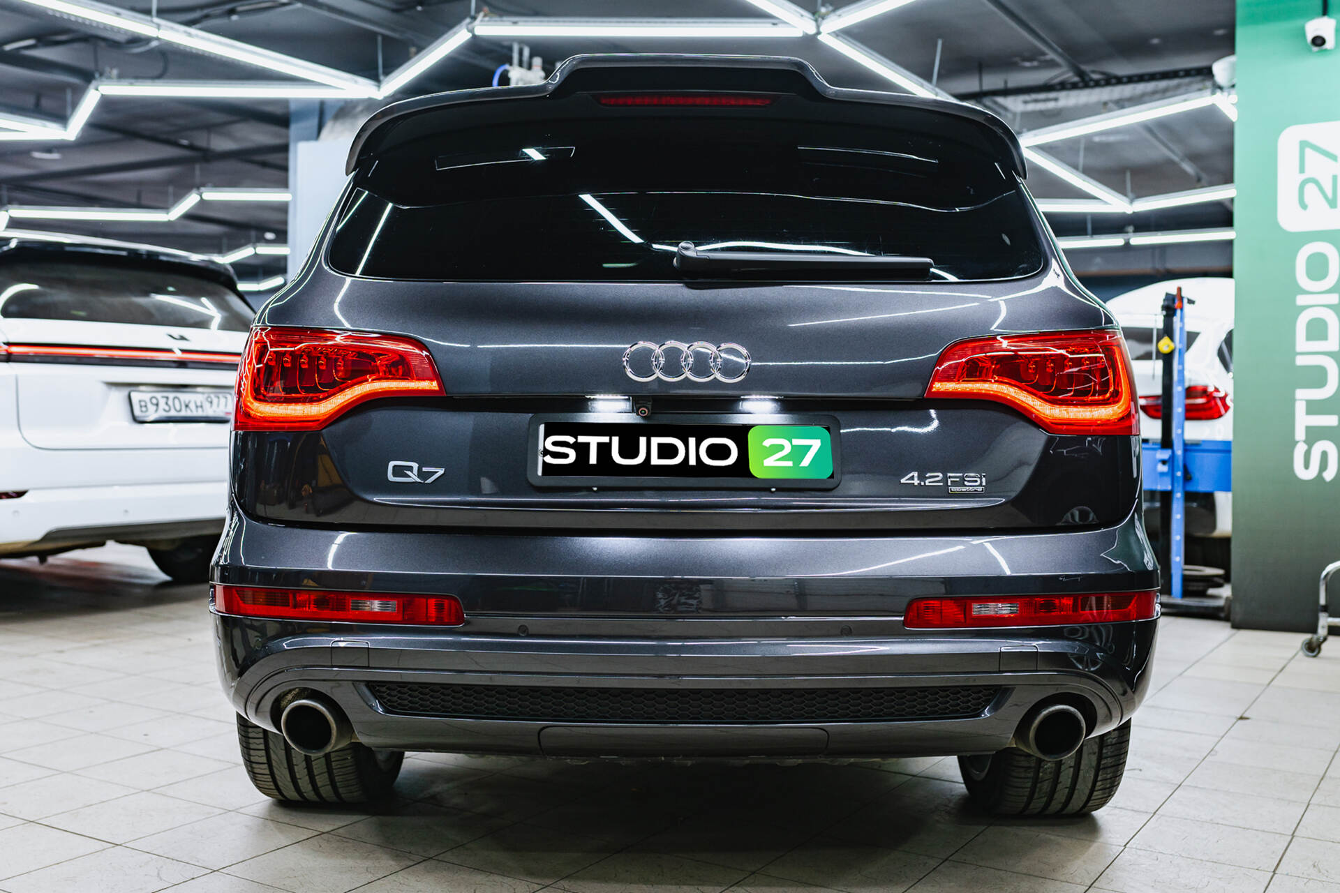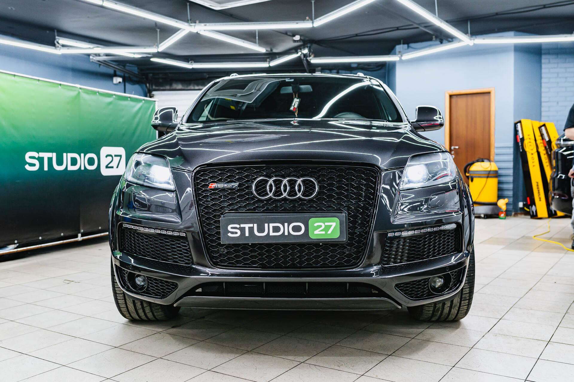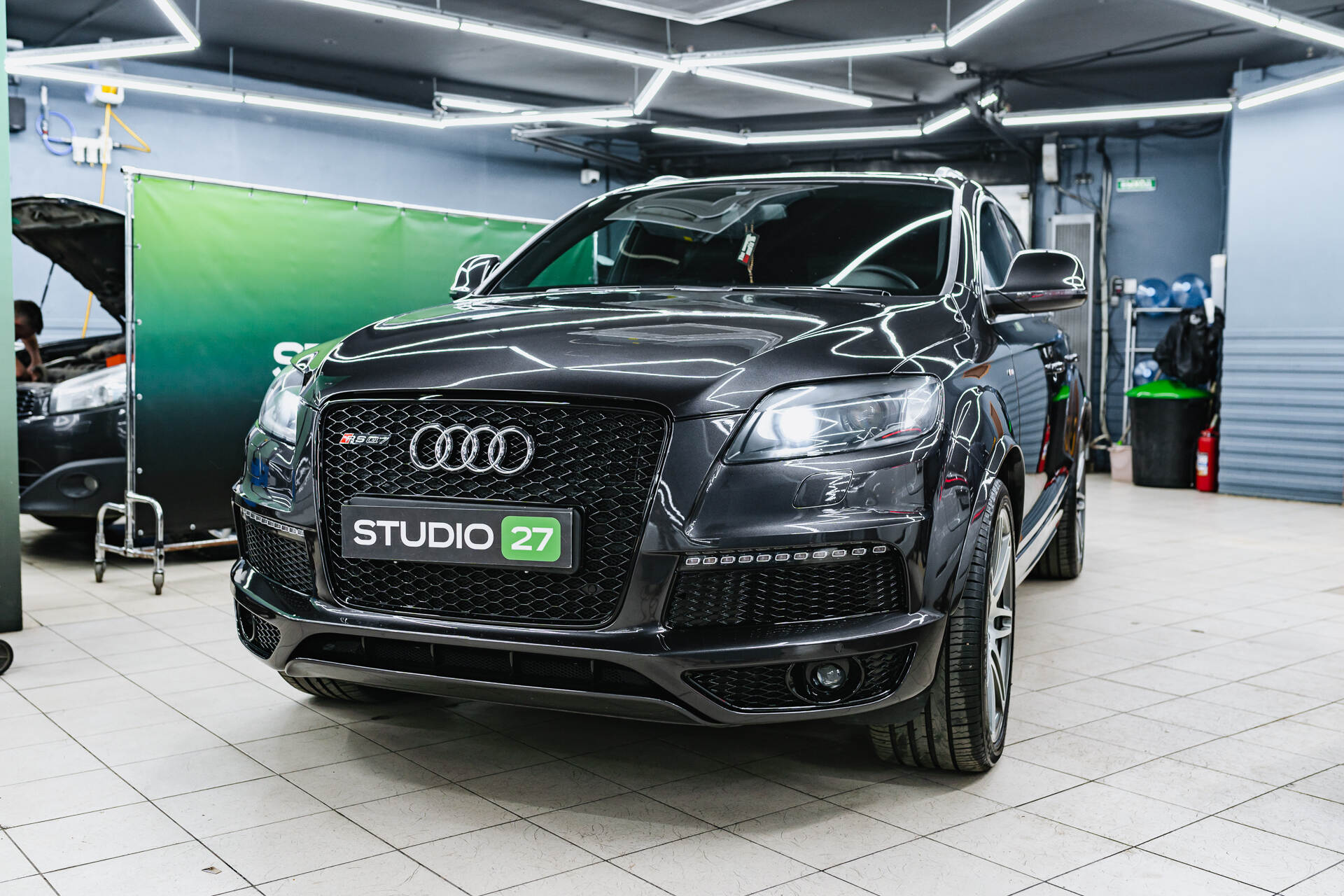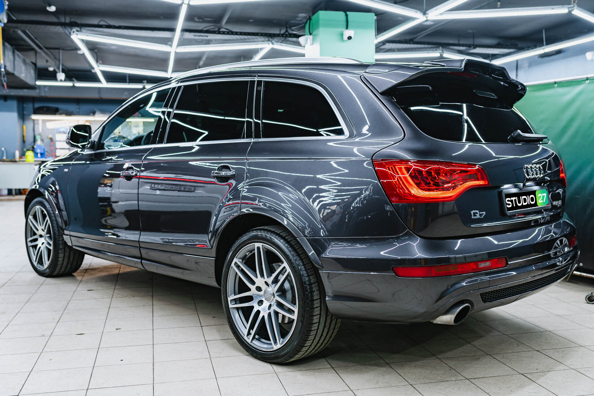 Премиальный, красивый и, конечно, имиджевый автомобиль требует особого ухода, чтобы демонстрировать безукоризненное лакокрасочное покрытие с безупречным блеском. Это в полной мере относится к Audi Q7 в сером цвете, чей кузов в процессе эксплуатации покрылся типичными мелкими повреждениями от дорожных реагентов и абразивных частиц. Подобные поверхностные дефекты — естественный процесс для любого транспортного средства, возникающий порой уже в начальный период эксплуатации. Профессиональная полировка успешно устраняет большинство поверхностных царапин и потертостей, восстанавливая глубину оттенка и насыщенный глянец. Дополнительно такая обработка формирует идеальную поверхность для последующего нанесения керамической защиты, что также будет выполнено в рамках данного комплексного обслуживания авто.