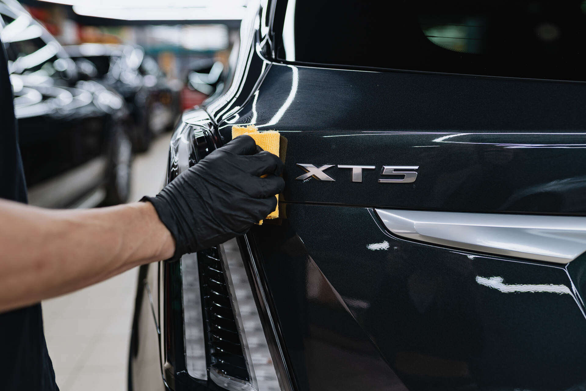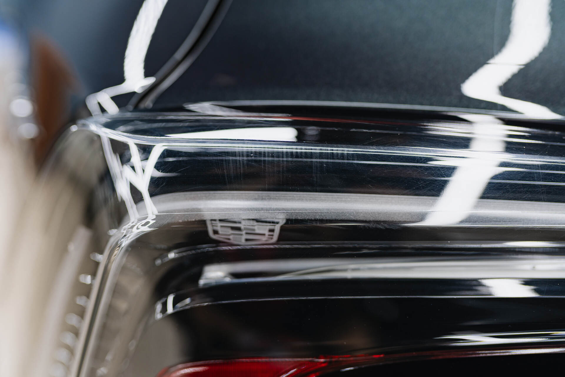После полного завершения полировки мы немедленно приступаем к нанесению керамического покрытия на Cadillac XT5. В состав этого покрытия добавлен оксид титана, который существенно повышает термостойкость обработанной поверхности и обеспечивает надежную защиту от ультрафиолетового излучения. Другие компоненты в составе работают на создание прочной защитной пленки, которая эффективно предотвращает окисление лакокрасочного покрытия. Они заметно усиливают устойчивость кузова к абразивным воздействиям, активно отталкивая при этом грязь и воду. Но самым впечатляющим результатом является кардинальное преображение внешнего вида. Разница между кузовом до и после обработки всегда поражает наших клиентов: поверхность начинает буквально играть бликами, приобретая ту глубину и насыщенность, которые невозможно получить при обычной полировке. Свет отражается совершенно по-новому, подчеркивая безупречное состояние буквально каждого элемента кузова.