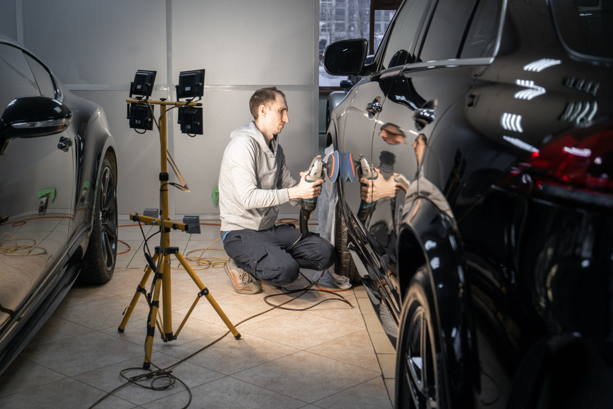 Наша детейлинг-студия оказывает полный спектр услуг по реставрации кузовов автомобилей, включая профессиональную полировку. Мы предлагаем различные варианты полировки кузова: от деликатной косметической коррекции блеска до масштабного восстановительного процесса, направленного на ликвидацию серьезных изъянов лакокрасочного слоя. В ходе повседневных поездок машина неизбежно сталкивается с внешним воздействием пескоструя и иного мусора, а также механические удары от вылетающих камней и щебенки, оставляющих заметные царапины. Общее состояние поверхности кузова также планомерно ухудшается под влиянием агрессивных химических составов, используемых против гололеда, регулярных бесконтактных моек с сильной щелочью и прочих техногенных факторов, которые лишают краску былой глубины и чистоты.