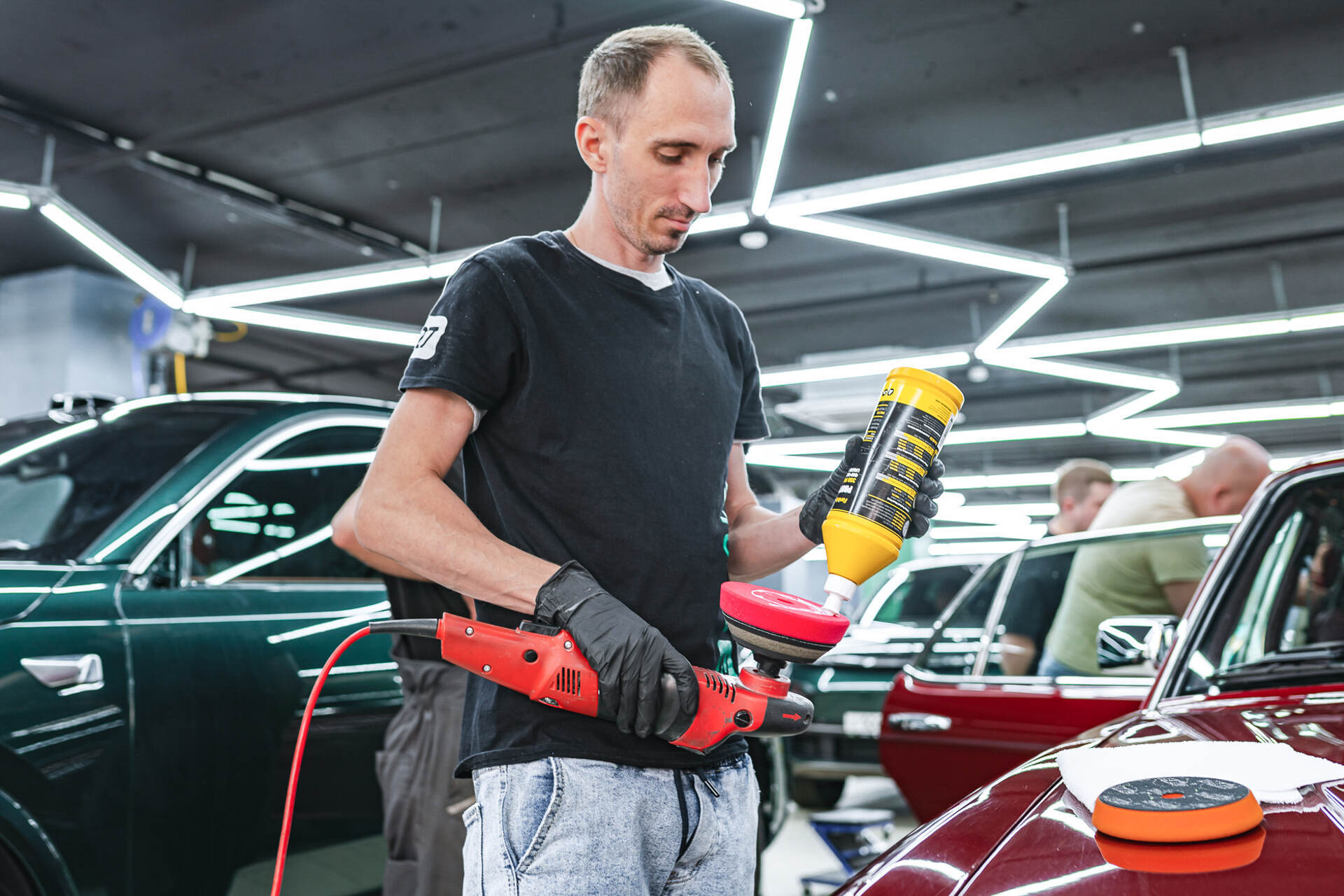 На этапе подготовки кузов тщательно очищается от дорожных загрязнений, пылевых наслоений, битумных пятен, следов птичьего помета, древесных смол и других видов органики. Процесс шлифовки обеспечивает удаление поврежденного лакового слоя и выравнивание микрорельефа поверхности. Финальная полировка эффективно заполняет микротрещины, создает идеально гладкое покрытие с насыщенным глянцем, кардинально преображая внешний вид автомобиля и восстанавливая его презентабельный облик.