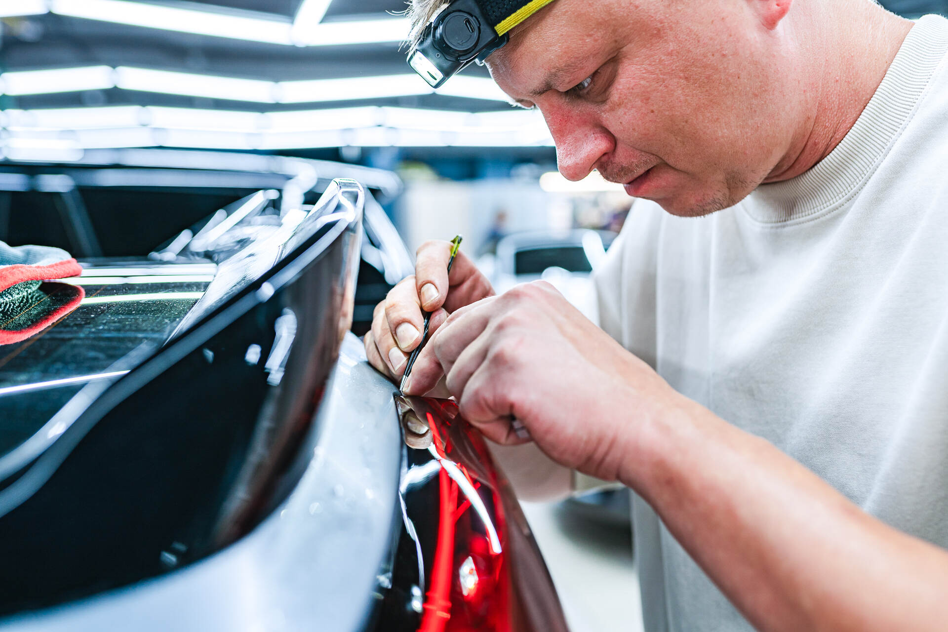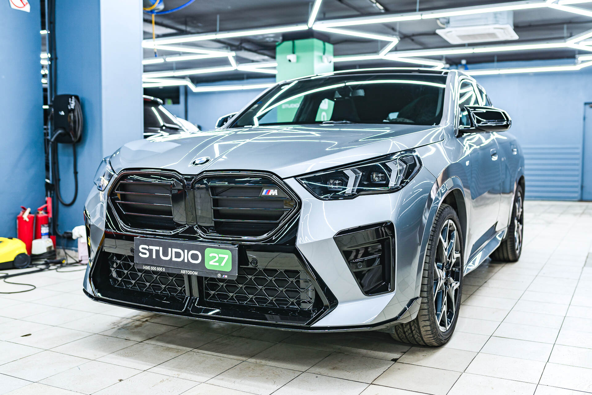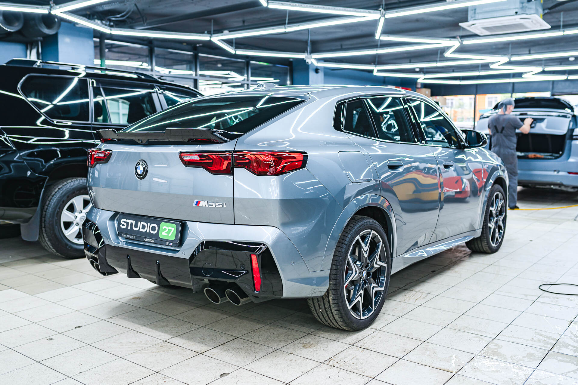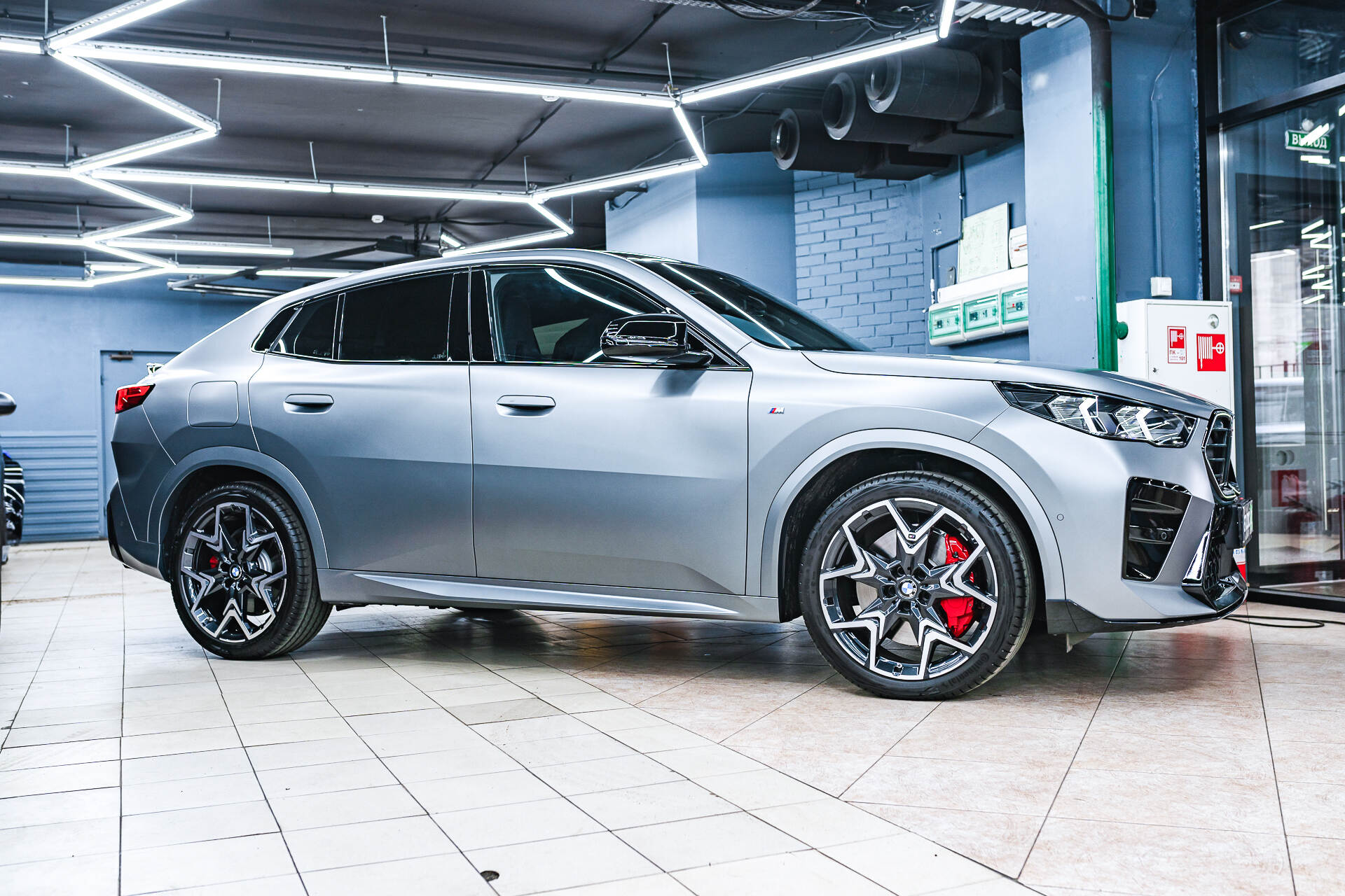 Нанесение бронеплёнки выполняется на увлажненную поверхность кузова с последующим удалением воздуха и жидкости пластиковым ракелем, что обеспечивает безупречное прилегание материала без его деформаций. В результате матовая пленка образует целостное покрытие, становясь защитным слоем для BMW X2; такое решение не только предохраняет лакокрасочное покрытие от сколов, царапин и ультрафиолета, но и подчеркивает статус владельца через демонстрацию ответственного отношения к автомобилю. Матовая полиуретановая плёнка сохраняет глубину заводского цвета, придавая кузову современную матовую текстуру.