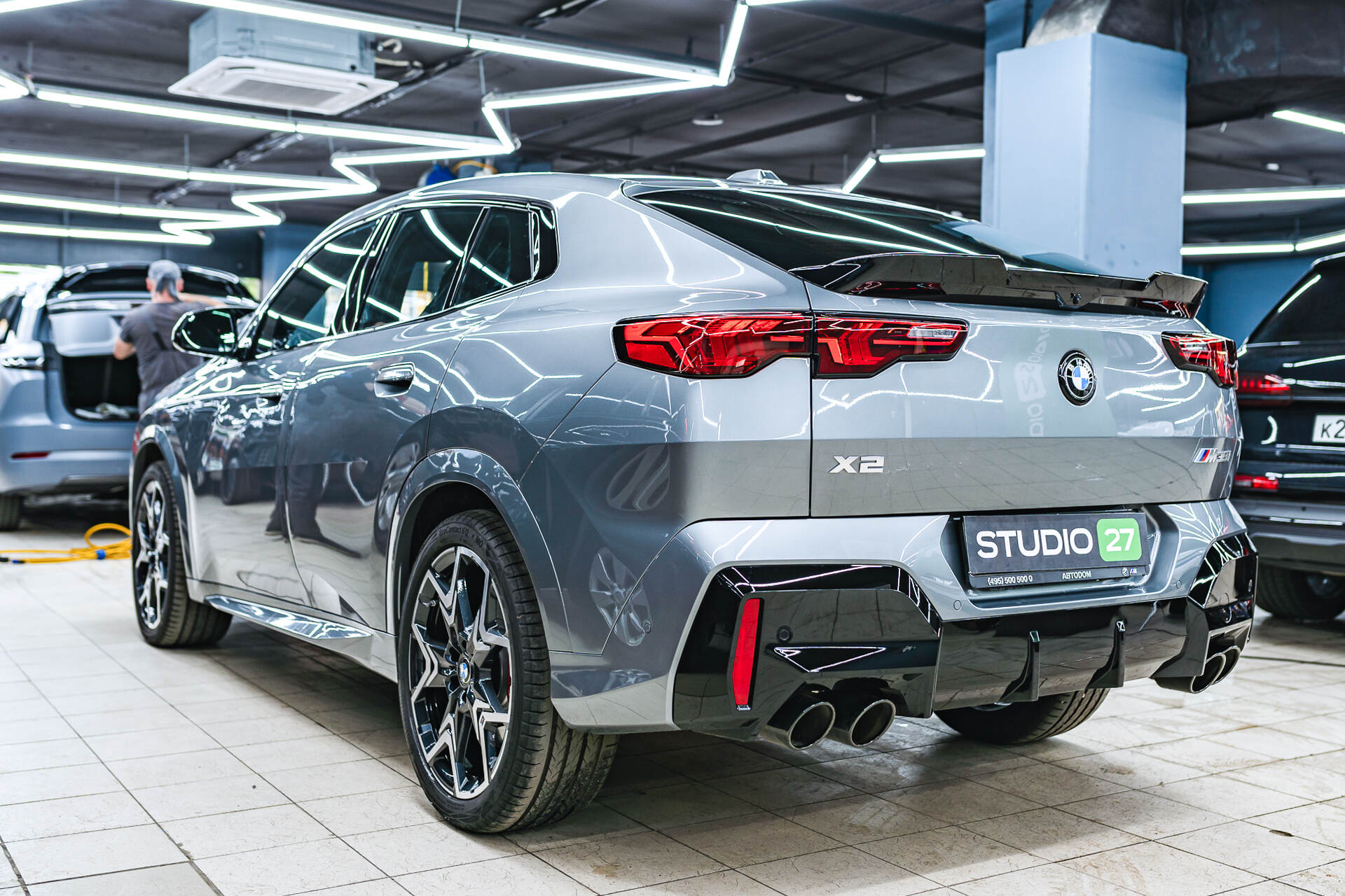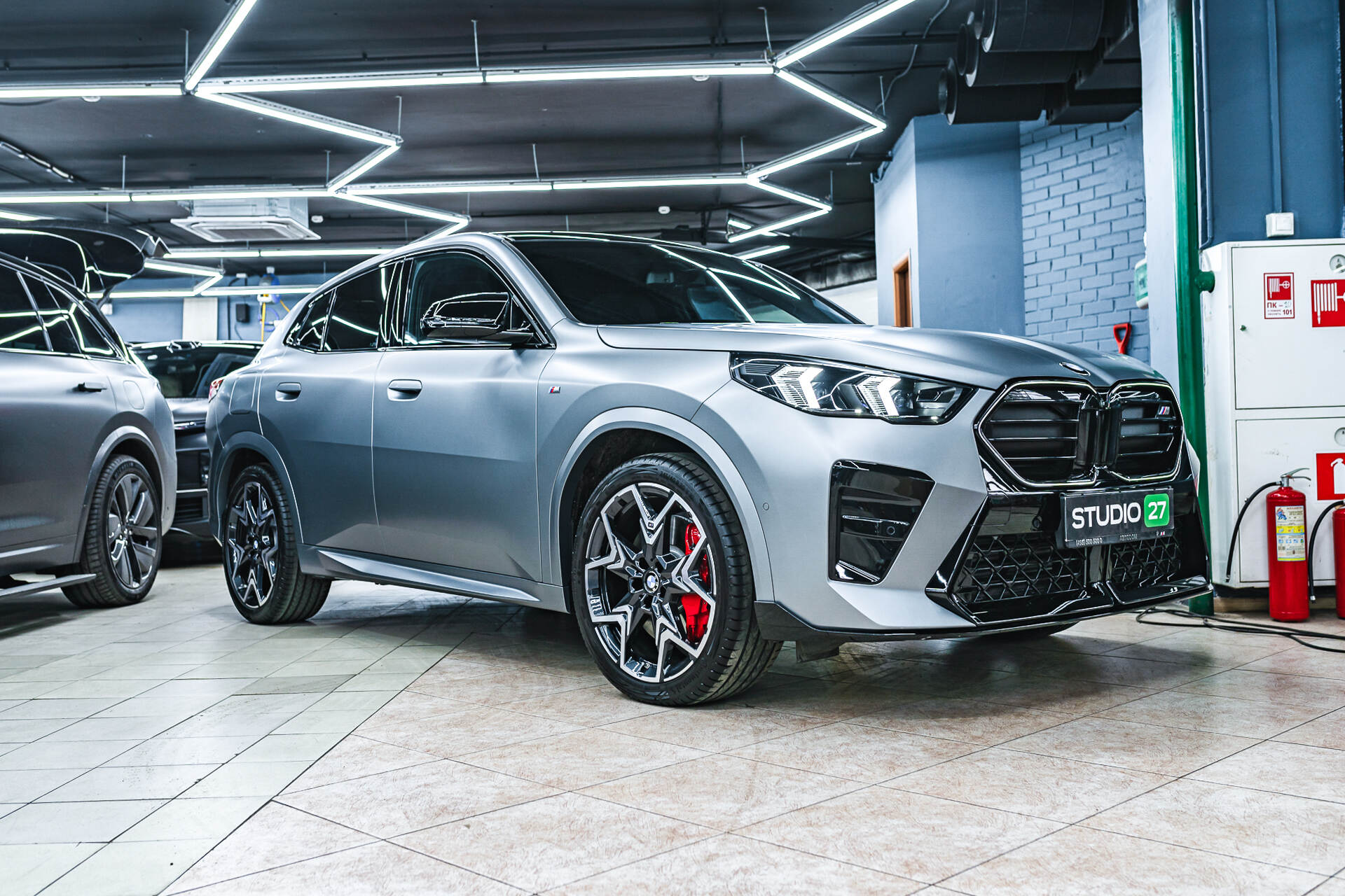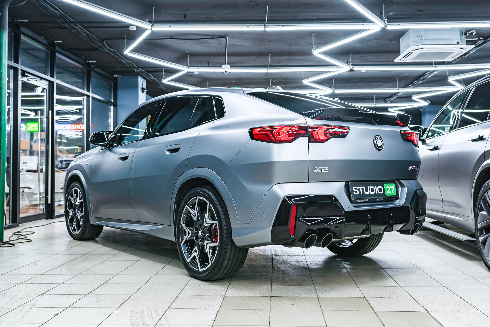 Владелец новенького и современного кроссовера BMW X2 обратился в нашу автостудию для полной оклейки кузова матовой защитной пленкой. Целью стала комплексная защита лакокрасочного покрытия от абразивного воздействия пескоструя, щебня и других внешних механических факторов, неизбежных при эксплуатации. Со временем на наиболее уязвимых участках кузова — бамперах, порогах и колесных арках — закономерно появляются сколы и царапины. Для автомобиля это становится серьезной эстетической проблемой: каждый дефект особенно заметен на глянцевой поверхности, что не только ухудшает внешний вид, но и снижает рыночную стоимость при возможной продаже. Матовая защитная пленка становится оптимальным решением: она не только скрывает существующие микроповреждения, но и создает эффективный барьер против новых. Это долгосрочная инвестиция в безупречный внешний вид и сохранение статусности автомобиля, который даже после значительного пробега будет выглядеть, как только что приобретенный в салоне.