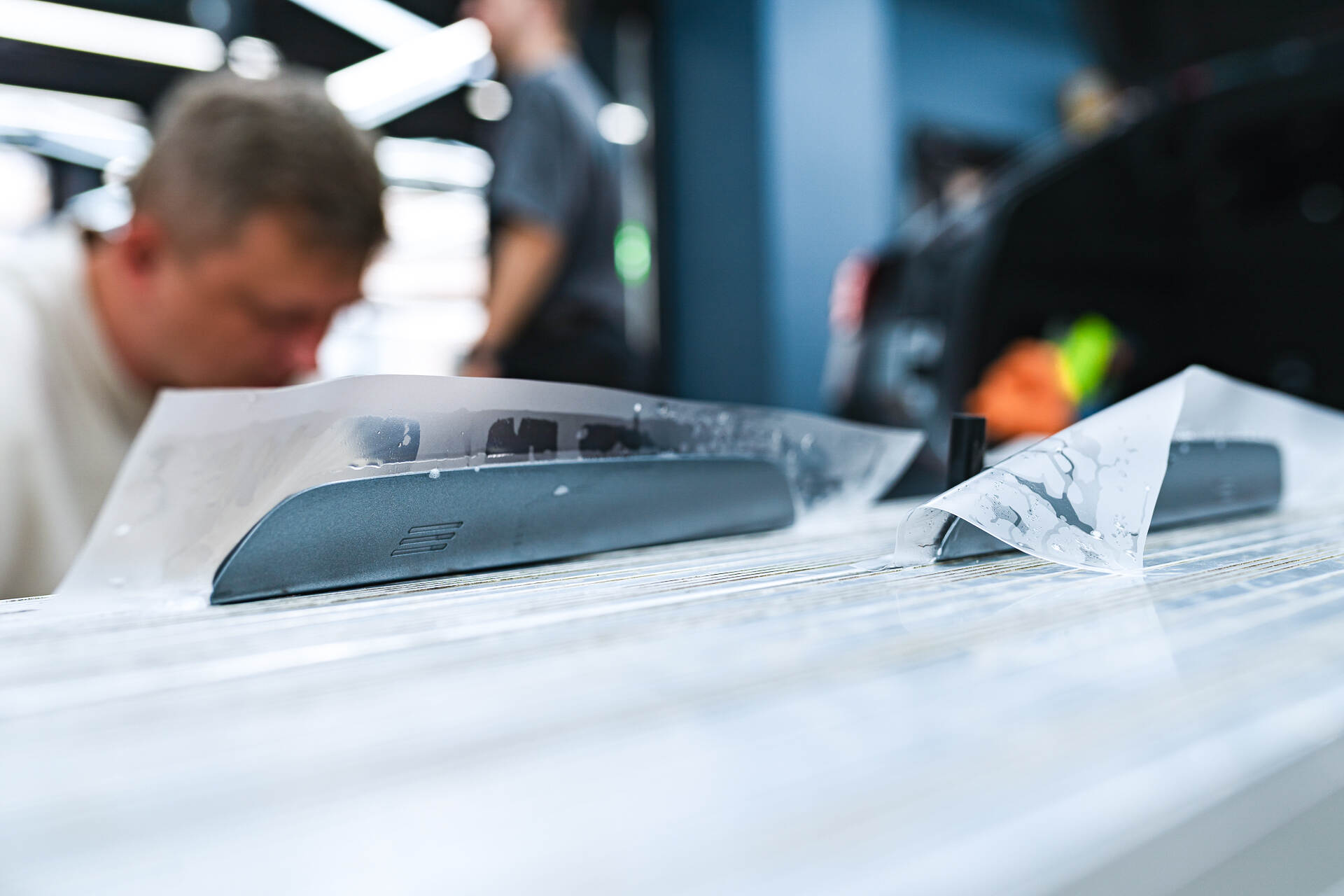 Для BMW X2 мы предложили матовую полиуретановую пленку Spectroll Premium Matte толщиной 210 микрон – данный материал обеспечивает достойную защиту кузова от повседневных механических воздействий — царапин и потертостей от пескоструя, сколов от щебня и гравия. Хотя покрытие не способно противостоять серьезным ударам при ДТП, для стандартных условий эксплуатации оно демонстрирует идеальное сочетание защитных свойств и эстетики.