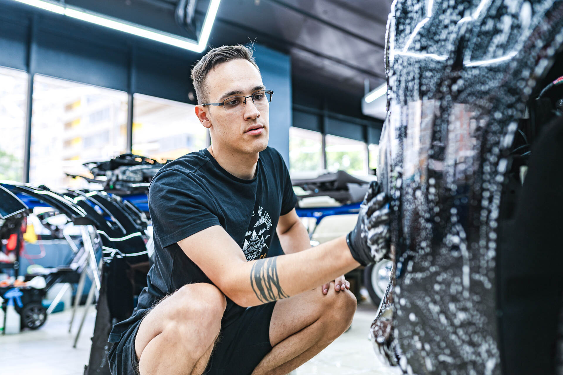 Моем автомобиль перед бронированием кузова.