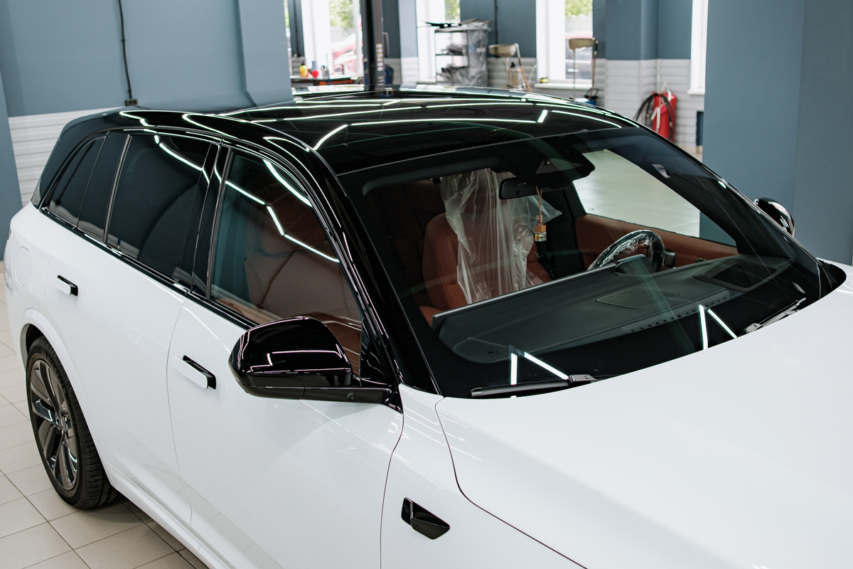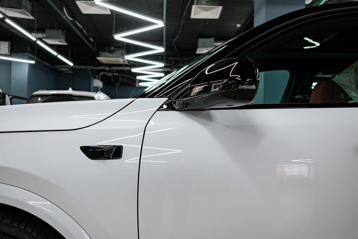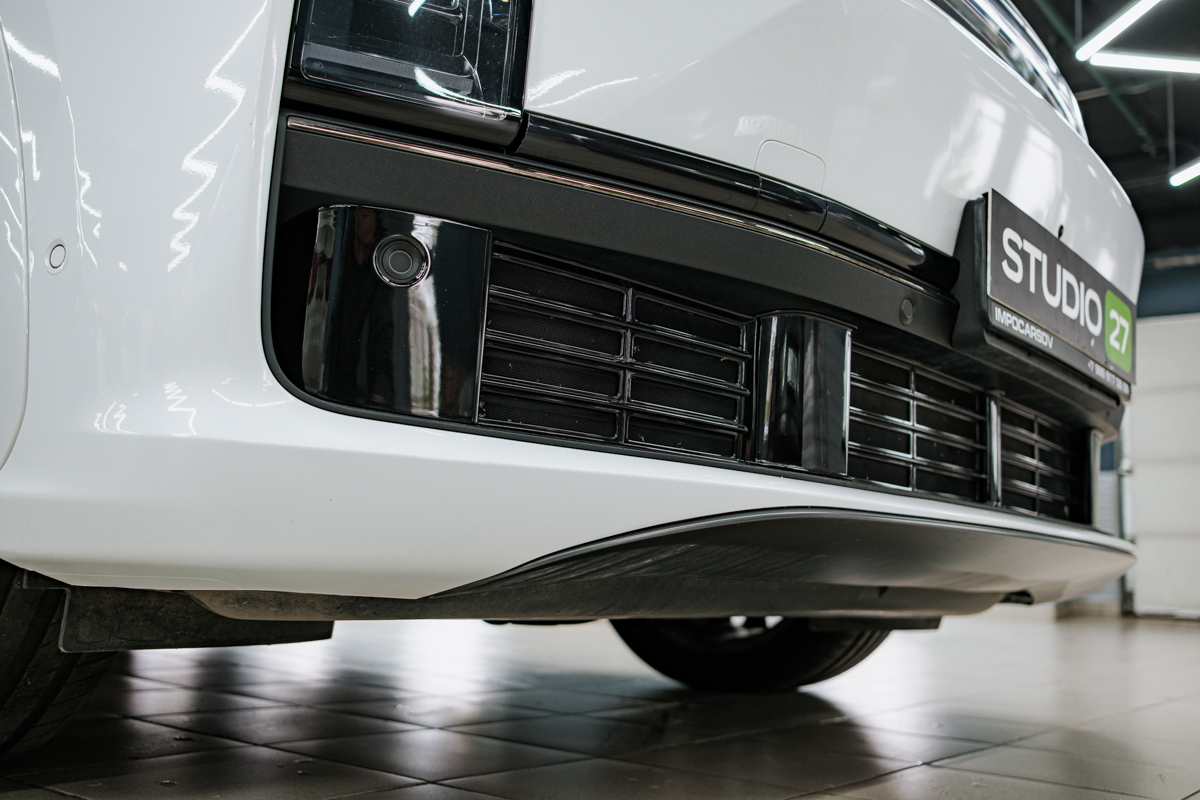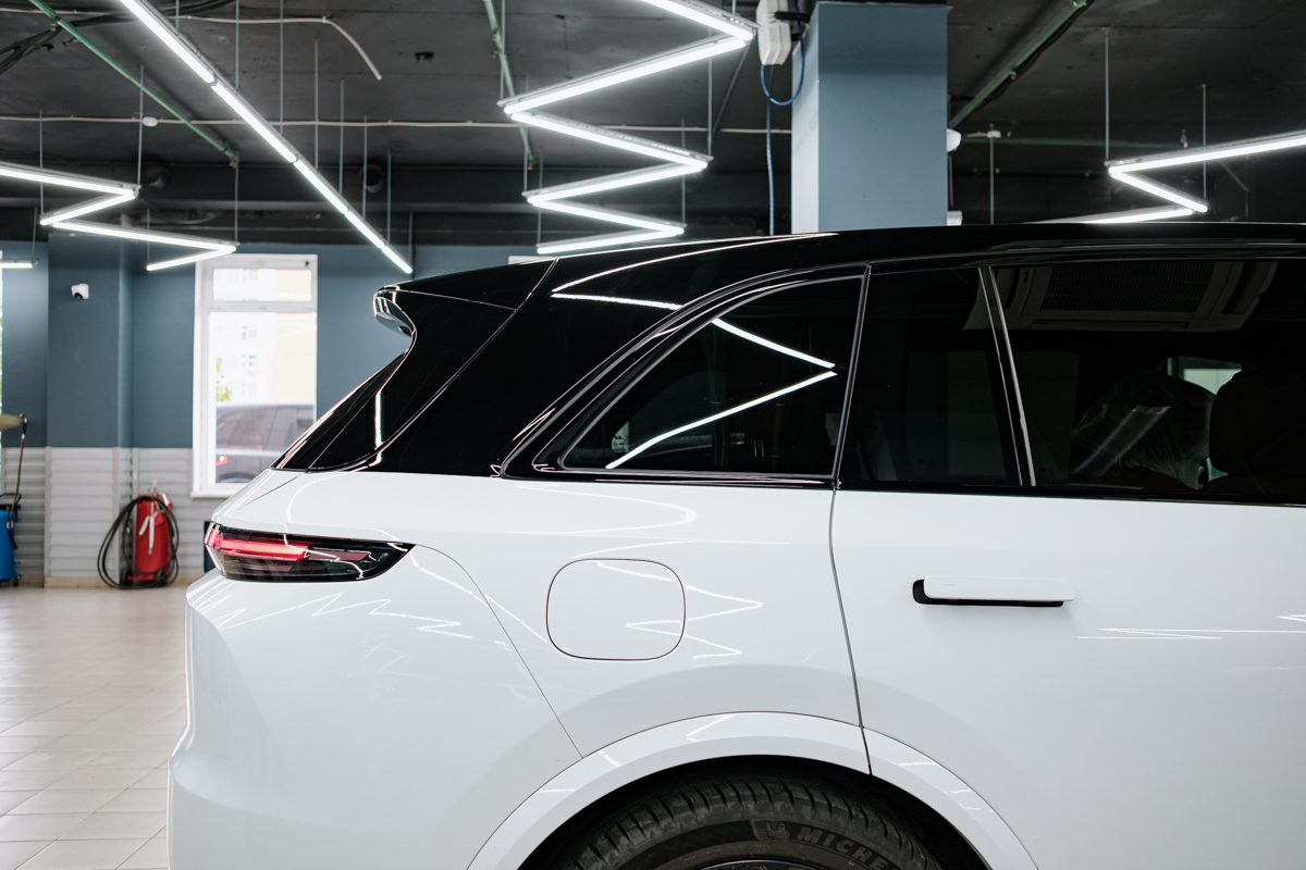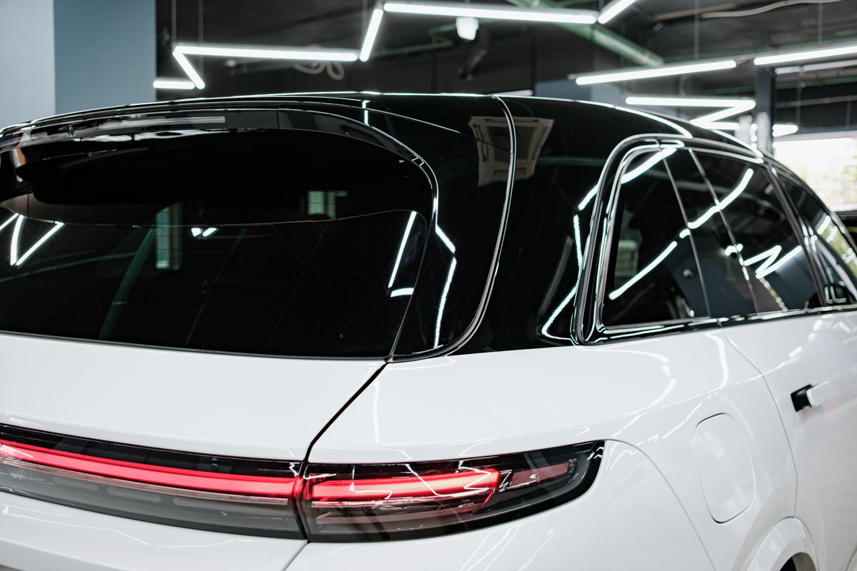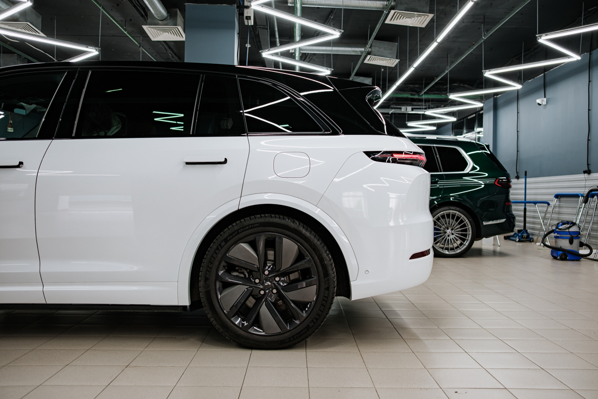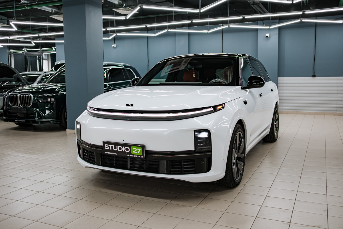 В данном материале мы расскажем, как в нашу детейлинг-студию поступил новенький премиальный китайский внедорожник Lixiang L7, чтобы сохранить безупречный вид лакокрасочного покрытия полной оклейкой кузова защитной полиуретановой пленкой. Причем нижнюю часть кузова мы оклеим прозрачной глянцевой плёнкой, а верхнюю – чёрной, чтобы подчеркнуть контраст. Процедура бронирования кузова предотвращает появление царапин и потертостей от пескоструя и мелкого гравия, которые неизбежно атакуют «отбойную часть» автомобиля на дороге. Для статусного автомобиля уровня Lixiang такая протекция становится необходимой инвестицией, позволяющей поддерживать состояние нового авто в течение долгого времени.