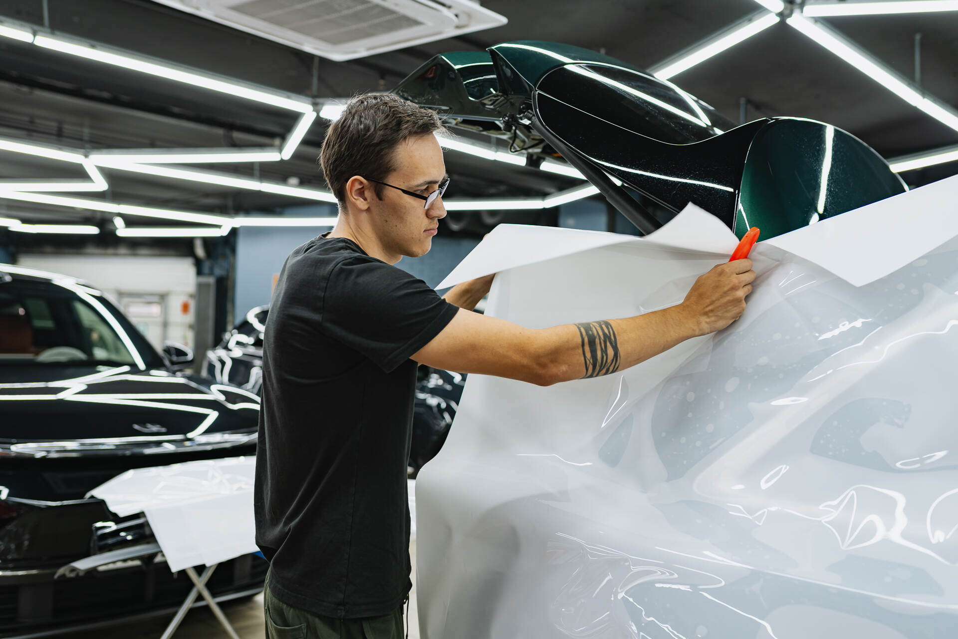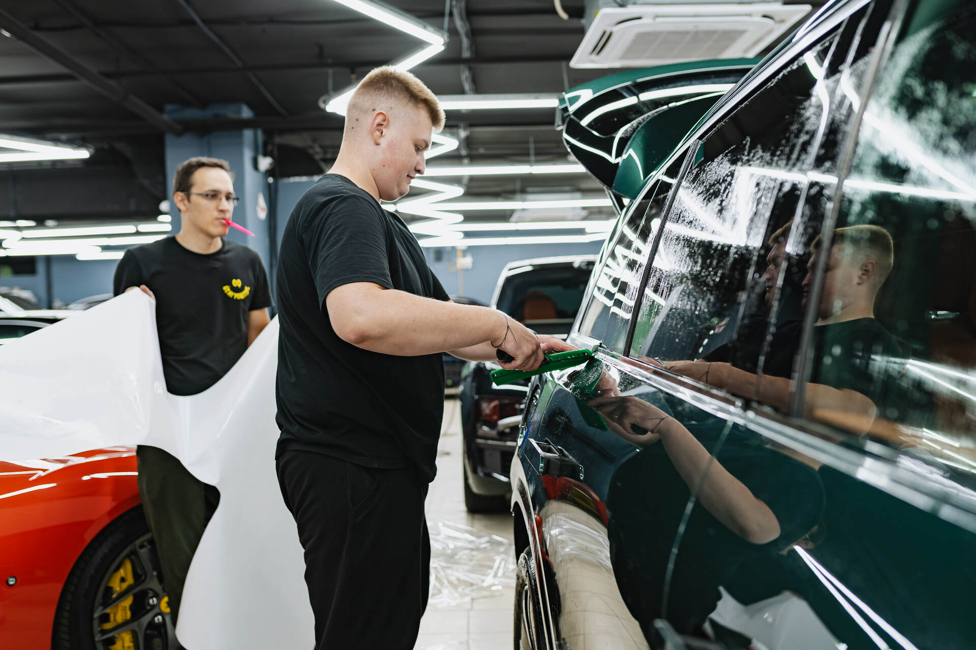 Нанесение плёнки на кузов.