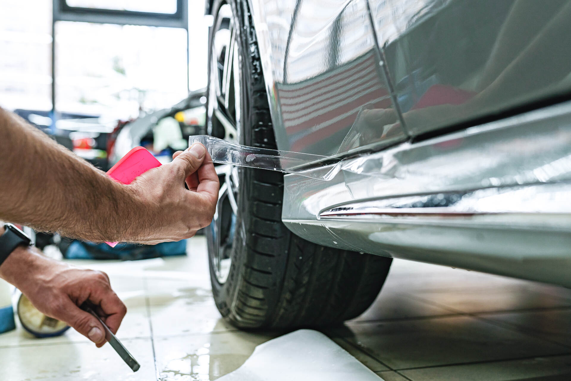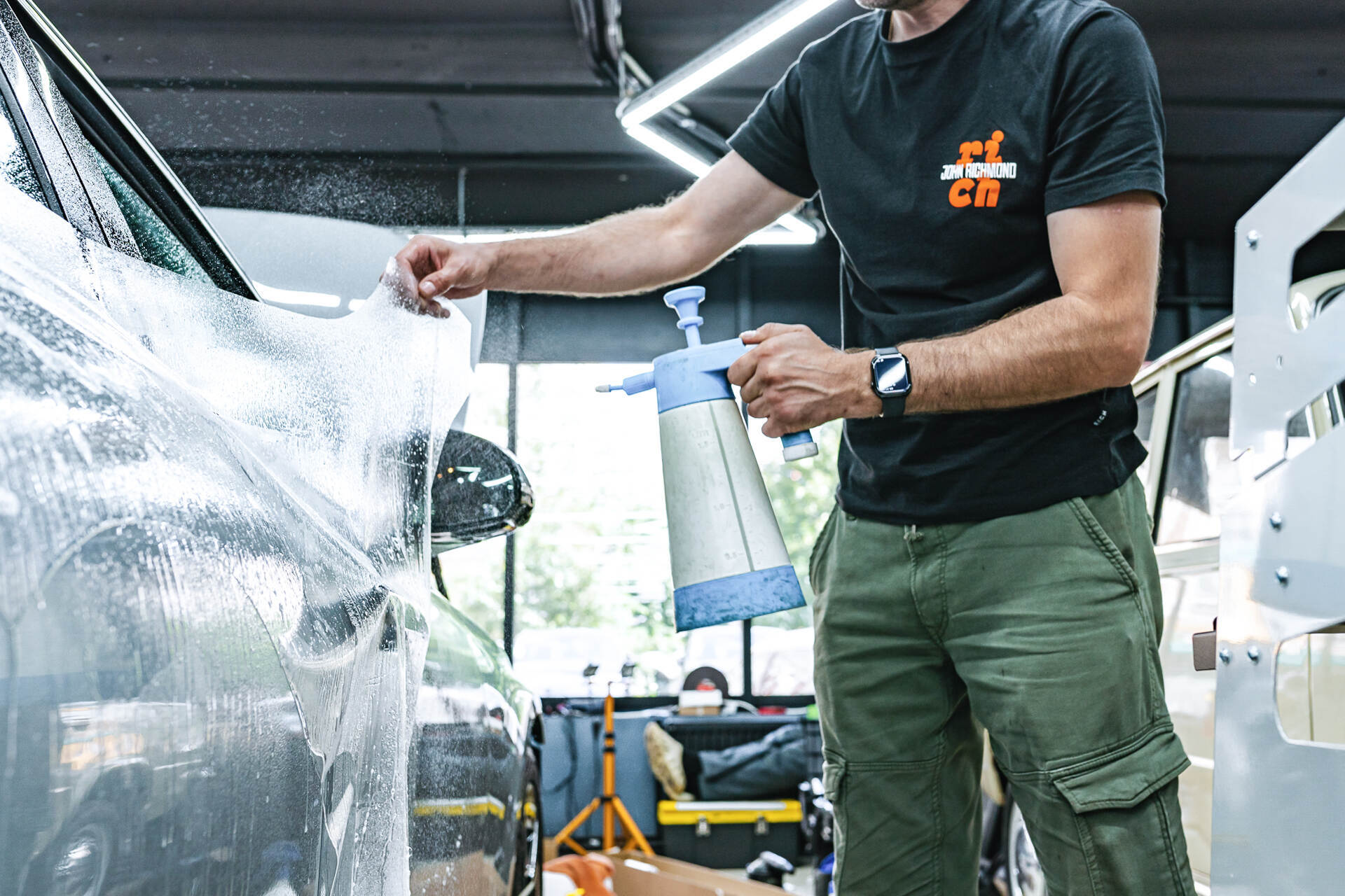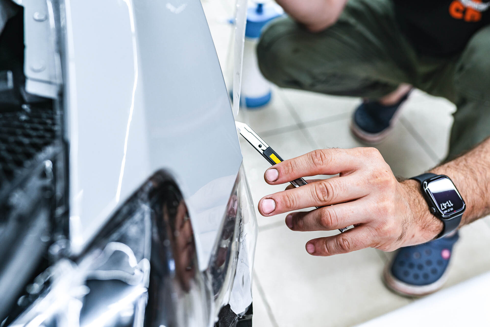 В данном проекте мы нанесем на авто полиуретановую пленку Spectroll Premium толщиной 210 микрон – этот глянцевый и абсолютно прозрачный материал после поклейки становится практически неотличим от исходной поверхности кузова. Некоторые сервисы предлагают более дешевые безымянные китайские аналоги, от которых мы настоятельно советуем воздержаться — такие пленки не обеспечивают полноценной защиты из-за недостаточной толщины, а после их демонтажа на лакокрасочном покрытии часто остаются следы клея, требующие сложной химической обработки для удаления. Гораздо практичнее сразу выбрать качественное решение от американского бренда Spectroll, особенно учитывая, что производитель предоставляет на свою продукцию официальную гарантию.