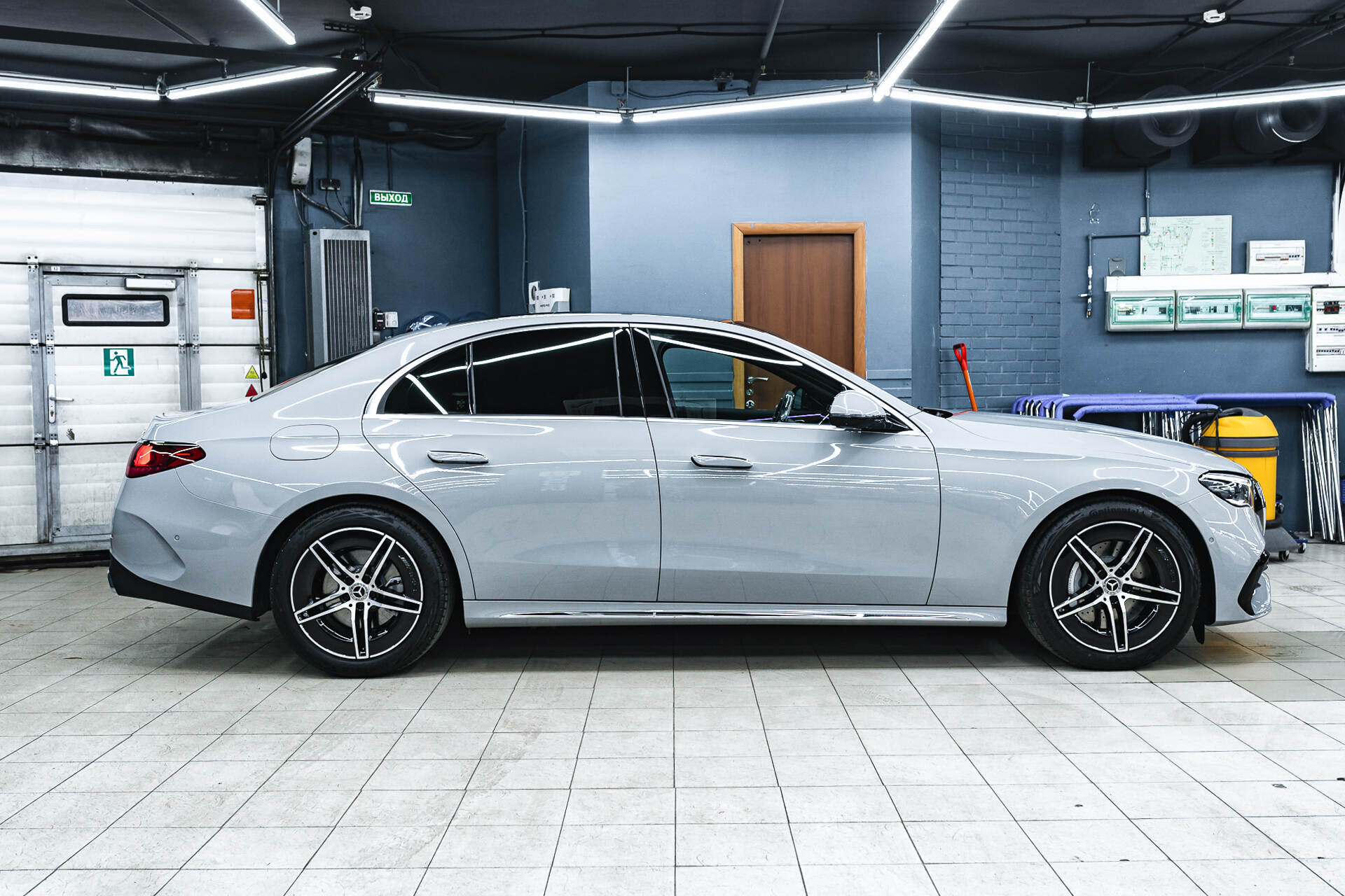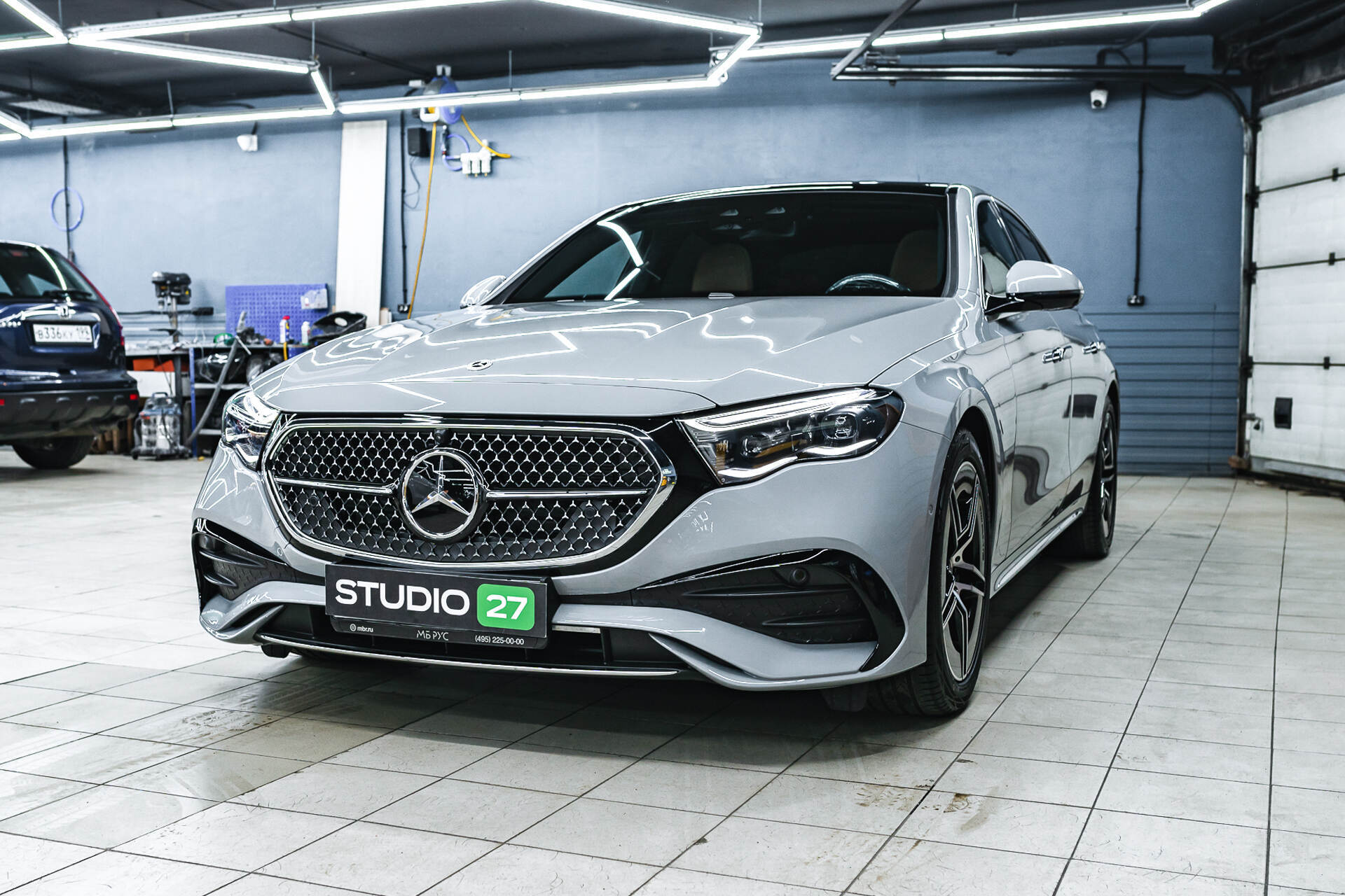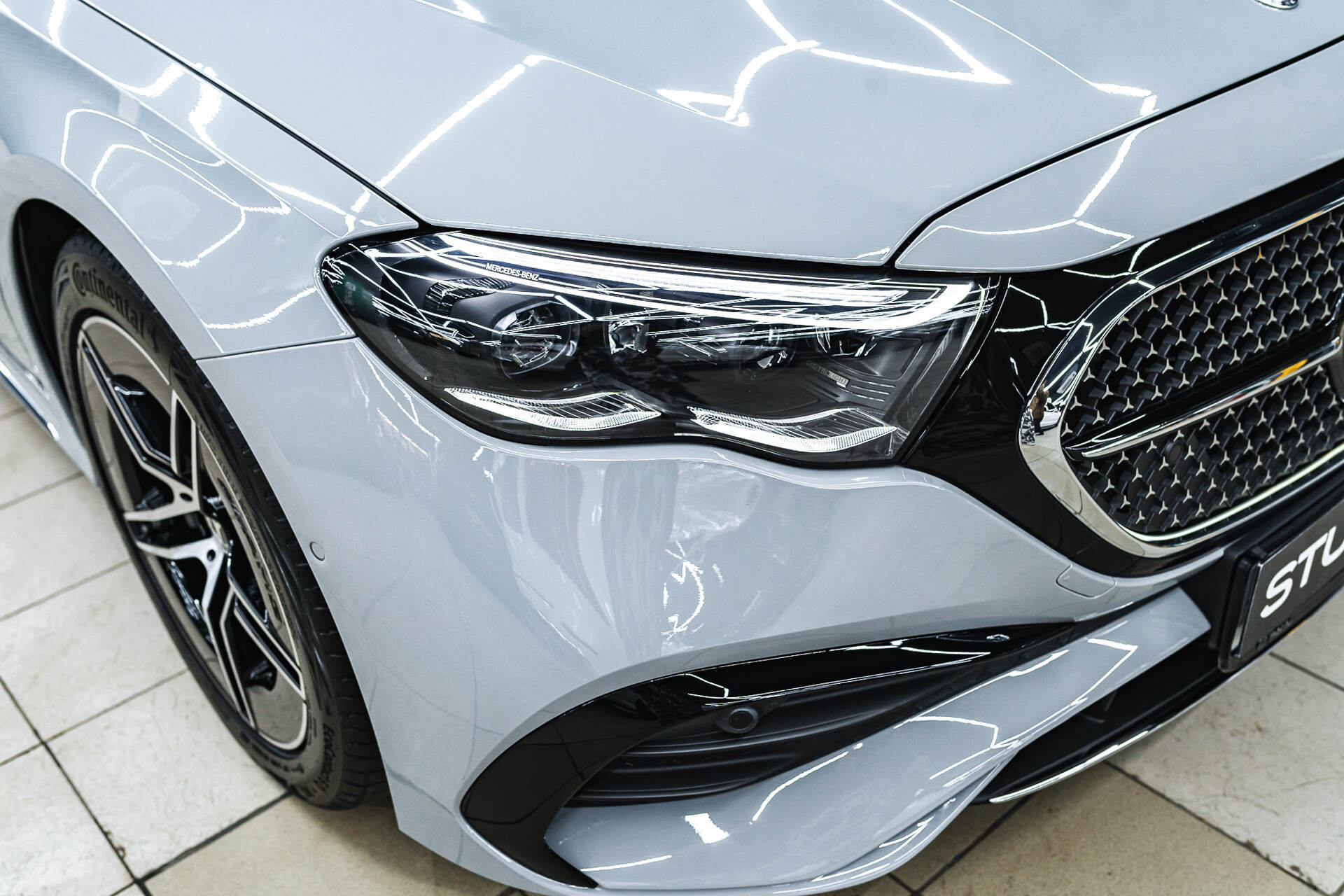Водителям, желающим защитить автомобиль от внешних факторов (пескоструй, щебенка и иной мусор), предлагается в нашей автостудии оклейка кузова полиуретановой пленкой, и именно с этой целью к нам обратился владелец Mercedes-Benz E W214. Задача заключалась в оклейке наиболее уязвимых зон кузова (так называемая отбойная часть), подверженных повышенному риску повреждений. В процессе эксплуатации автомобиль постоянно сталкивается с механическими воздействиями — абразивными частицами и мелким камешками, что со временем приводит к образованию царапин и потертостей на лакокрасочном покрытии. Учитывая премиальный статус автомобиля, стремление владельца обеспечить максимальную защиту своего транспортного средства выглядит совершенно закономерным.